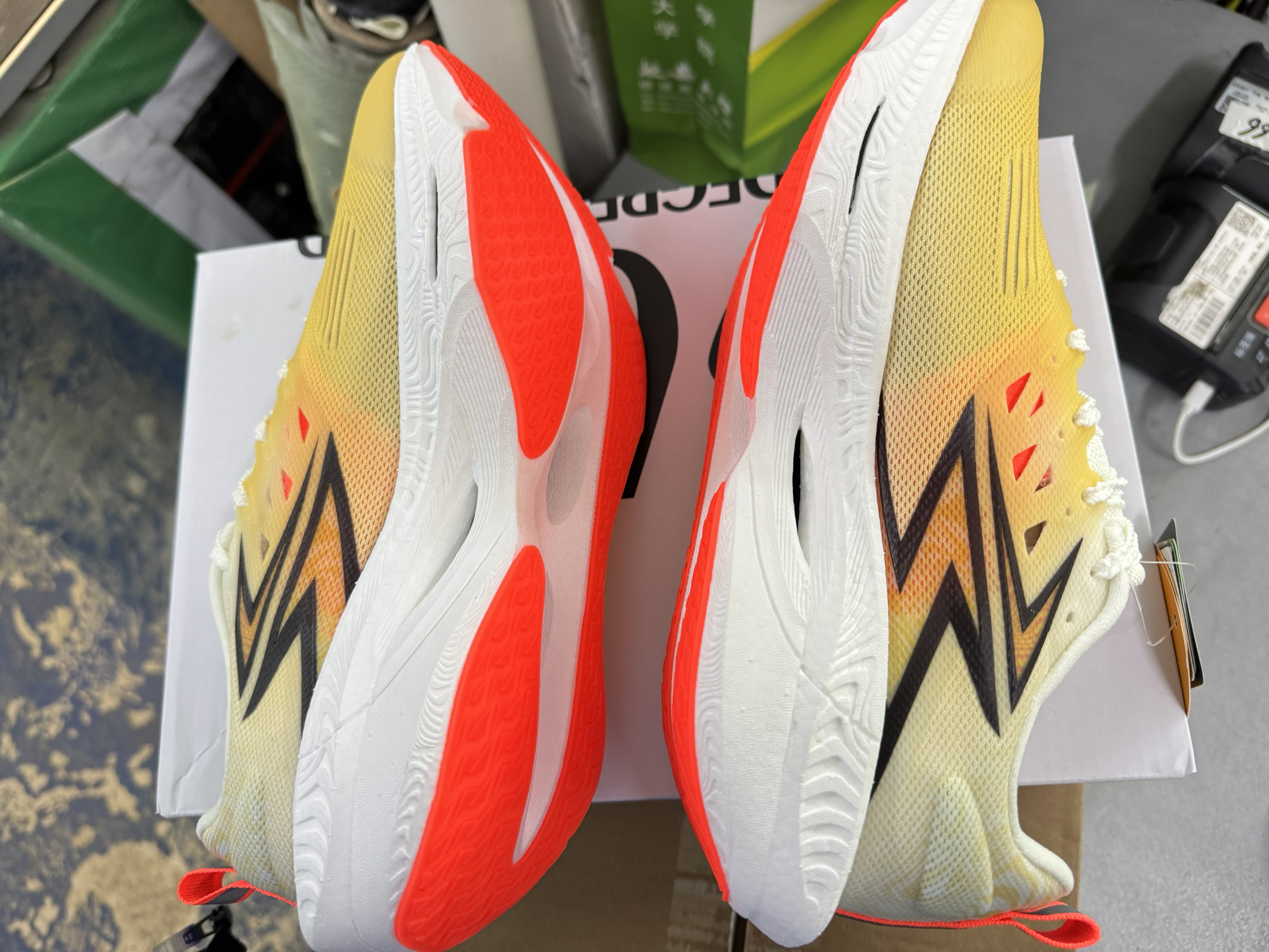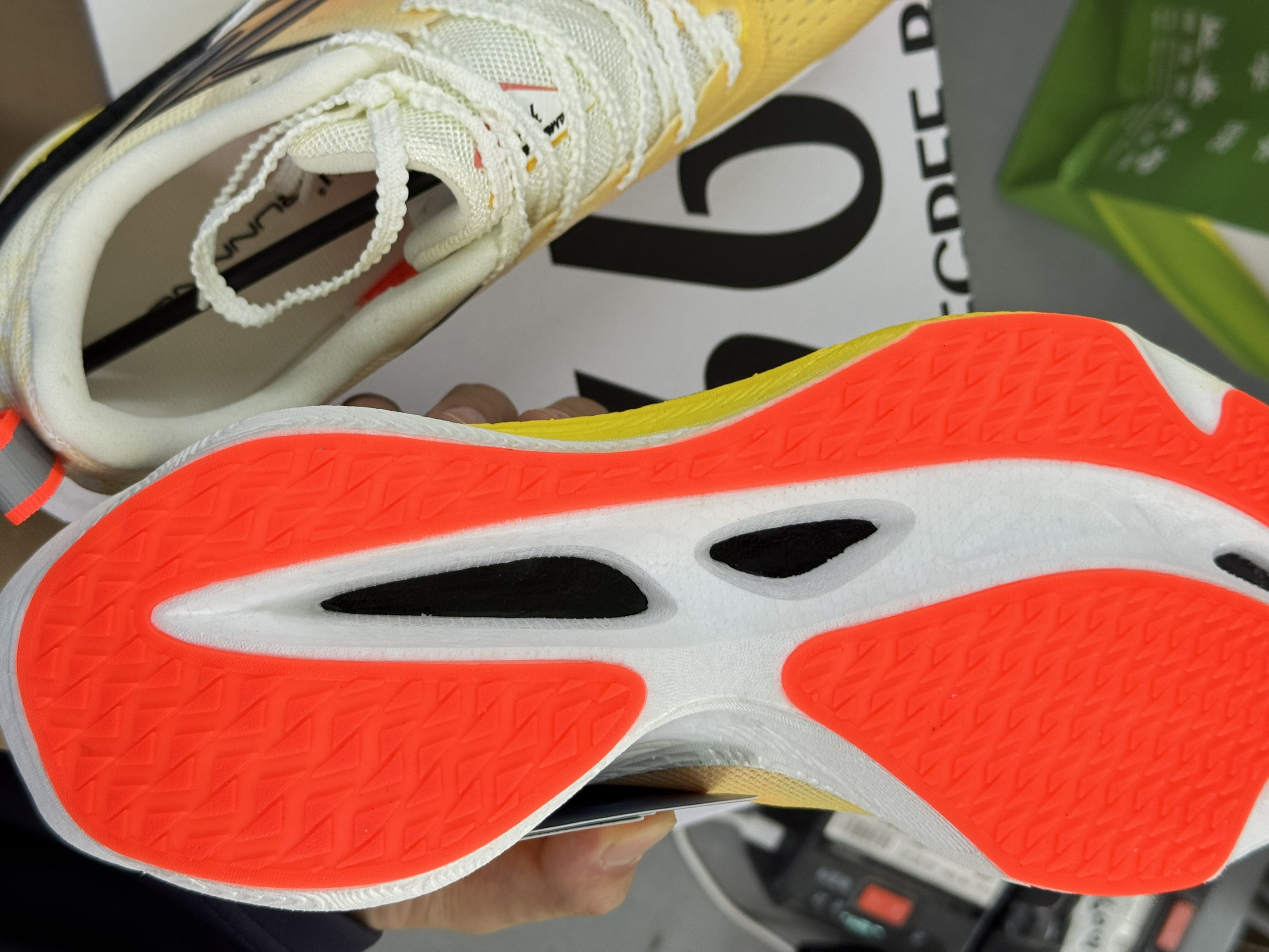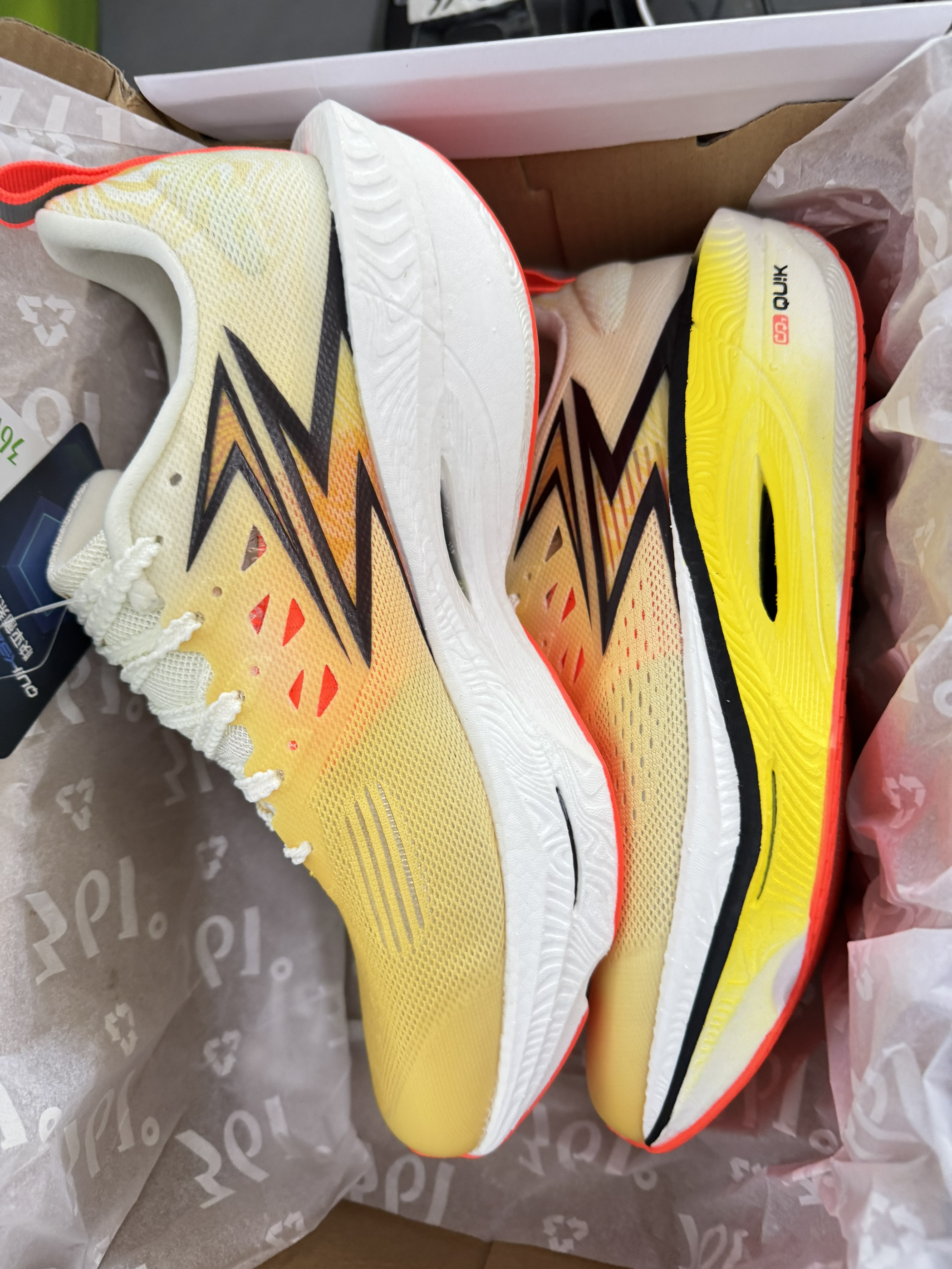 无意间点开淘宝不知道哪里来的券,看着比平时便宜一截子就买了 非常非常青少年的配色,张扬又有活力,中底的碳板换成了塑料拨片,类似于李宁的聚合心碳核心,相当于自家的se版本,脚感上我觉得没啥太大的区别,你在实验室,或者搞竞技碳板可能有用,绝大多数人穿真的噱头大于实际,适合自己才是最好的,踩开以后后跟有回弹,软软的,耐磨一般 购买推荐,喜欢在外的儿童青少年群体 公示鞋的框架摆在那里,怎么造都不回差到哪,...