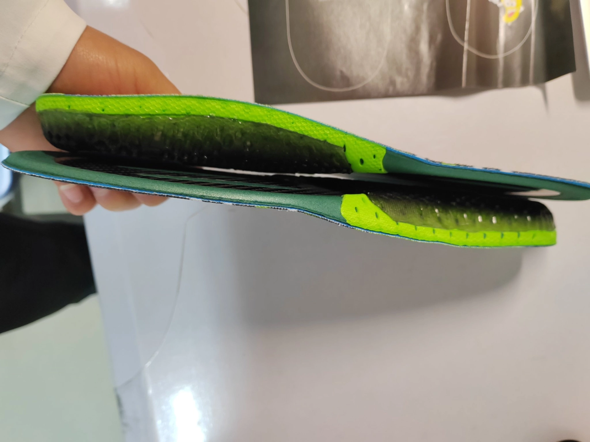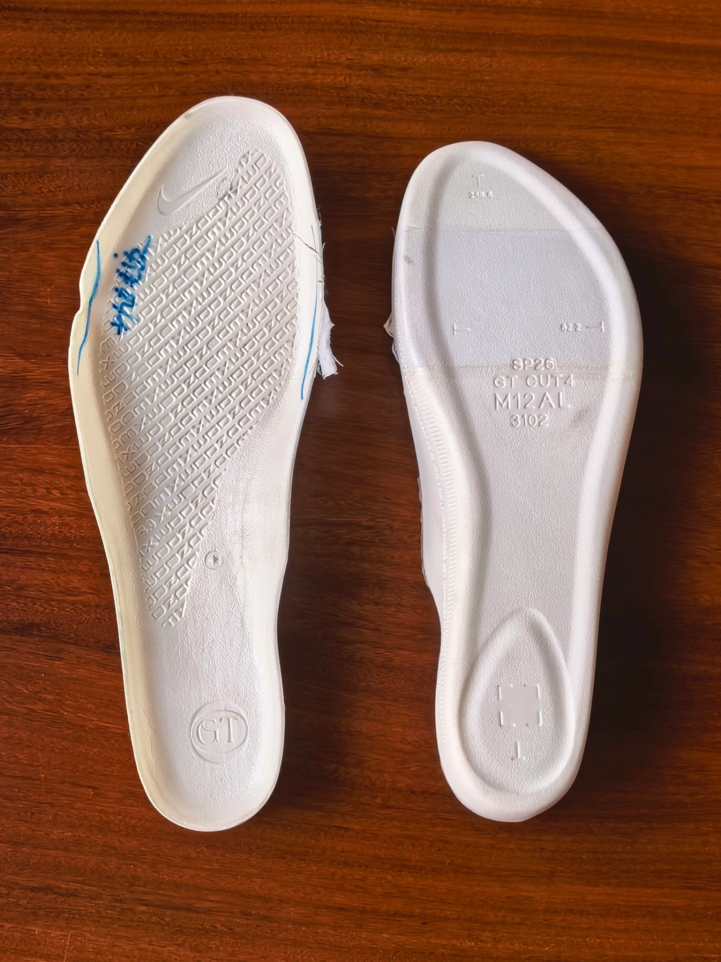 整个鞋垫的形态其实和1、2代是比较接的,依旧是前掌厚、后跟薄,背面有匹配全掌zoom的开槽,后跟还有水滴状区域加厚,前掌的发力区还额外进行了贴布补强,应该是为了避免搭配上气垫脚感太软而拖沓。#Nike #新鞋零时差 #暑假球鞋穿哪双 #球鞋真心话 #破茧新物种 #开学季球鞋指南