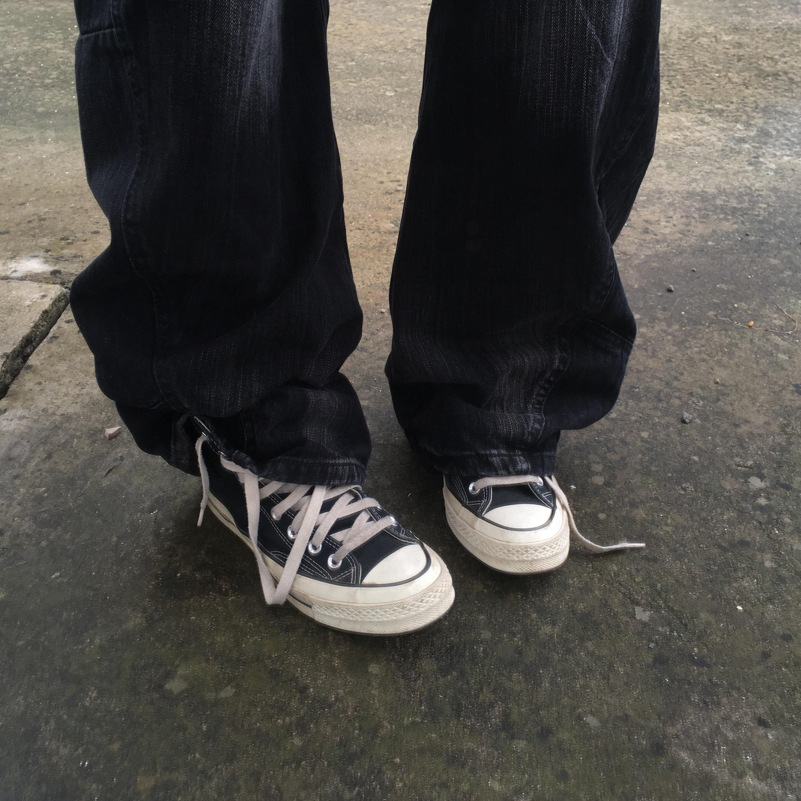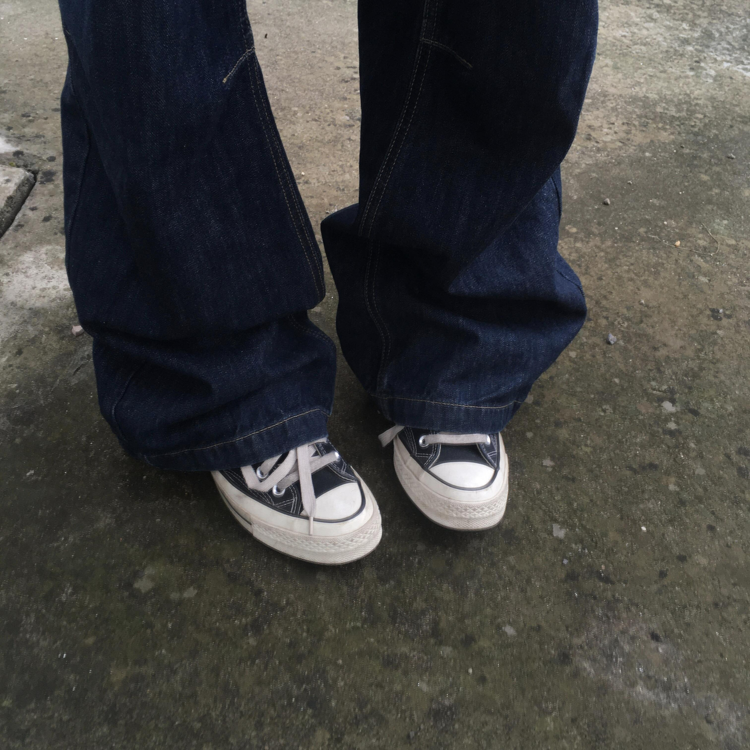 帆布鞋穿拖地裤真的绝!牛仔裤还是要配帆布鞋,太有感觉了。匡威一直做的很好舒服,这套穿搭秋天配外套绝!