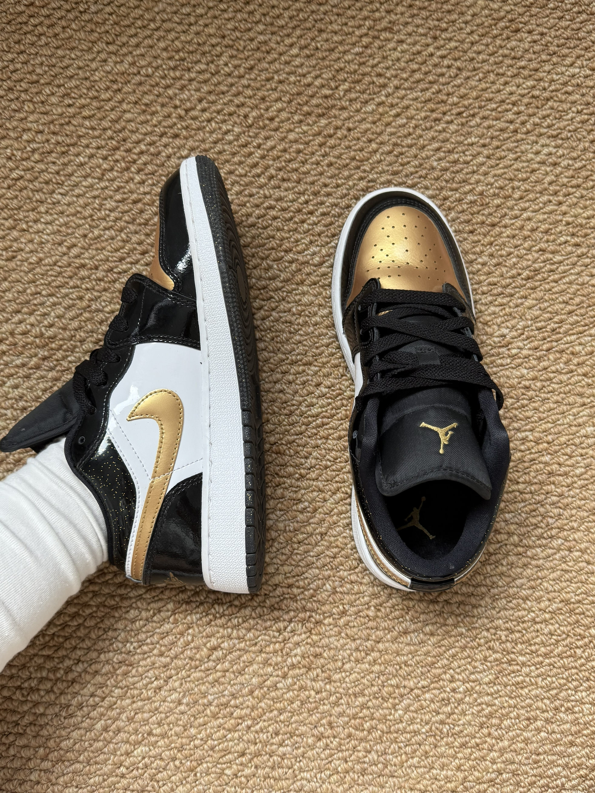 本篇笔记关联了Air Jordan 1 板鞋 运动休闲鞋 复古潮流支撑合成革 GS/黑色/金色等商品,为用户提供真实的使用体验和购买参考。