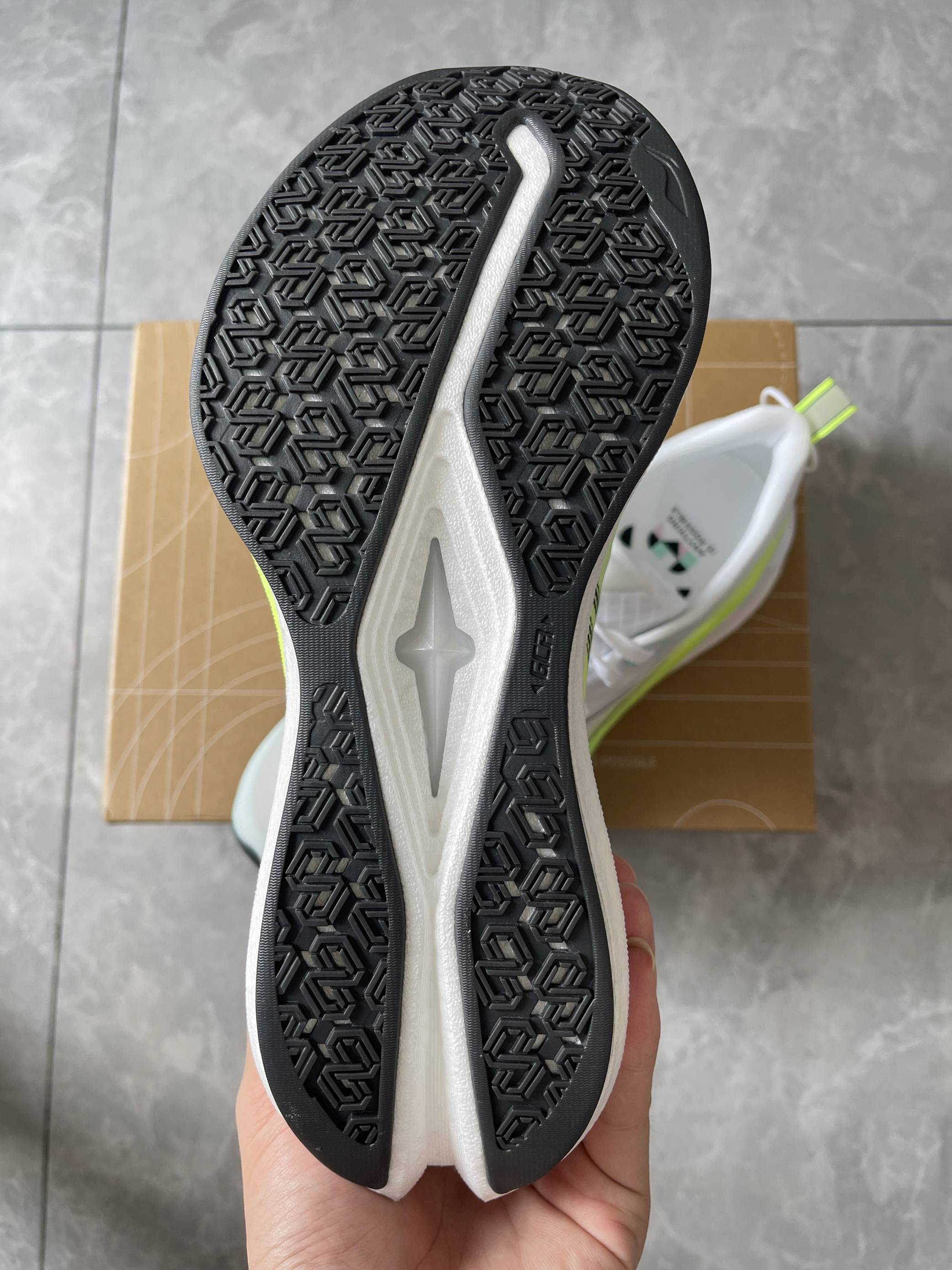 赤免8pro鞋面采用需丝材质,强度高且耐用,整体轻 盈透气,但延展性稍弱,对于脚型偏宽或脚背较高的 跑者来说,穿着会有些难受。