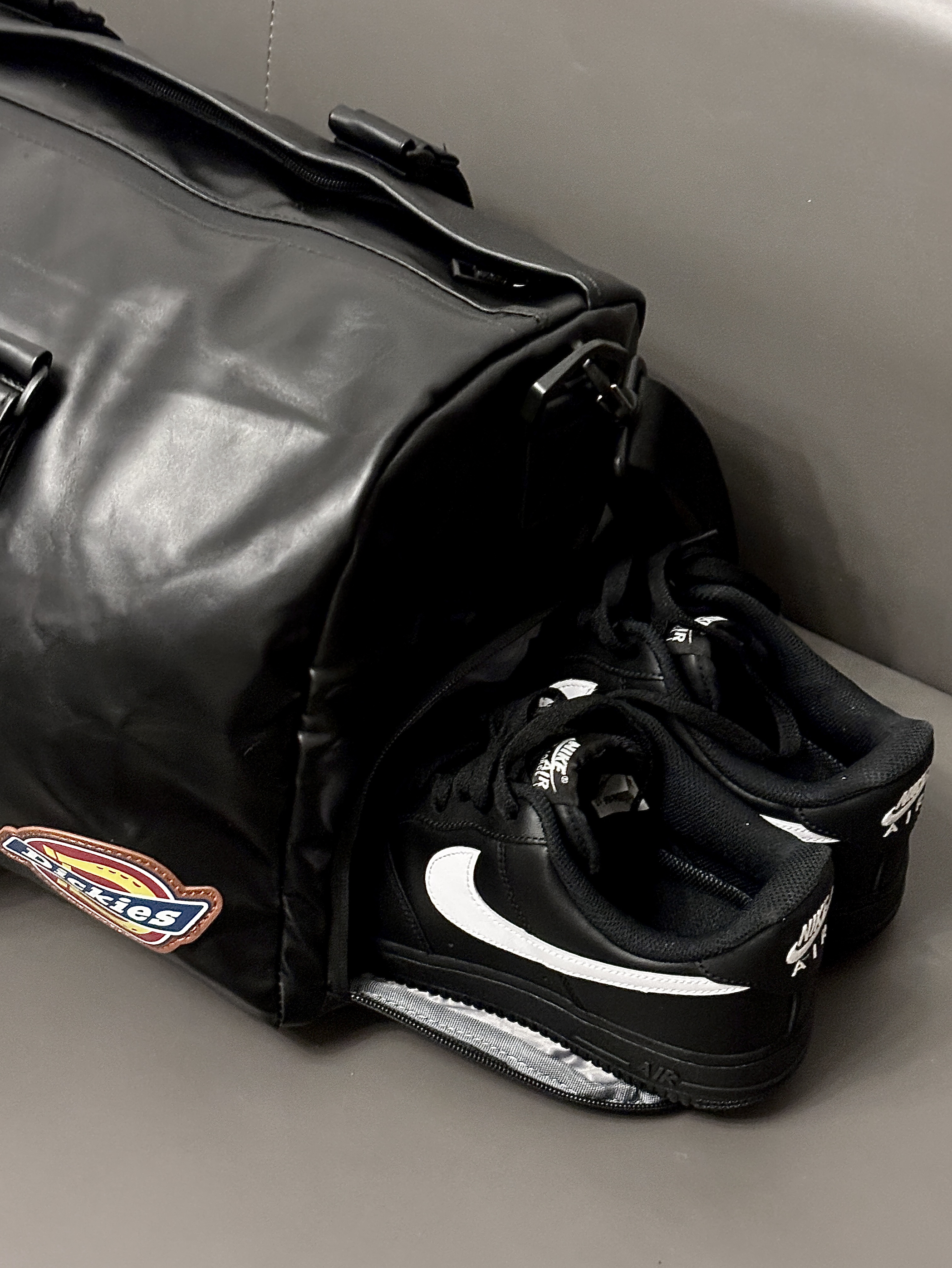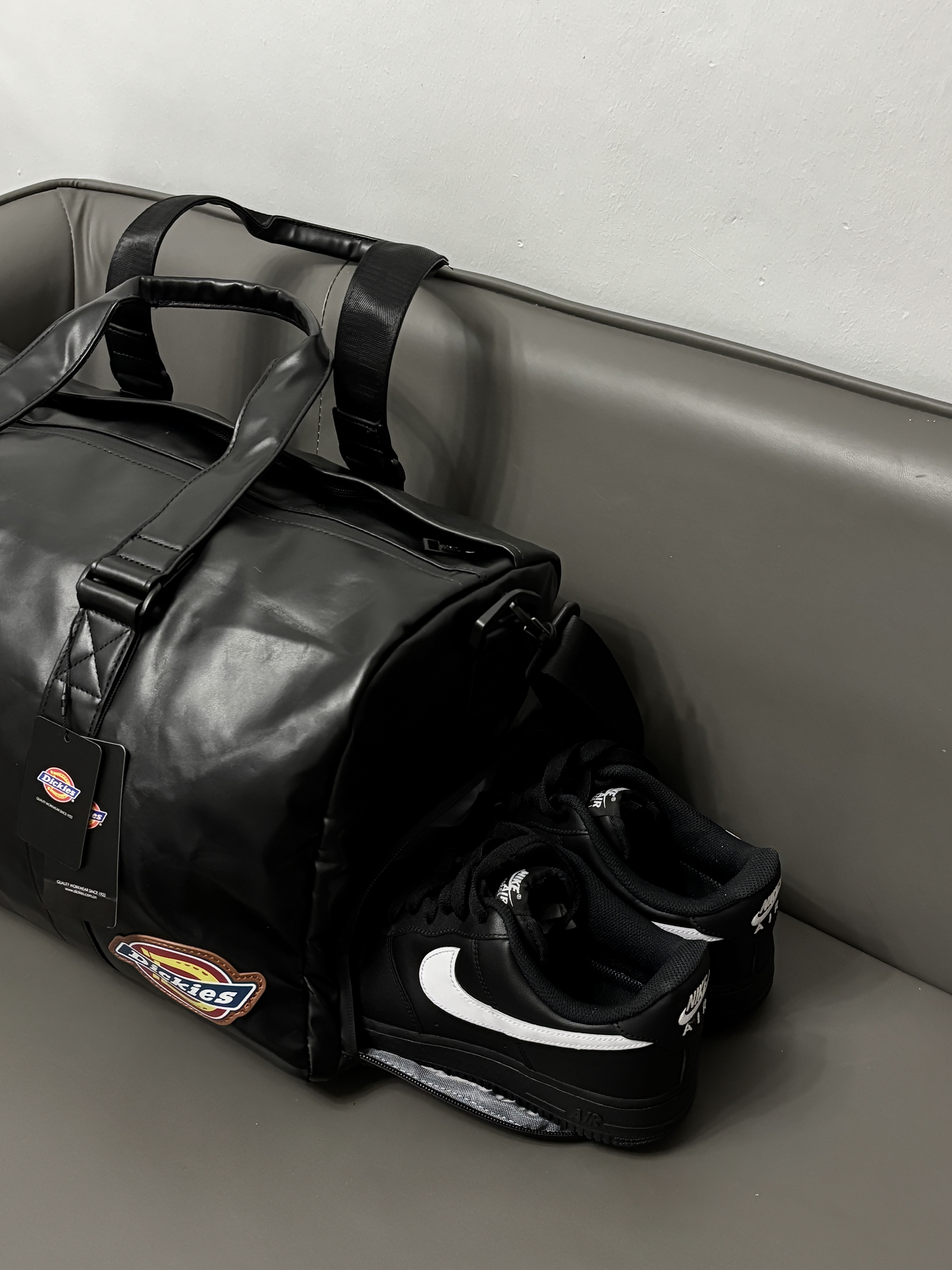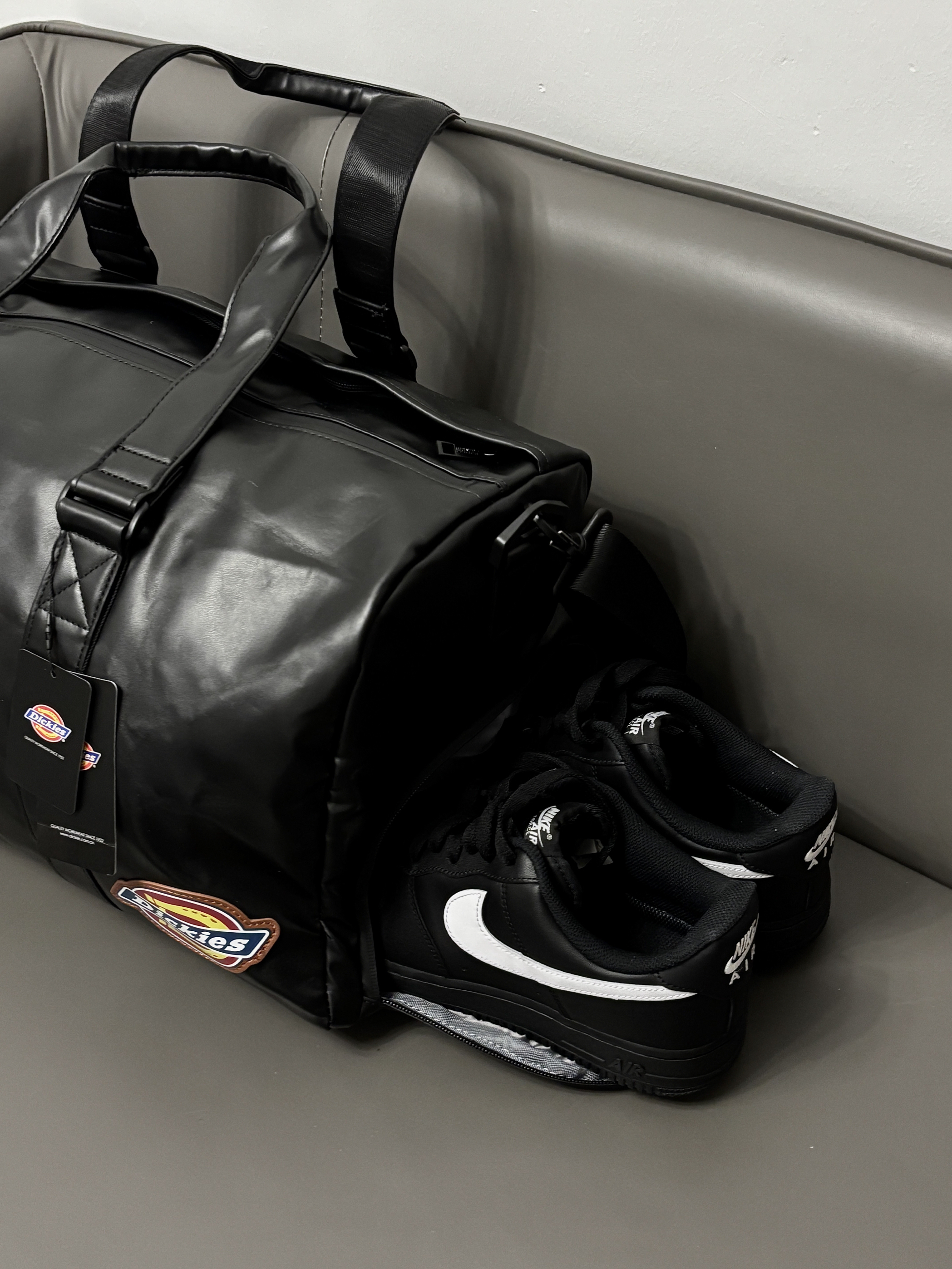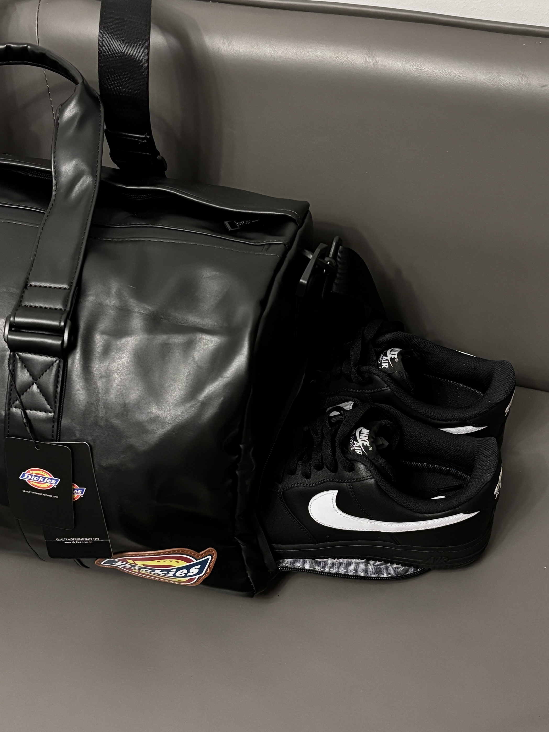最近刚好在给男朋友看健身包 dickies旅行包包还挺在线哒 Pu防水材质质感尊嘟hin高级 款式也是时尚不沉闷的 还挺百搭嘟😎 多隔层设计我蛮喜欢的 干湿分离 独立鞋仓一包搞定 出门旅行或者健身带这一个就嘎嘎顶用了 男朋友尊嘟很喜欢🥰