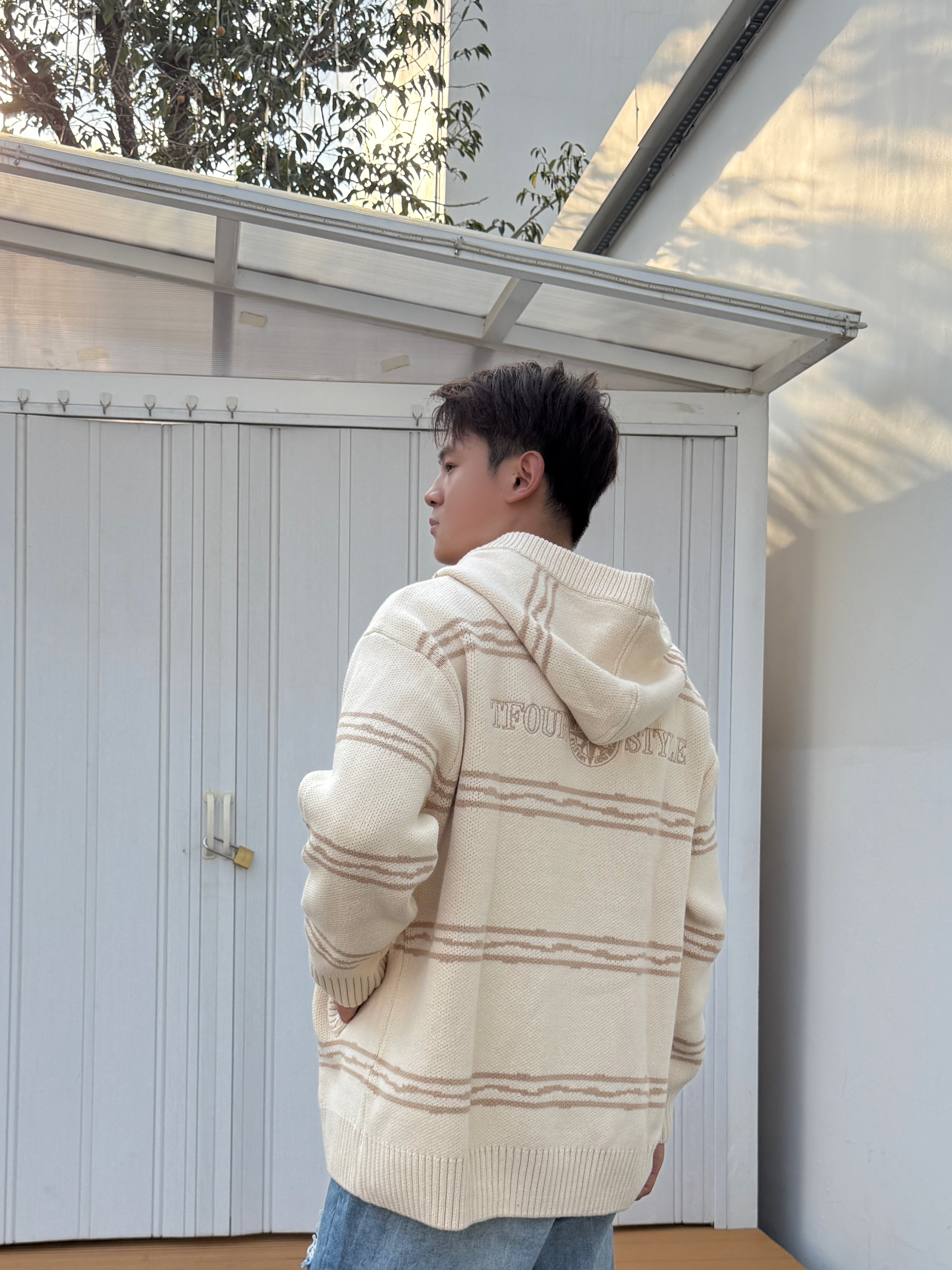 秋天的风带着丝丝凉意,正是穿针织衫的好时候 米白色调柔和,搭配浅棕色条纹,简约中透着精致 很难不喜欢的单品