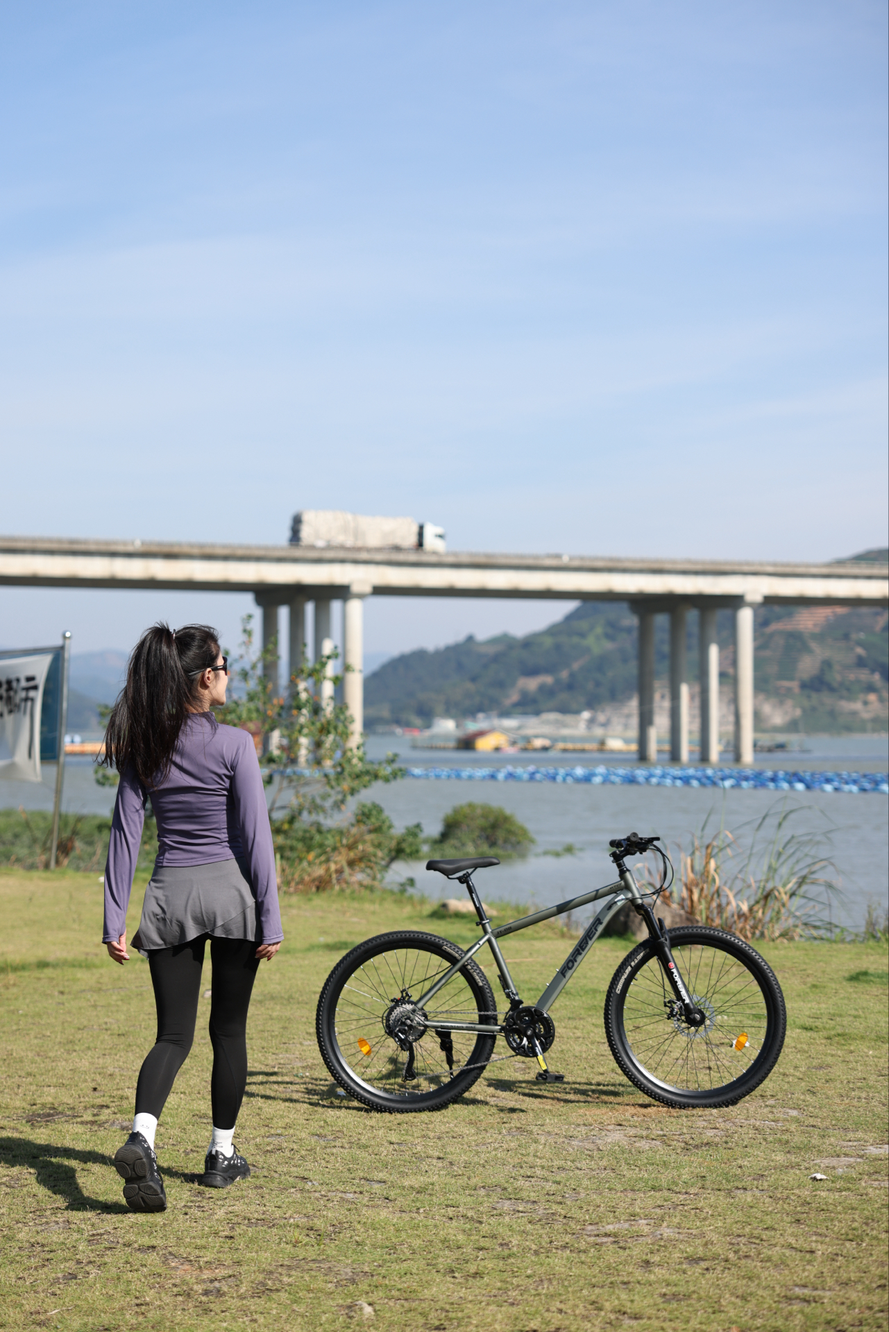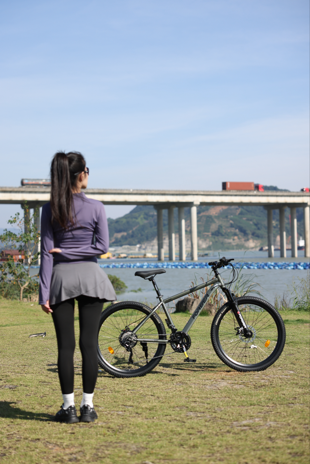 我入这辆山地车后,周末常去郊外撒野~ 它是铝合金车架,硬尾设计在林道骑行时发力感足 蓝图变速套件配21速,爬坡换挡算顺滑 可锁死前叉在平路、颠簸路切换很实用,油压碟刹制动也稳 不过车把是一字把,长时间握把对手腕力量有点考验~ 图源网络侵删