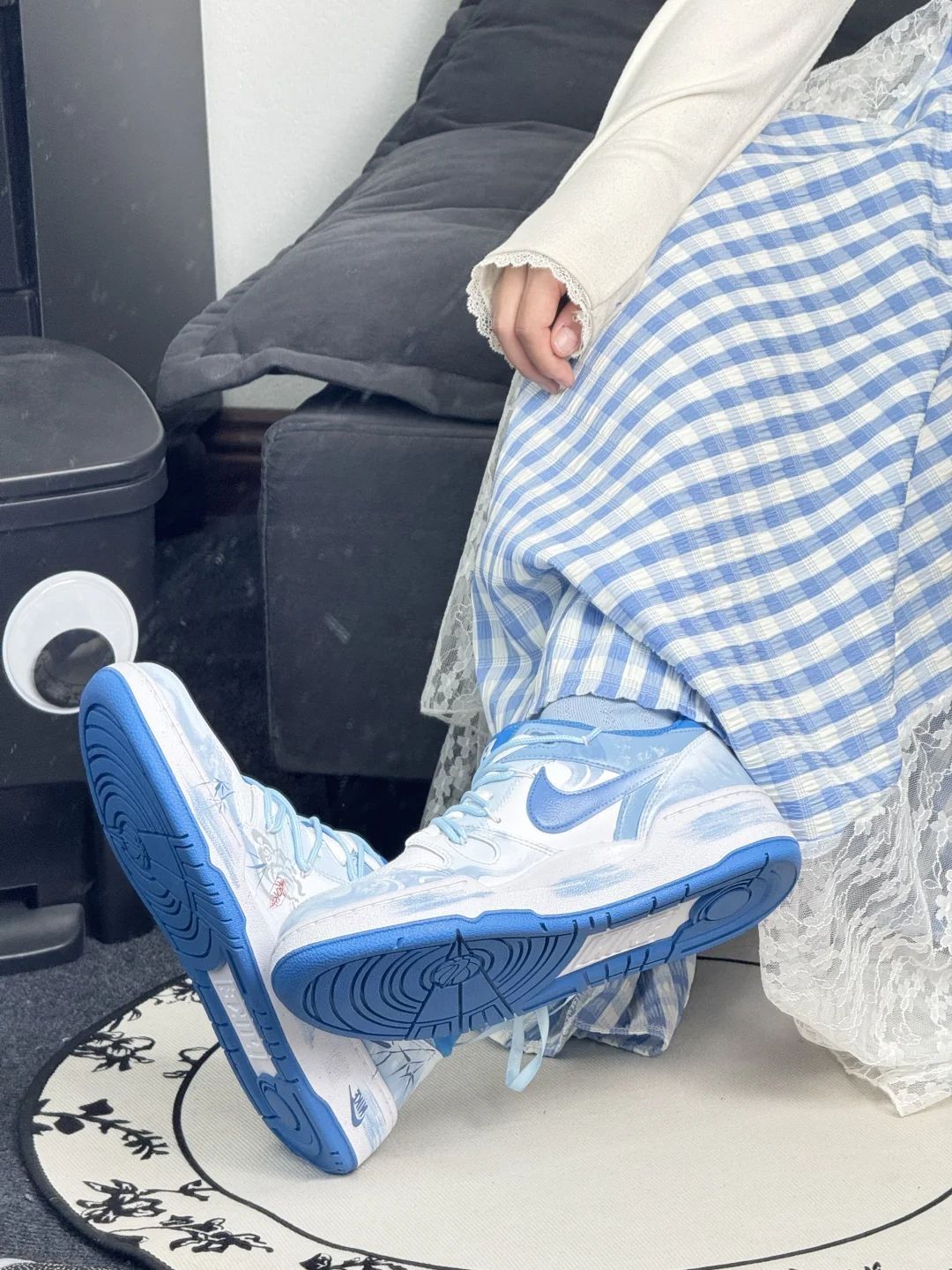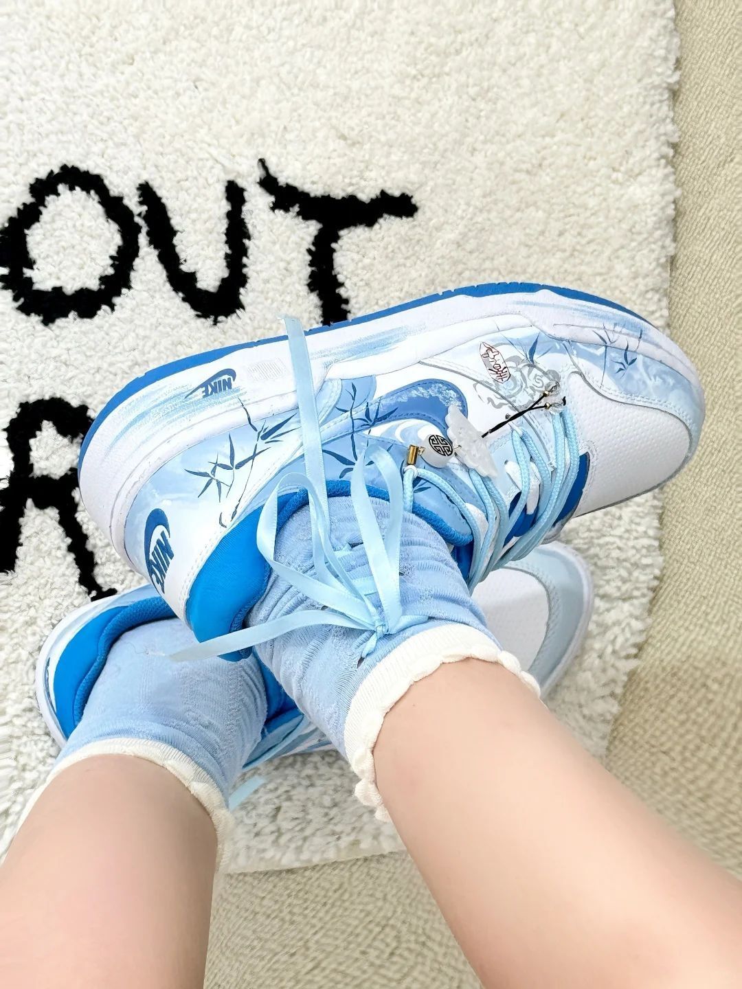 🔥国风水墨撞上潮鞋!这双Nike蓝白配色绝了,竹叶纹样+细节挂饰,把东方意境穿在脚上。清爽又有格调,搭工装、汉服都能玩出花,鞋控和国风爱好者直接锁死~