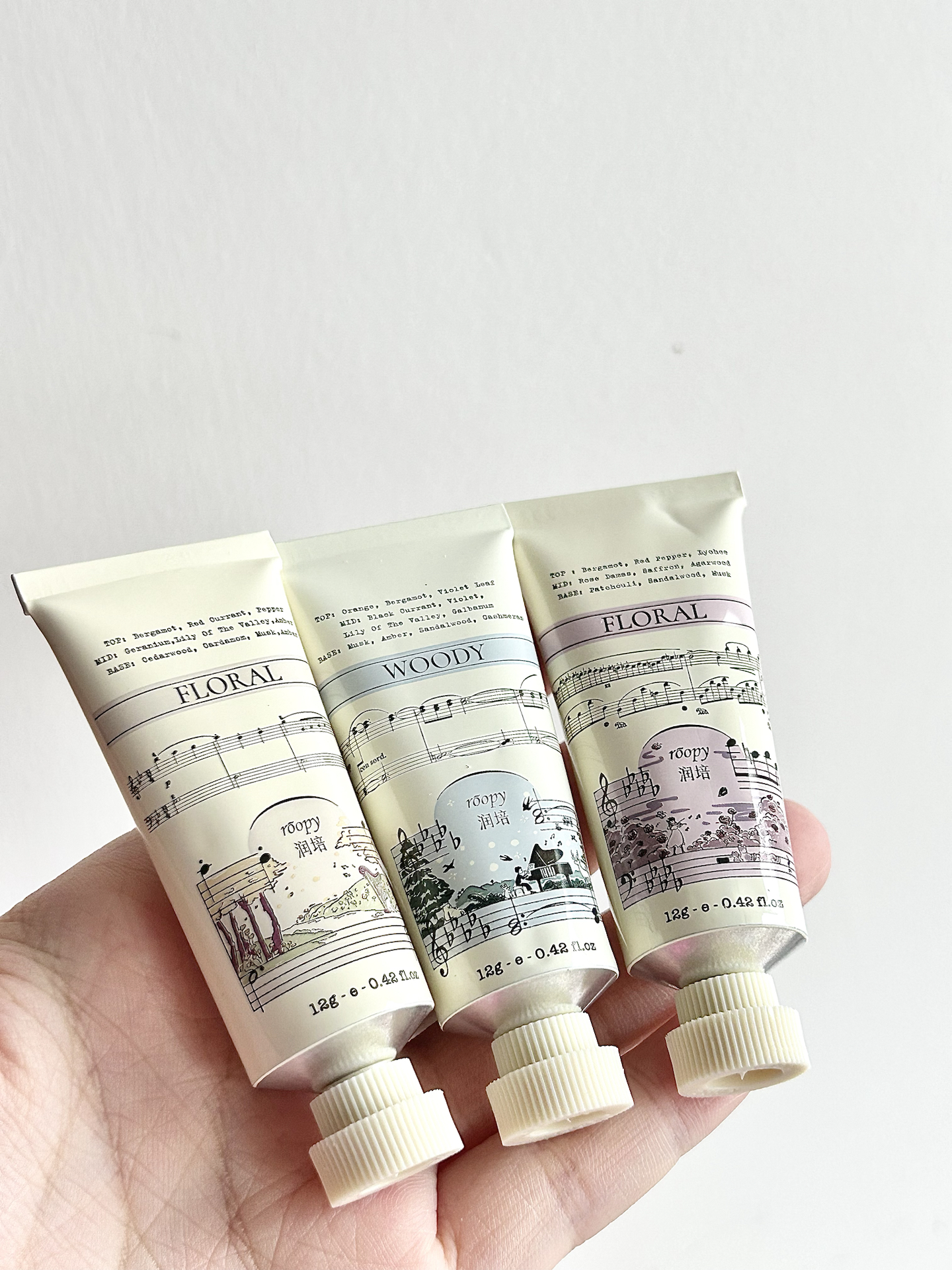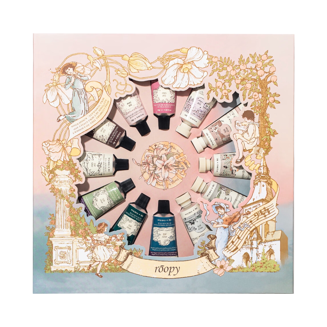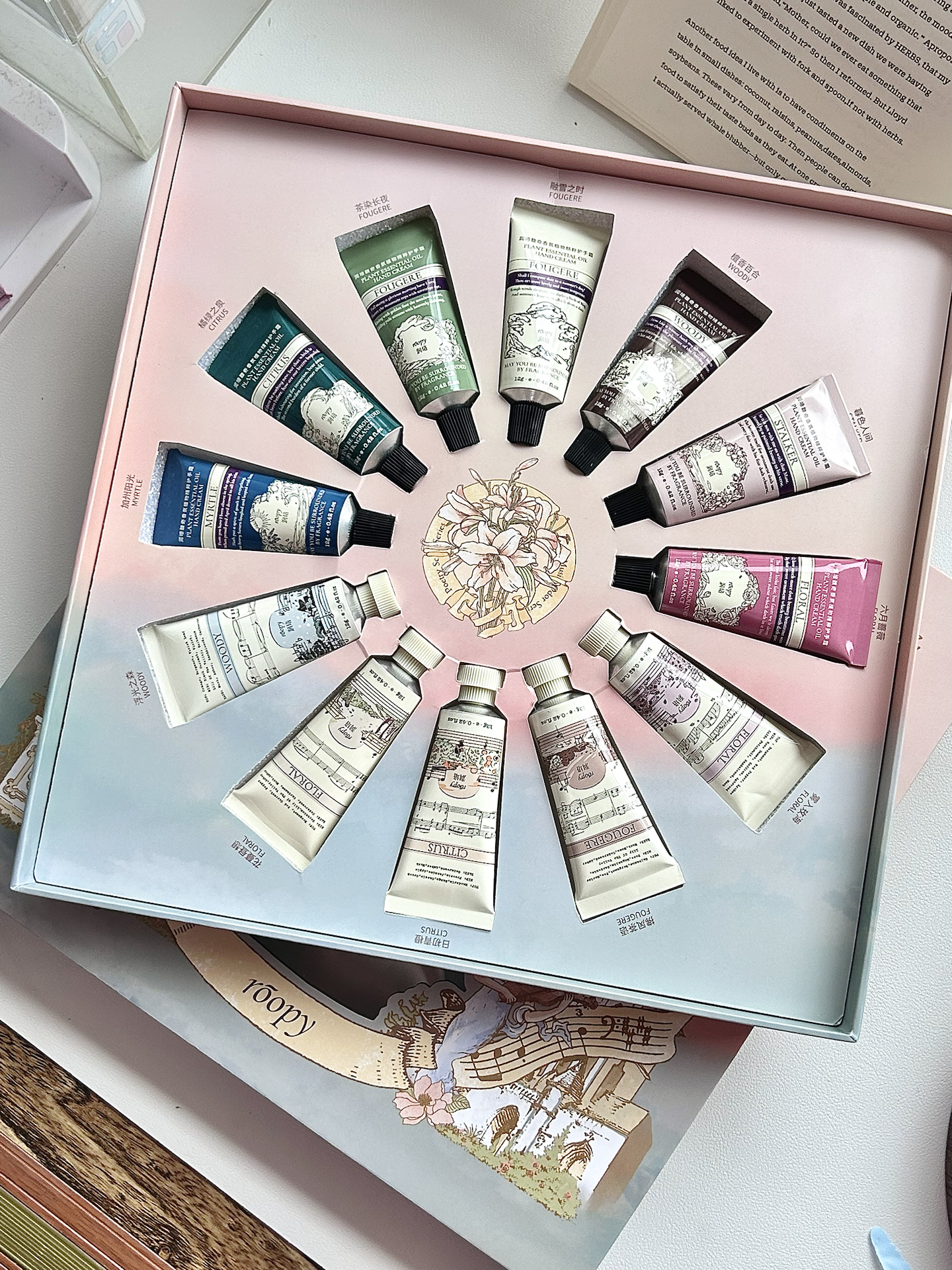 给女友安排的roopy护手霜礼盒,包装插画好复古浪漫~🥳香味有果香、花香这些,涂完手润润的还留香!就是礼盒有点大,外出带单支更方便些~🎁