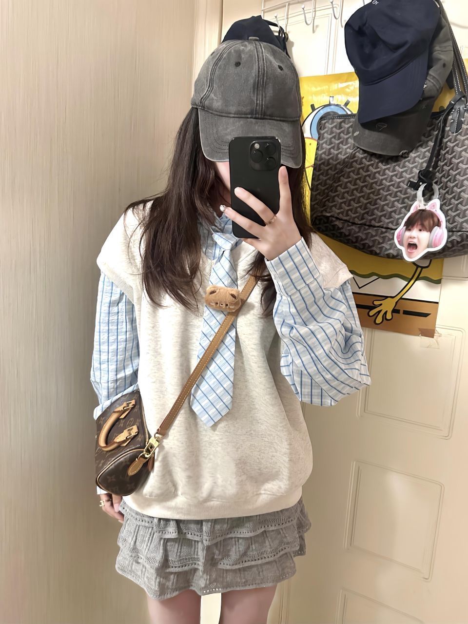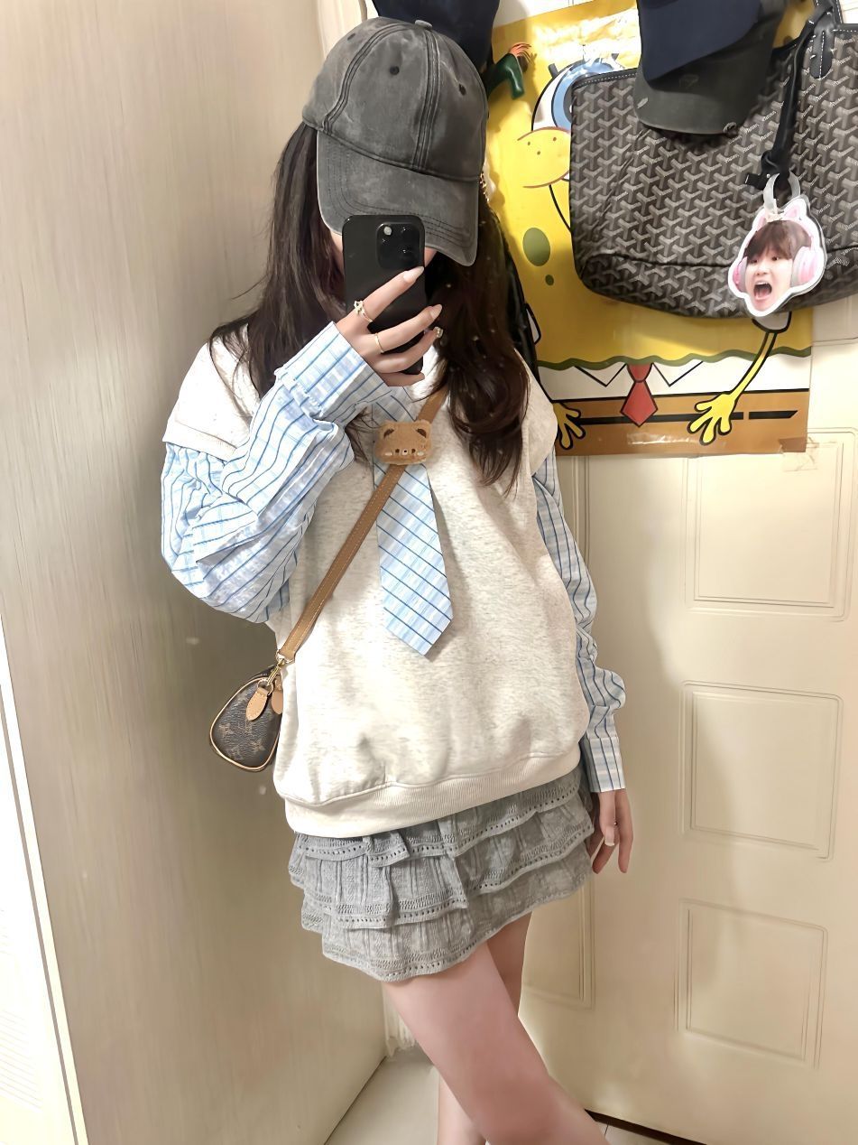 假两件真的是懒人福音! 把衬衫和卫衣的结合做得好自然 领结小熊也好可爱~🐻