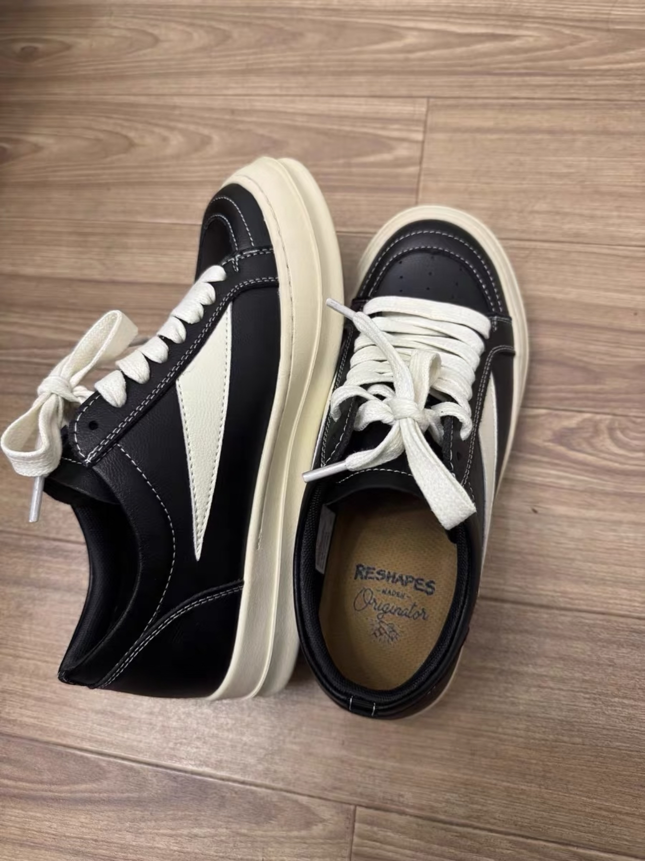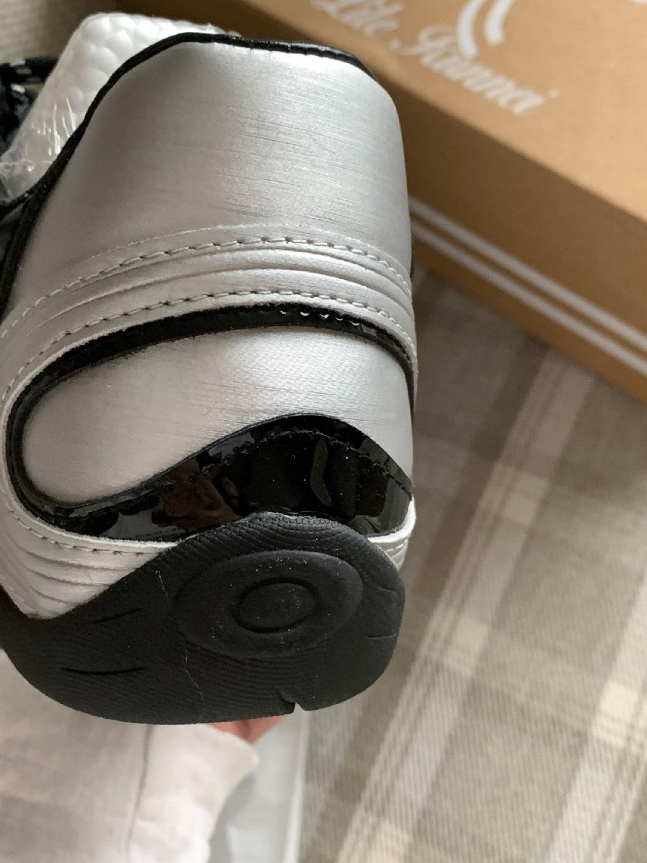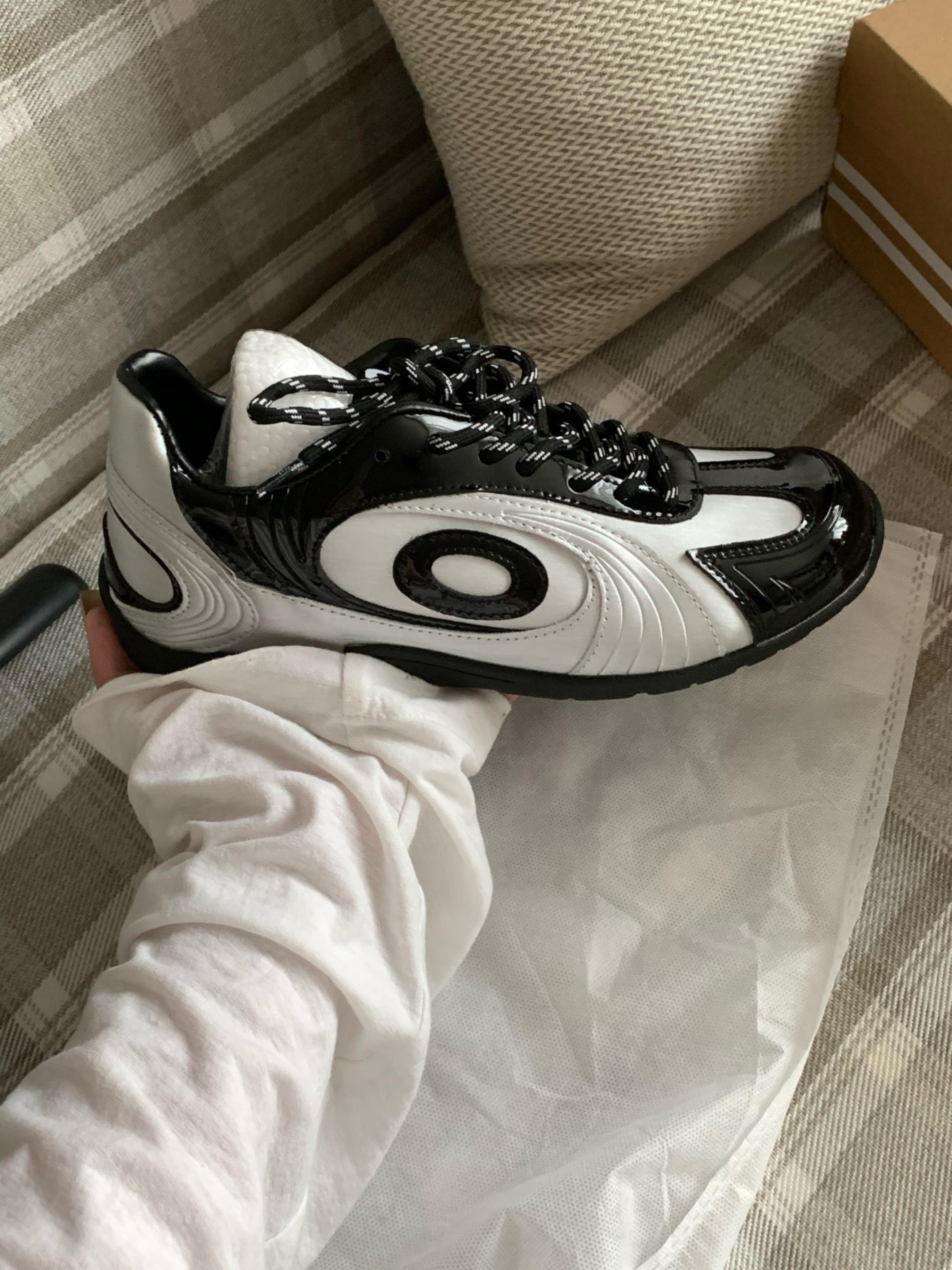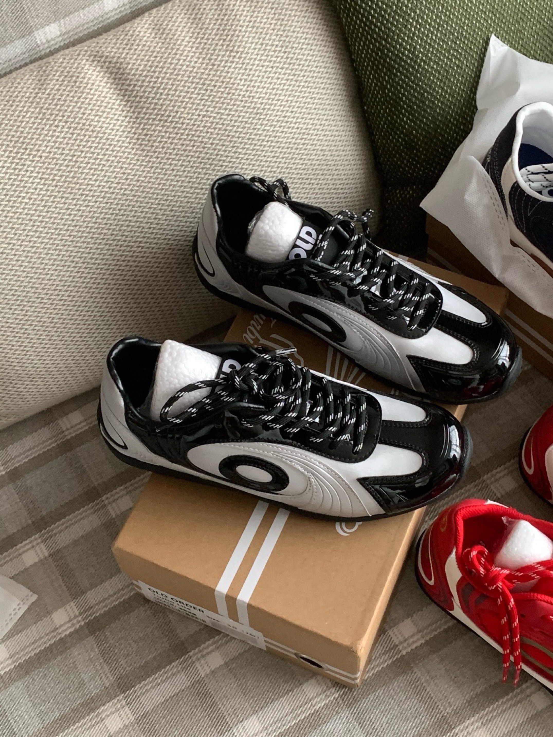 超级帅的黑银配色 整体都是亮面的设计,金属感满满 超级炫酷,但是又是德训鞋的鞋型,帅气又不失日常感 上脚很有特色 这款还蛮小众 不容易撞鞋 超绝中性风格 男女都可以搭配 直接买了当情侣鞋 有点小增高 帅惨了