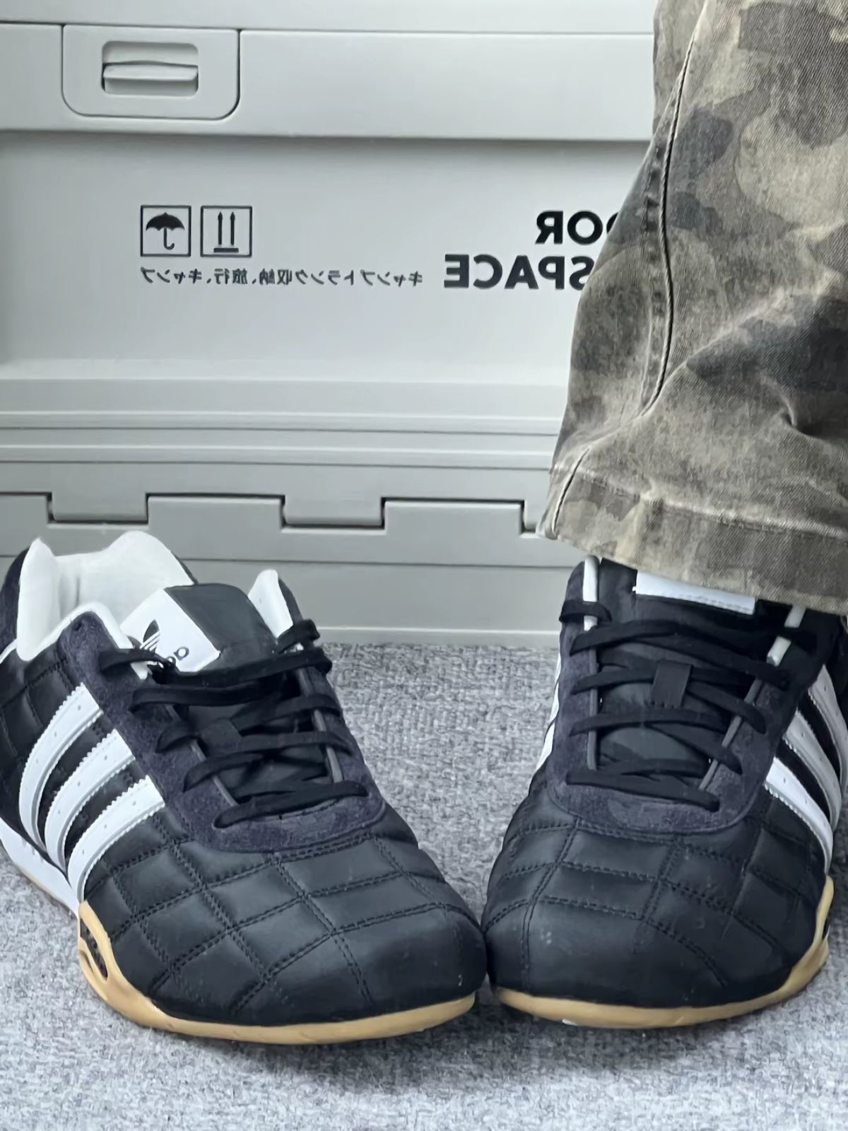 [捂脸_blue]😎最近我入手了这双阿迪达斯鞋,来说说真实感受。 [爱心_blue]这鞋外观挺有复古范儿,黑色鞋面配白色条纹,经典又耐看,菱形格纹路还增添了几分独特。[鉴别_blue]上脚后,能感觉到包裹性还不错,走路的时候鞋身贴合脚部,不会晃来晃去。 [叹气_blue]不过呢,它也有一些小缺点。鞋底偏硬,走久了脚底会有点累,要是去逛街或者长时间徒步,可能就不是特别舒服😣。[偷看_blue]而...