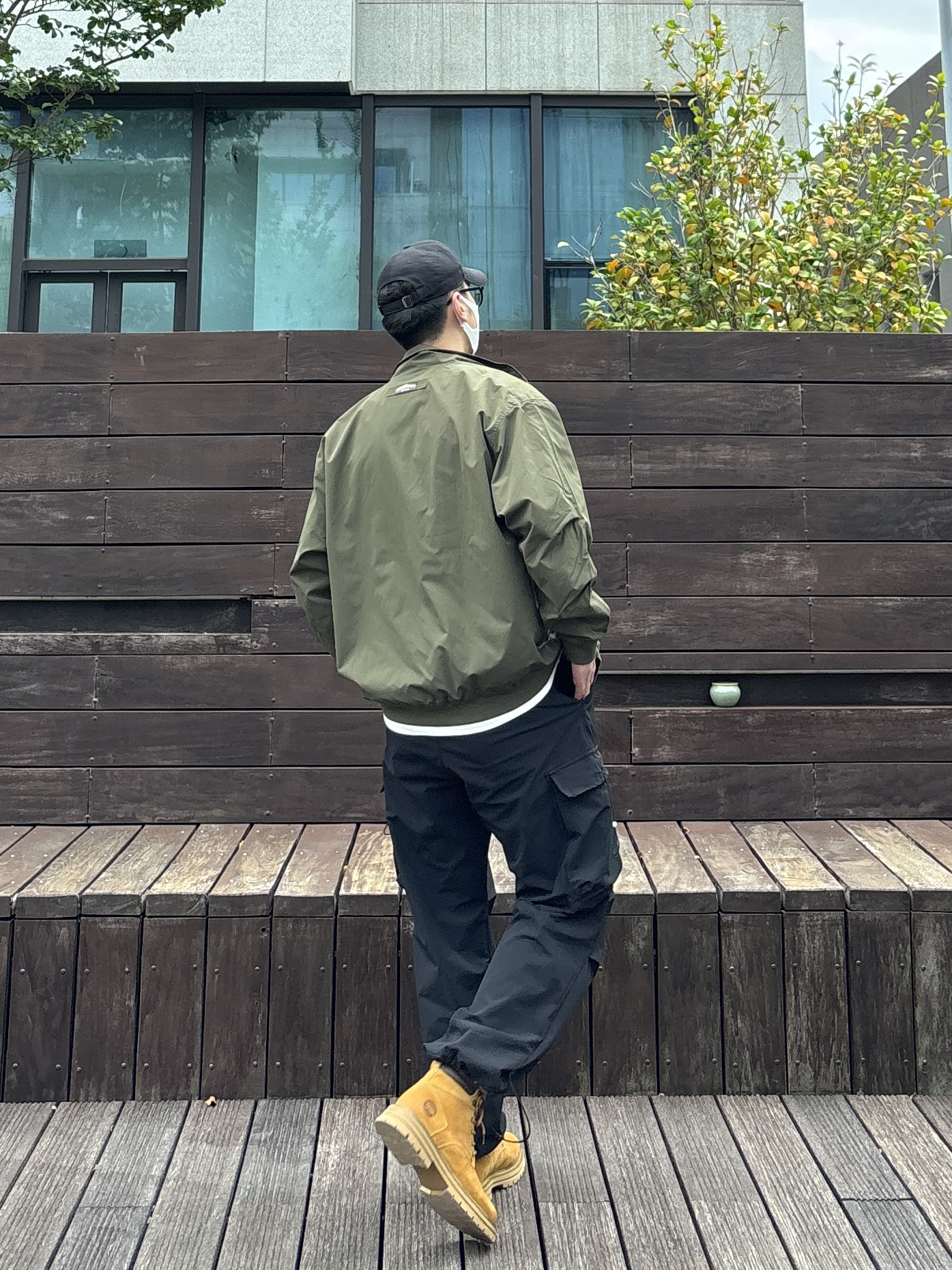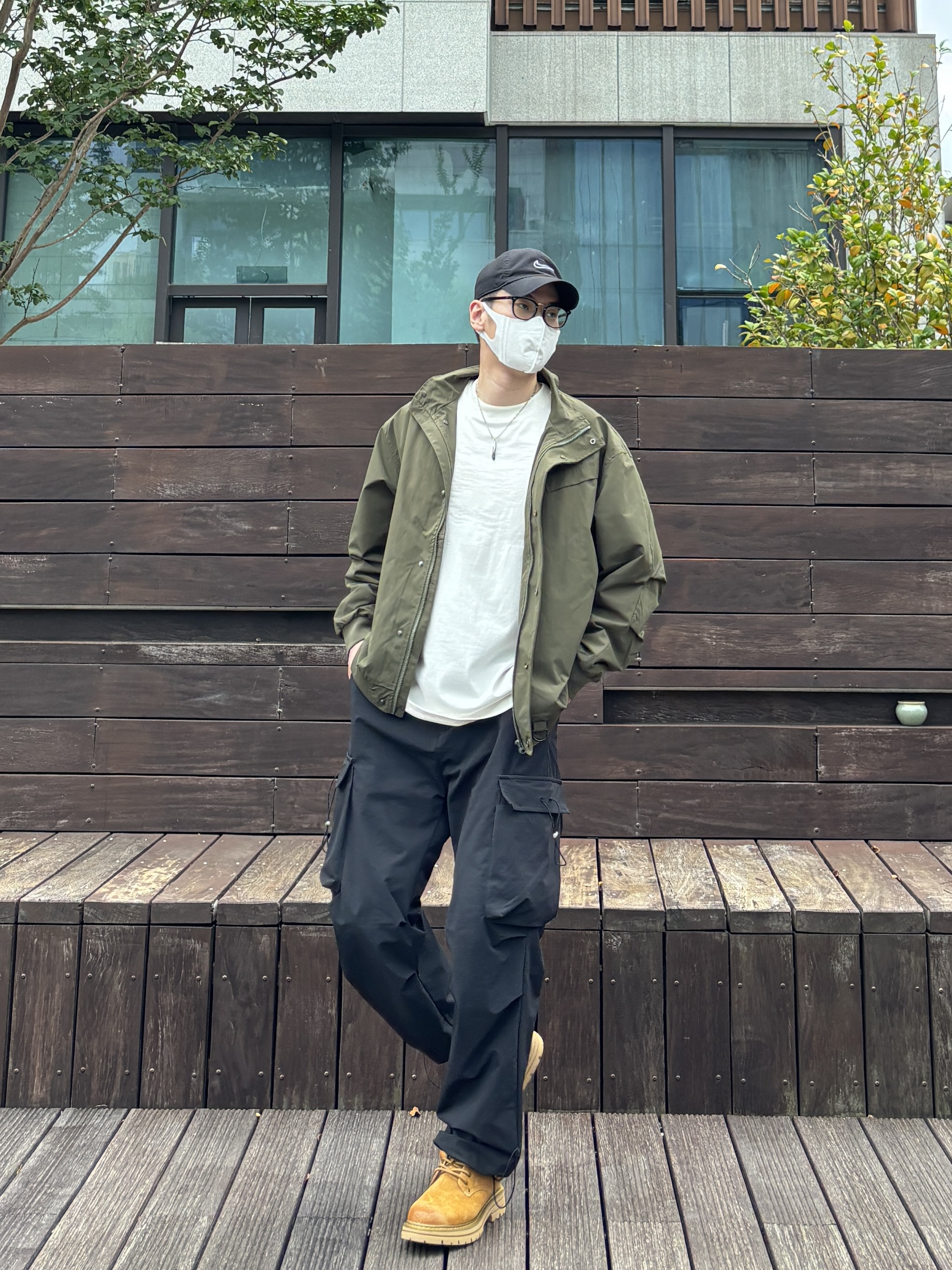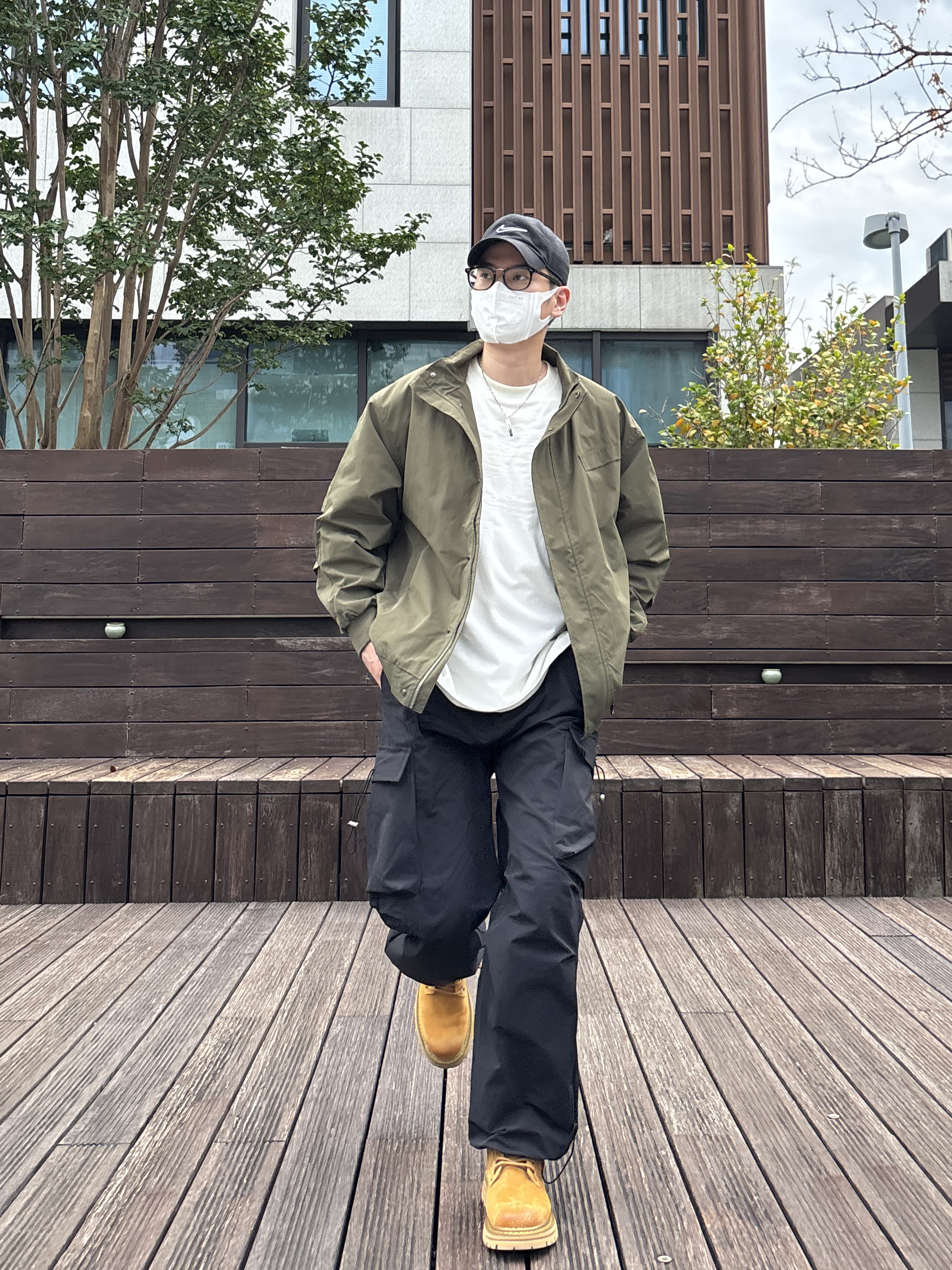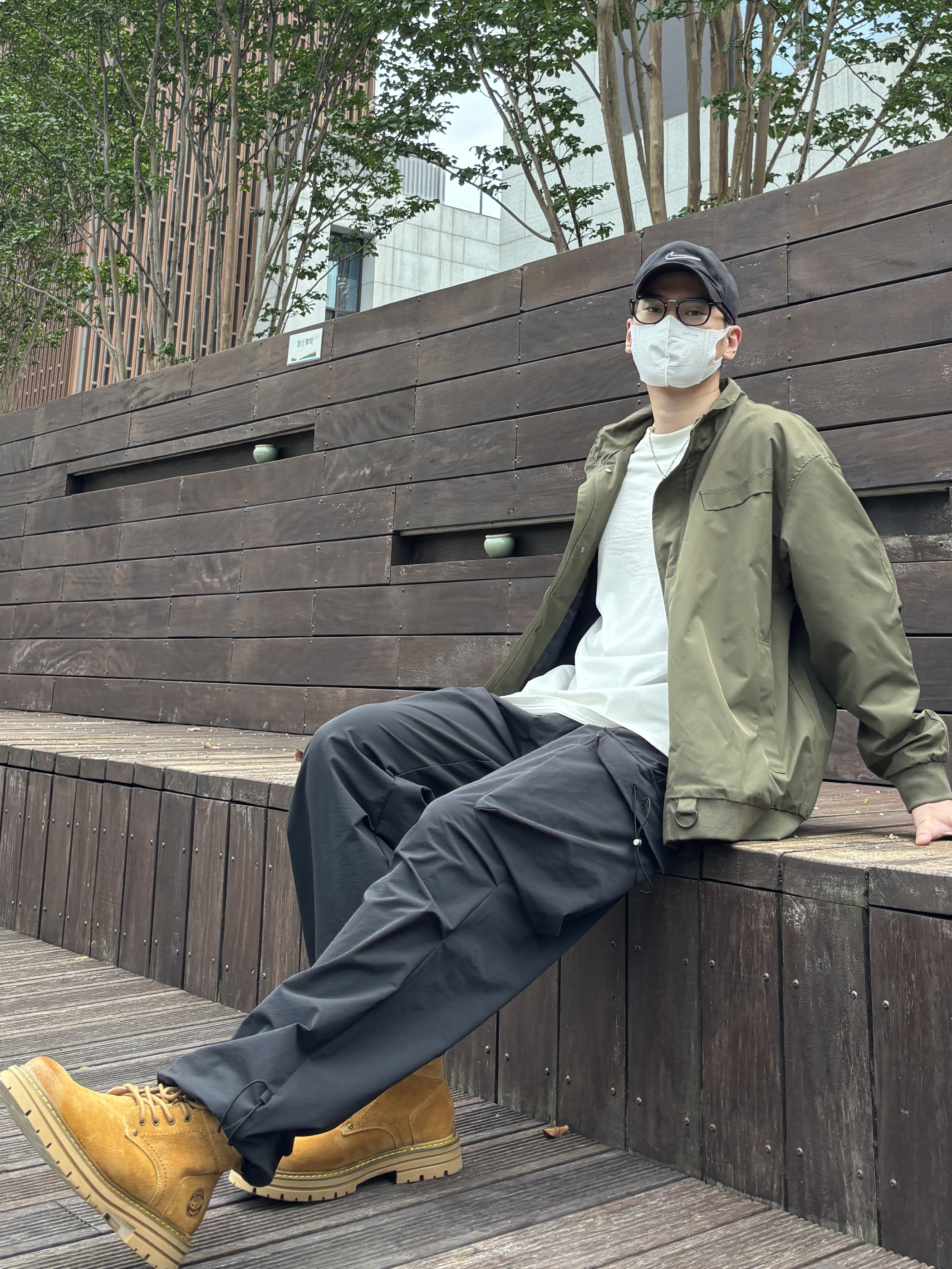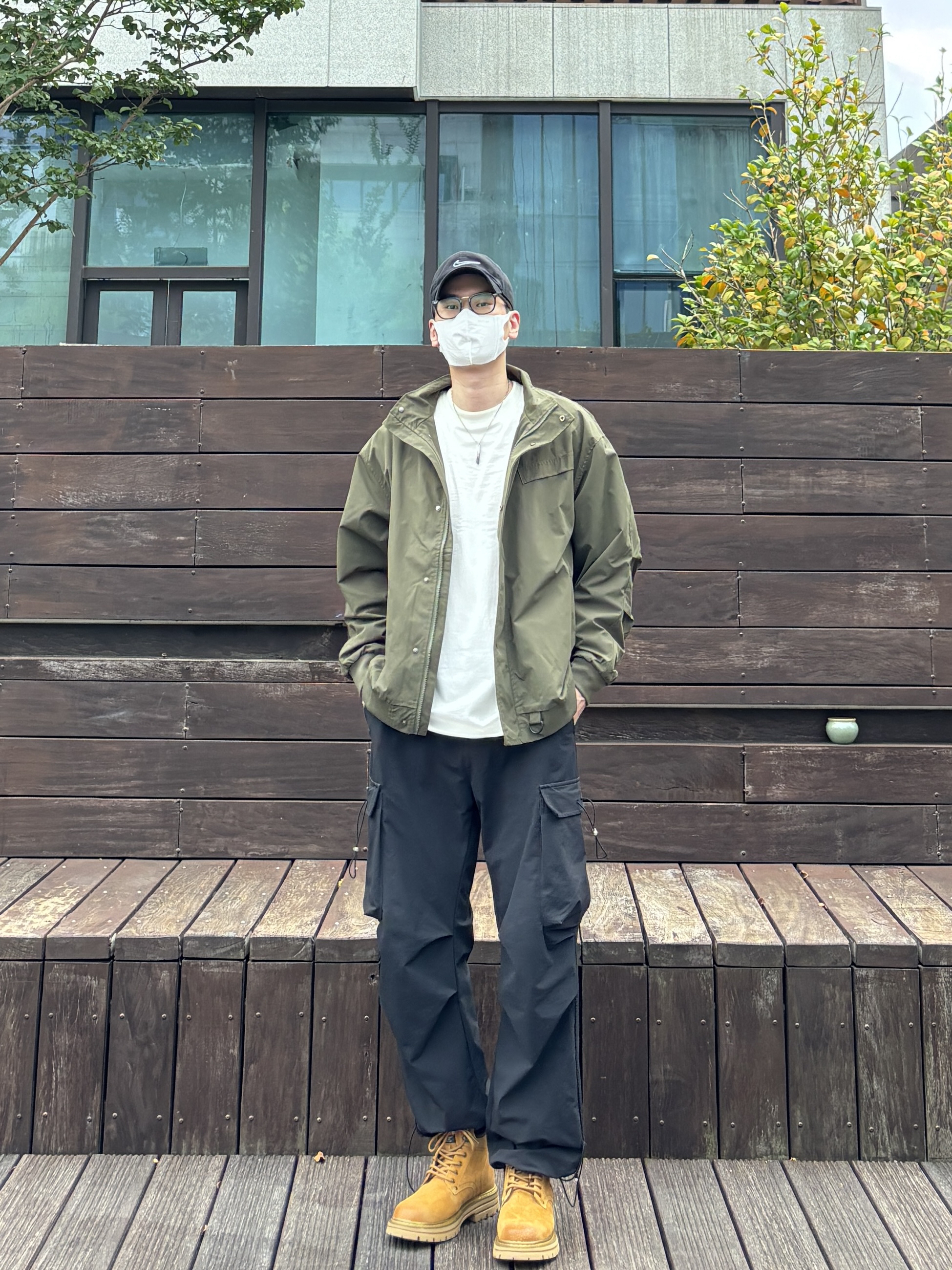今天这套上衣穿了一件军绿色宽松阔版立领防风夹克 ⬇️ 裤子选择简约大方的黑色直筒多口袋机能伞兵裤 ⬇️ 鞋子上脚硬朗感十足的沙漠黄中筒工装马丁靴 ⬇️ 最后戴一条黑曜石吊坠项链点缀下整体穿搭 - 今日搭配 衣服裤子:NICE LILI 鞋子:Colorful Creations
