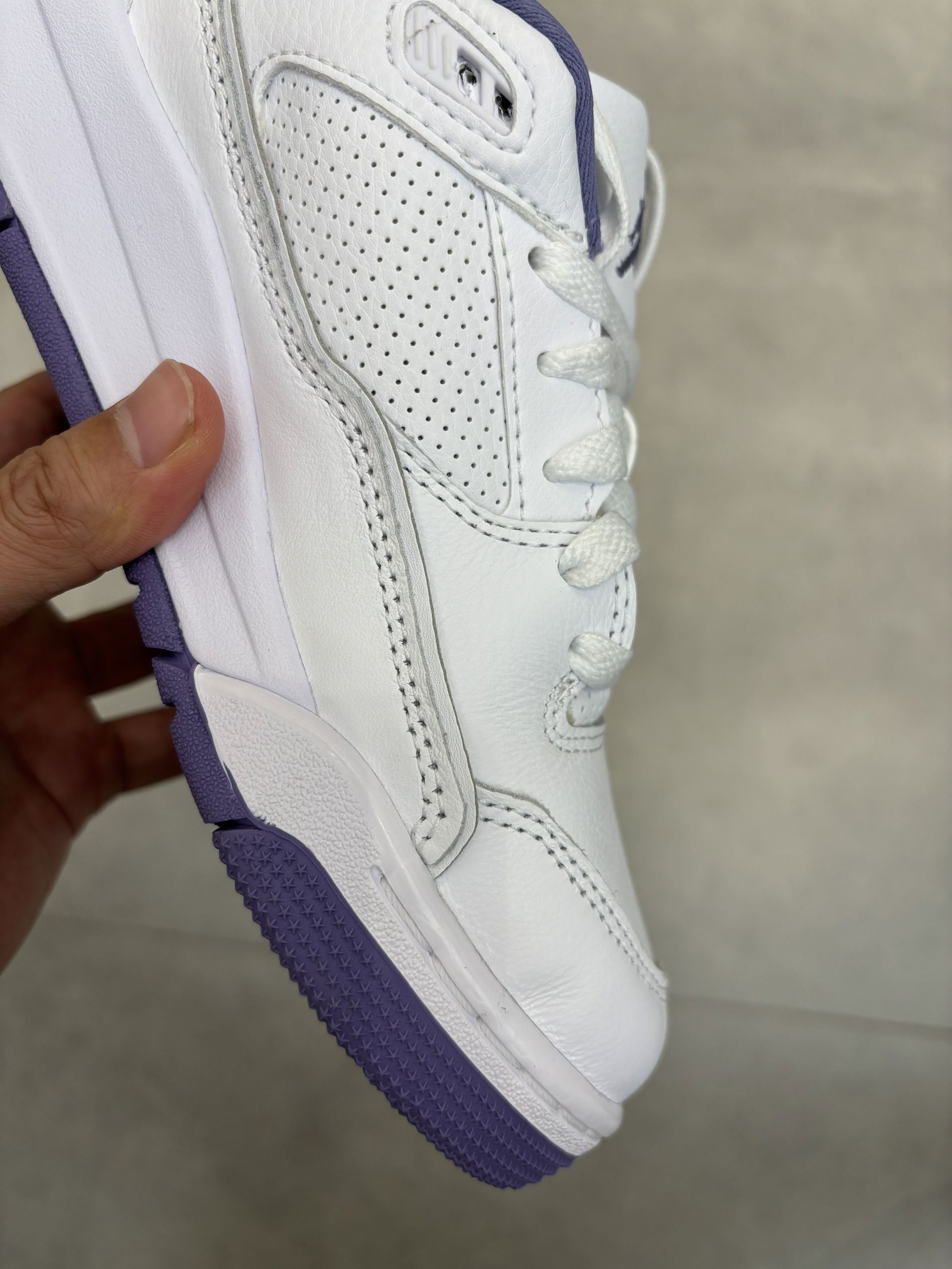 开学季球鞋指南 紫色系的aj篮球鞋还是真的少见 你们觉得这个颜值如何?颜值几分 这个版型和aj4rm有点像 都是篮球鞋的简版设计 设计简单没有那么笨重,适合秋季 缓震虽然差一点 但是包裹和皮质感都很好