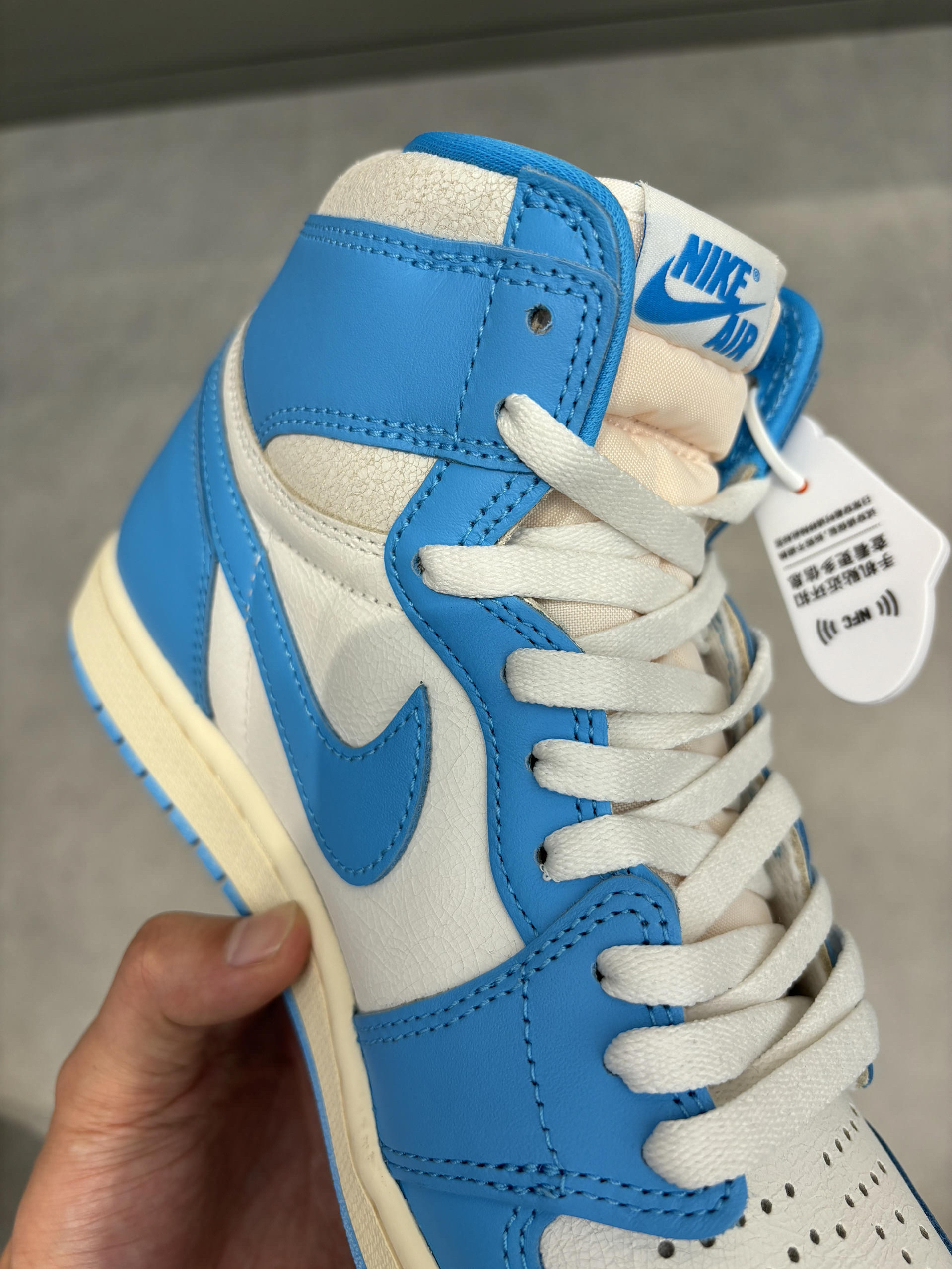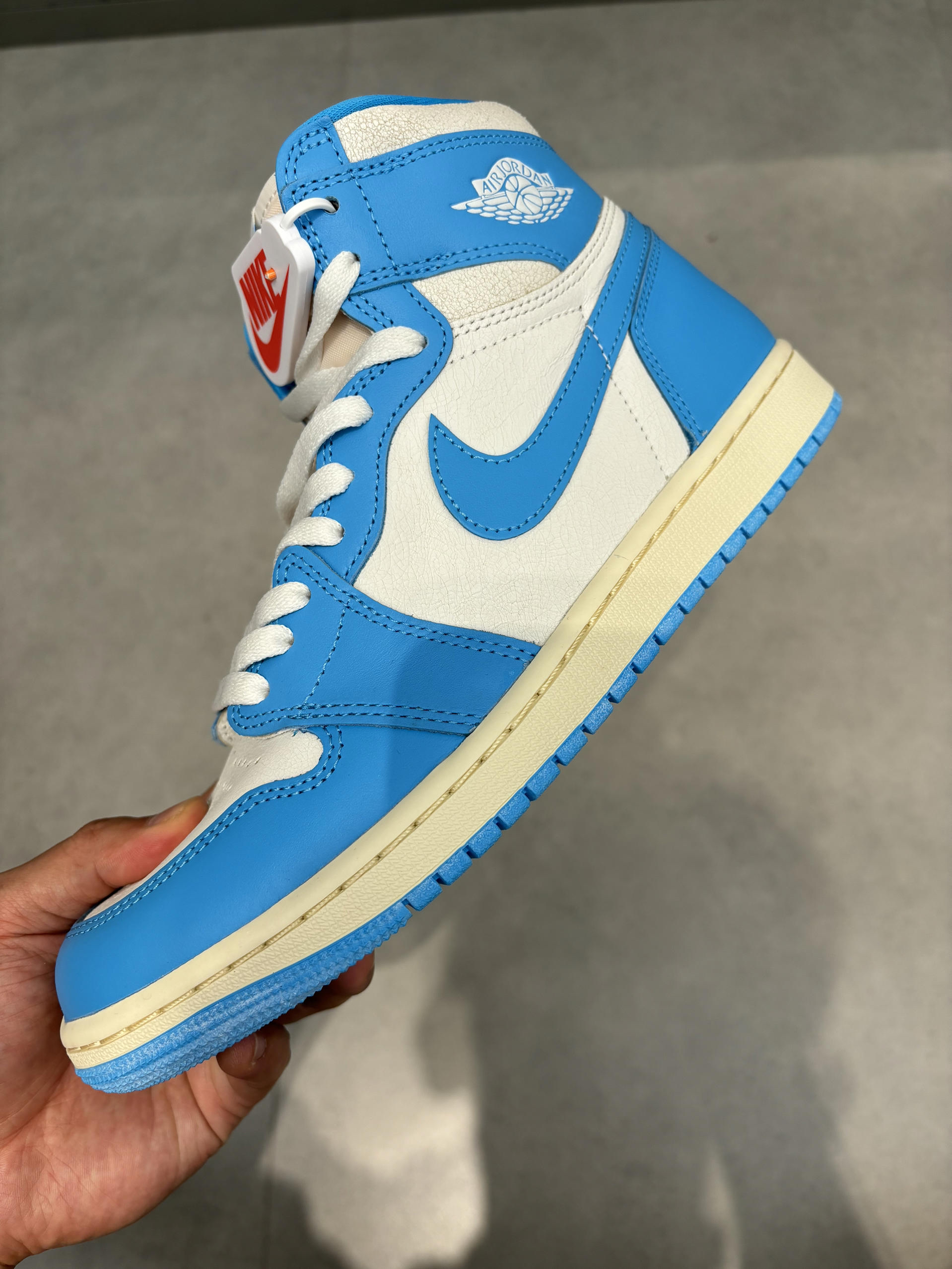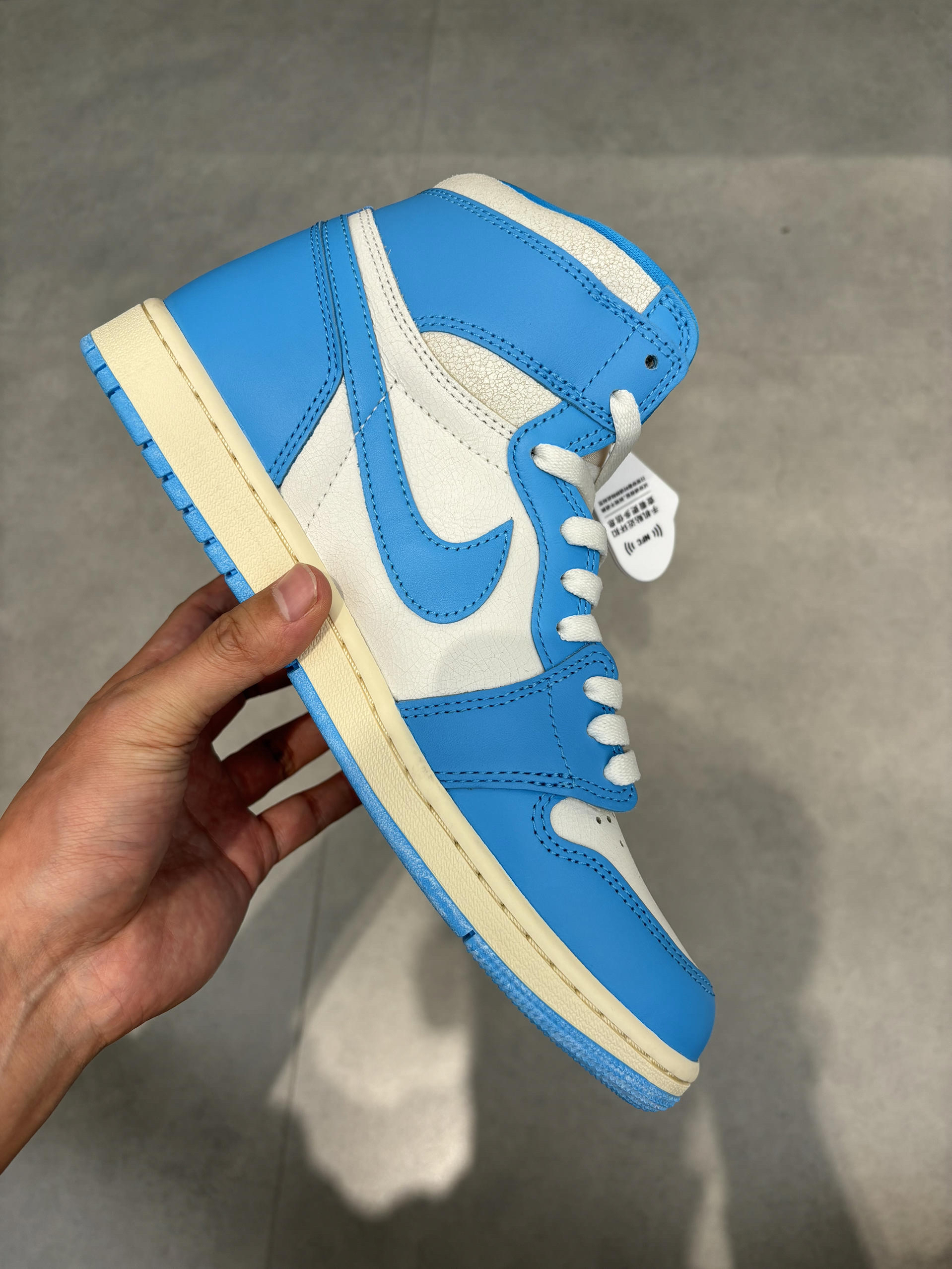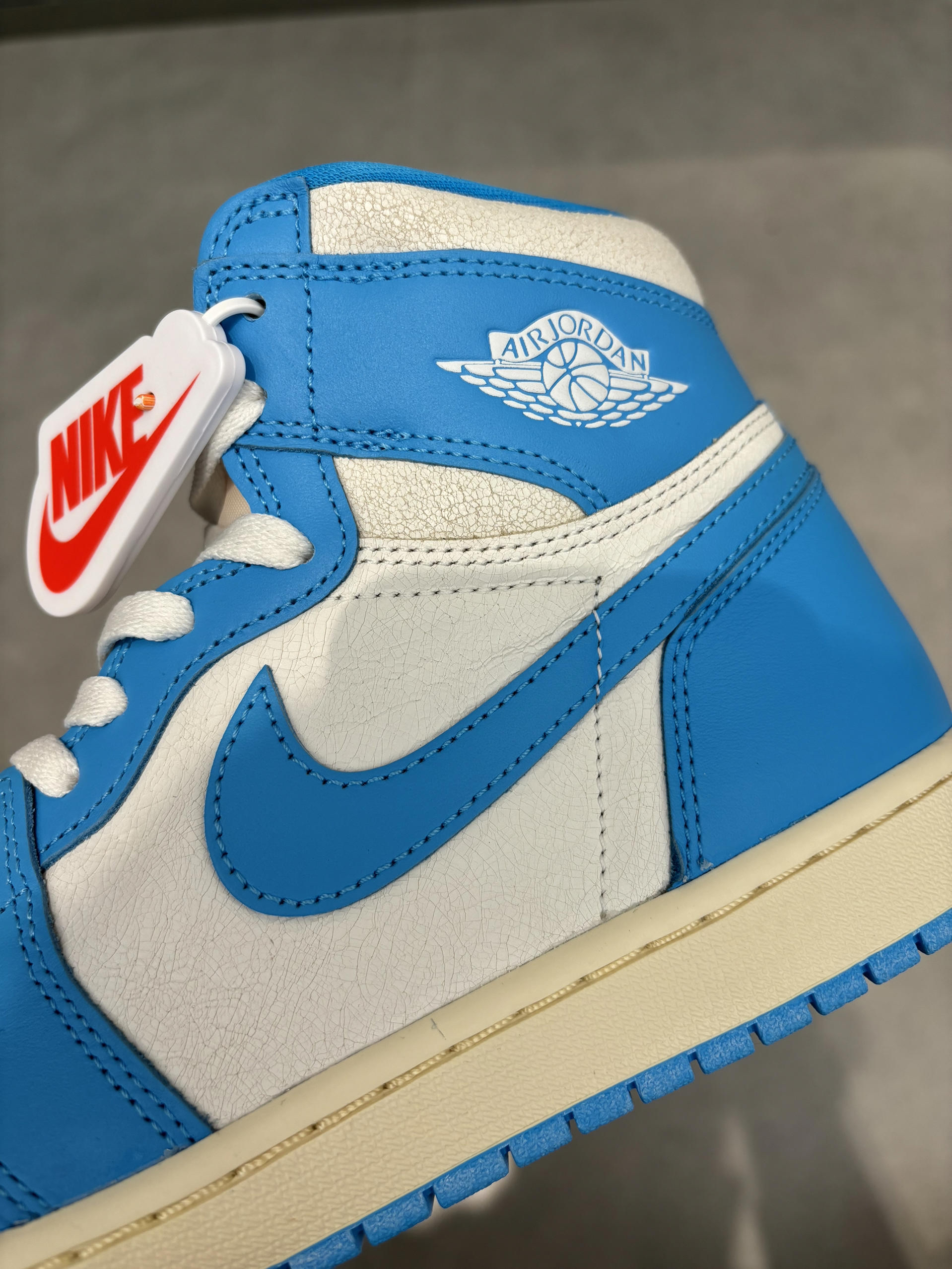北卡蓝的皮怎么刚买就裂开了?真不知道咋回事 这个怎么是裂开的效果 我以为买到假的了 没想到他就是这么设计的?差点搞错了 这个北卡蓝还是深一点的不是淡色系 我觉得对于学生党比较讨喜 因为我搭配校服校裤刚好 这一套都是深蓝色不会显得很突兀 而且上学打球穿很帅 我们班同学都羡慕穿aj1打球的打球穿帅吗