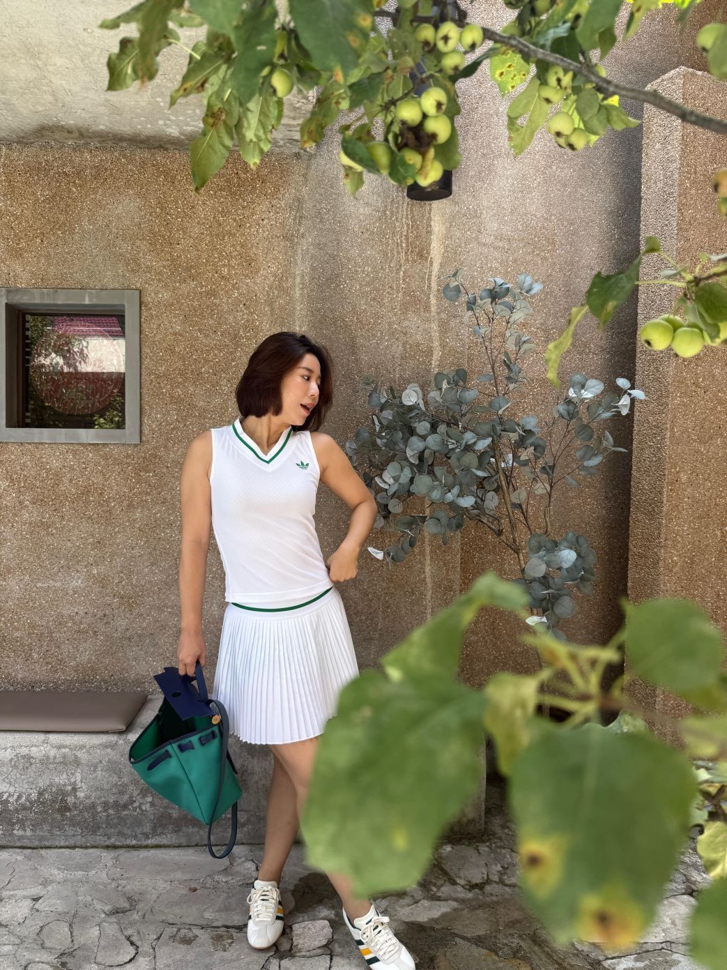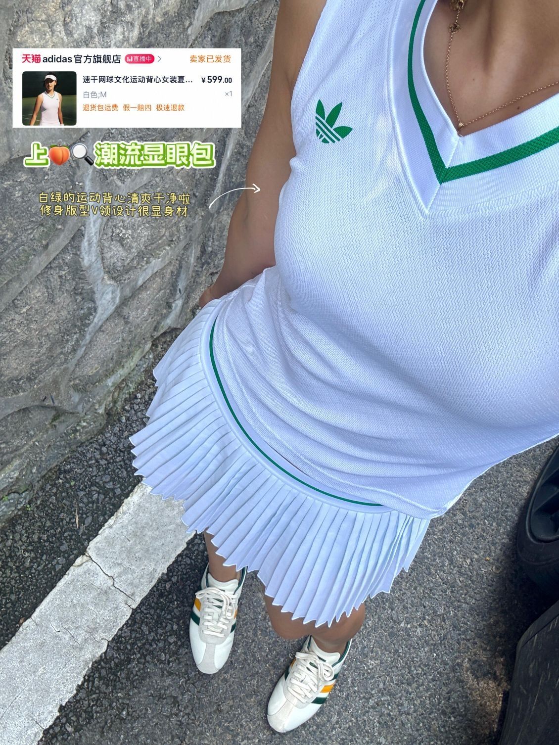 最近除了黑点 其他都挺好的 黑皮+户外+运动风=我的日常打开方式🆙 晒黑后三叶草女孩再次上线👧🏽 黑皮穿白色,又又又显健康了! 年龄是佐料,把自由和热爱 都穿在身上,融进每寸阳光里🌞 新入的一套城市运动风,白绿配色非夏天莫属,干净清爽☘️ 🎽adidas三叶草速干背心 修身版型,V领设计,排汗透气,城市运动风首选! 👗adidas三叶草网球裙 白色百褶A字网球裙,腰头带三叶草logo,日常百...