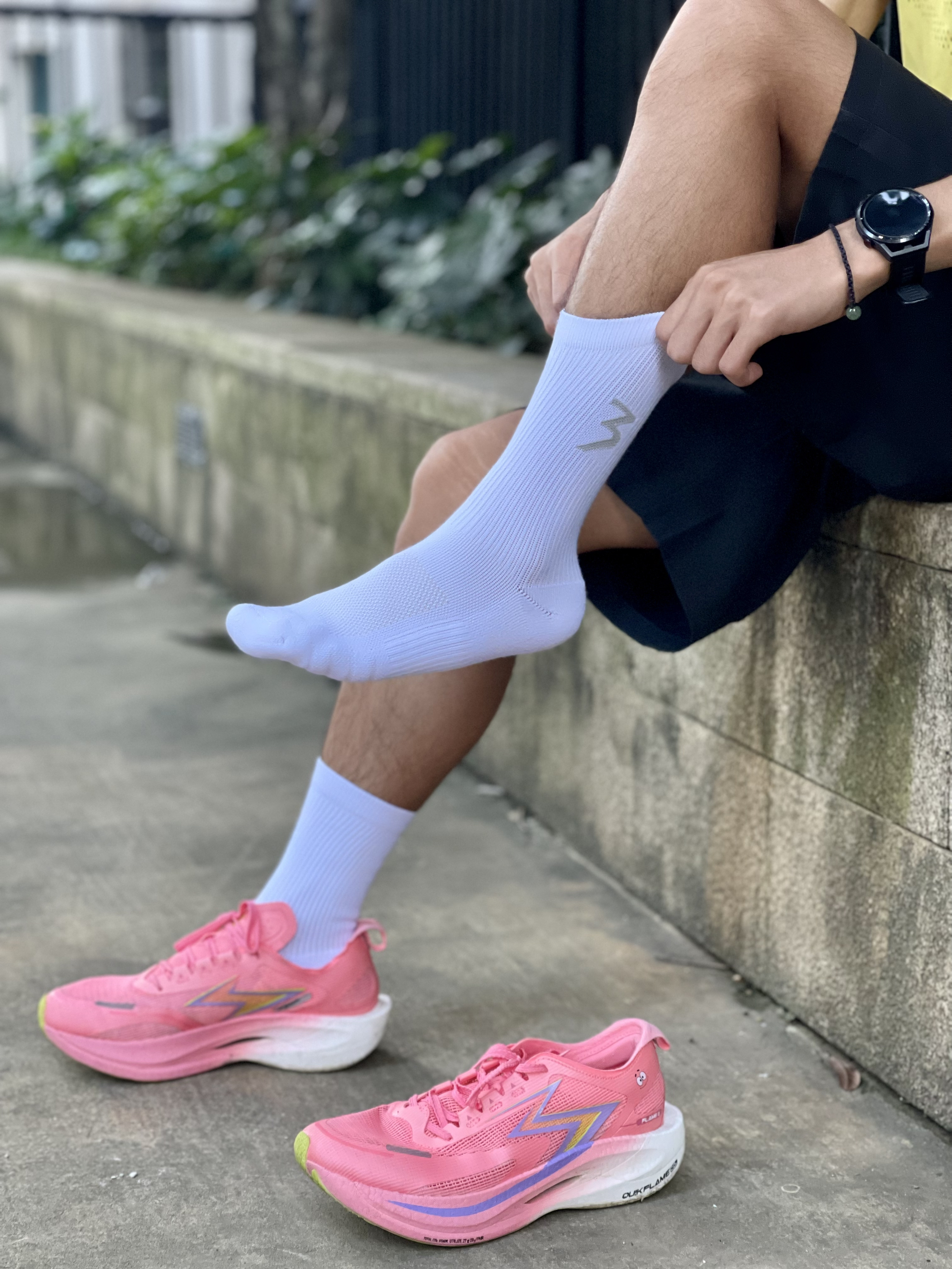 刚试了这双 361° 家的专业跑步袜🧦 毛巾底加厚设计踩下去像云朵☁️ 弹力包裹防滑💪狂跑也不移位! 中筒设计保护脚踝👣防止受伤 透气不闷汗💦跑10km也很干爽