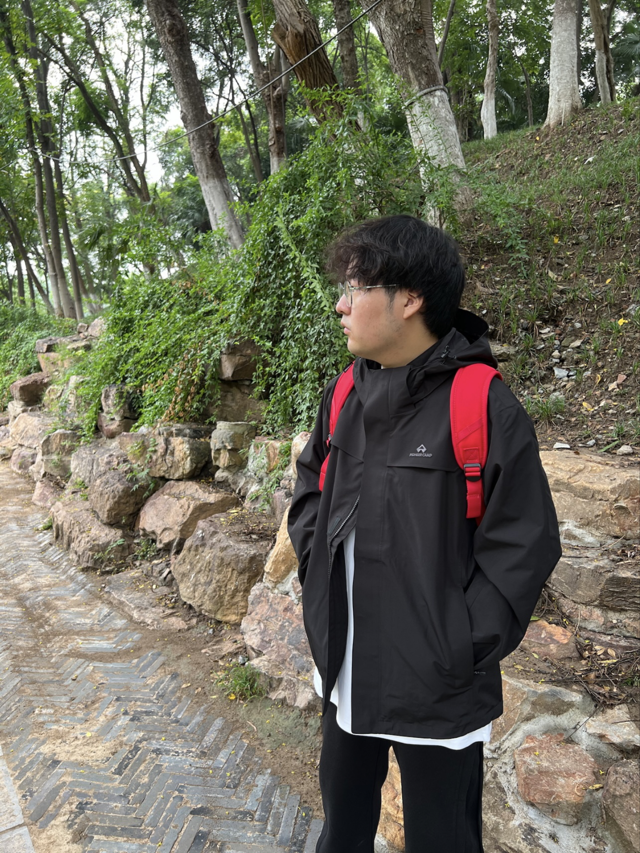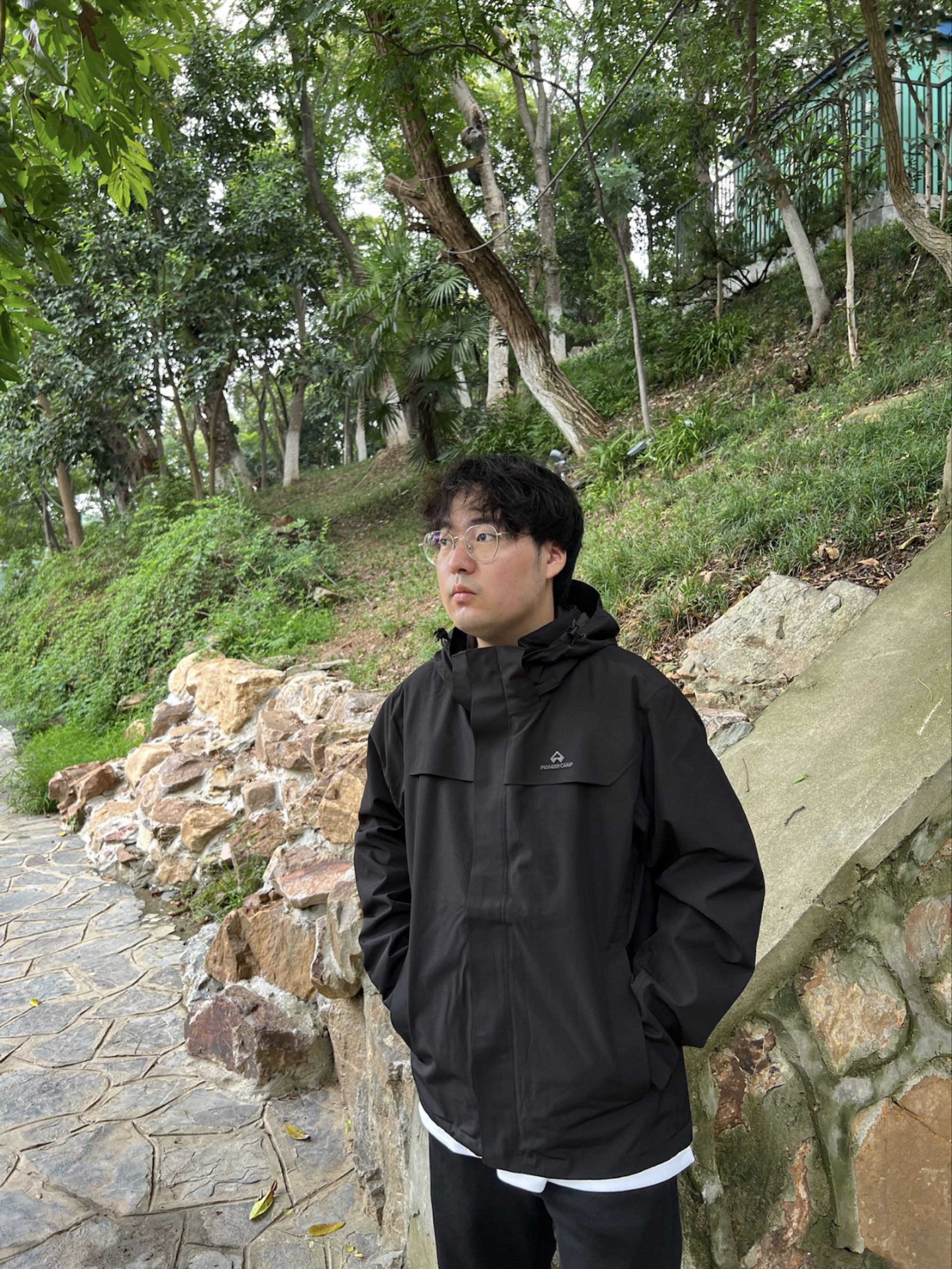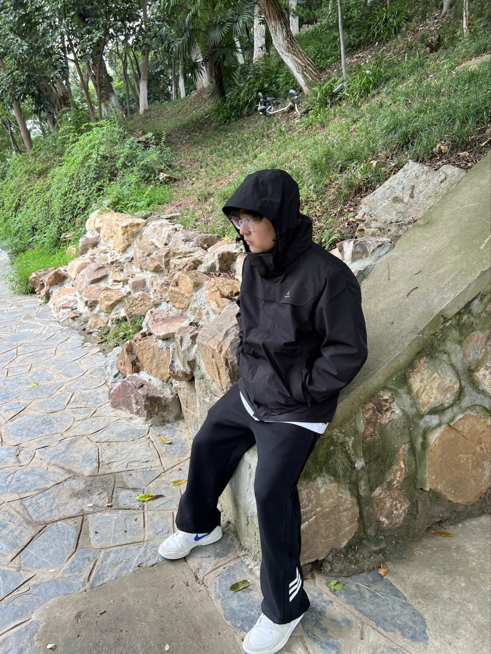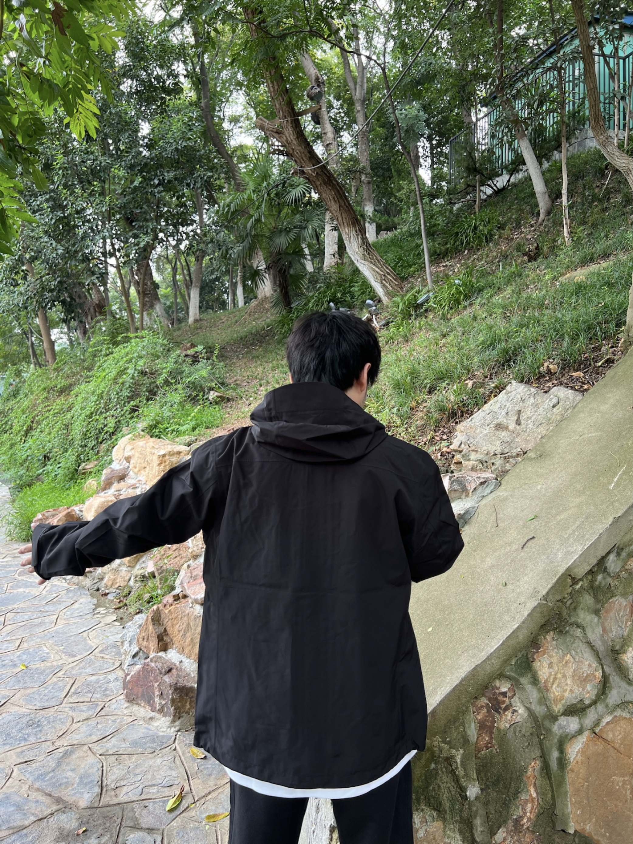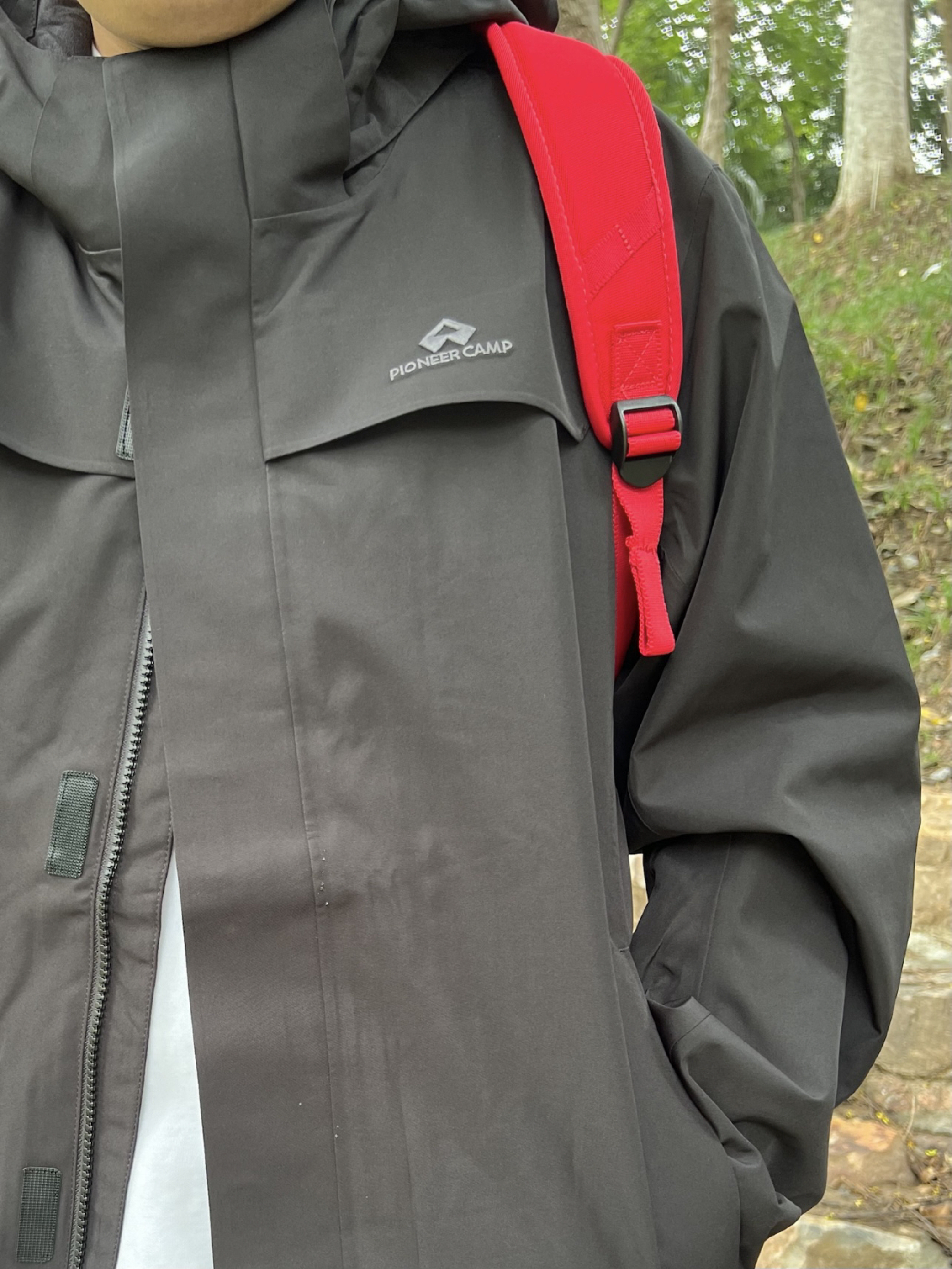初秋在山上早晚昼夜温差比较大 外套带了一件冲锋衣防寒防风穿着的 我内搭一件万能白色T很简单很清爽🉑️ 推荐长裤树枝杂草蚊虫有点多防护好咱们自己 鞋子的话推荐脚感舒服运动鞋或登山鞋 最后是一个红书包装两瓶水、纸、帽子之类的 着重介绍我的冲锋衣 拓路者/PIONEER CAMP 刺绣小logo低调简单不用多少✋ 黑色解构工装属性的设计更酷更帅哦 轻量话轻薄防风防雨的面料很重要没有负重 领口内侧...