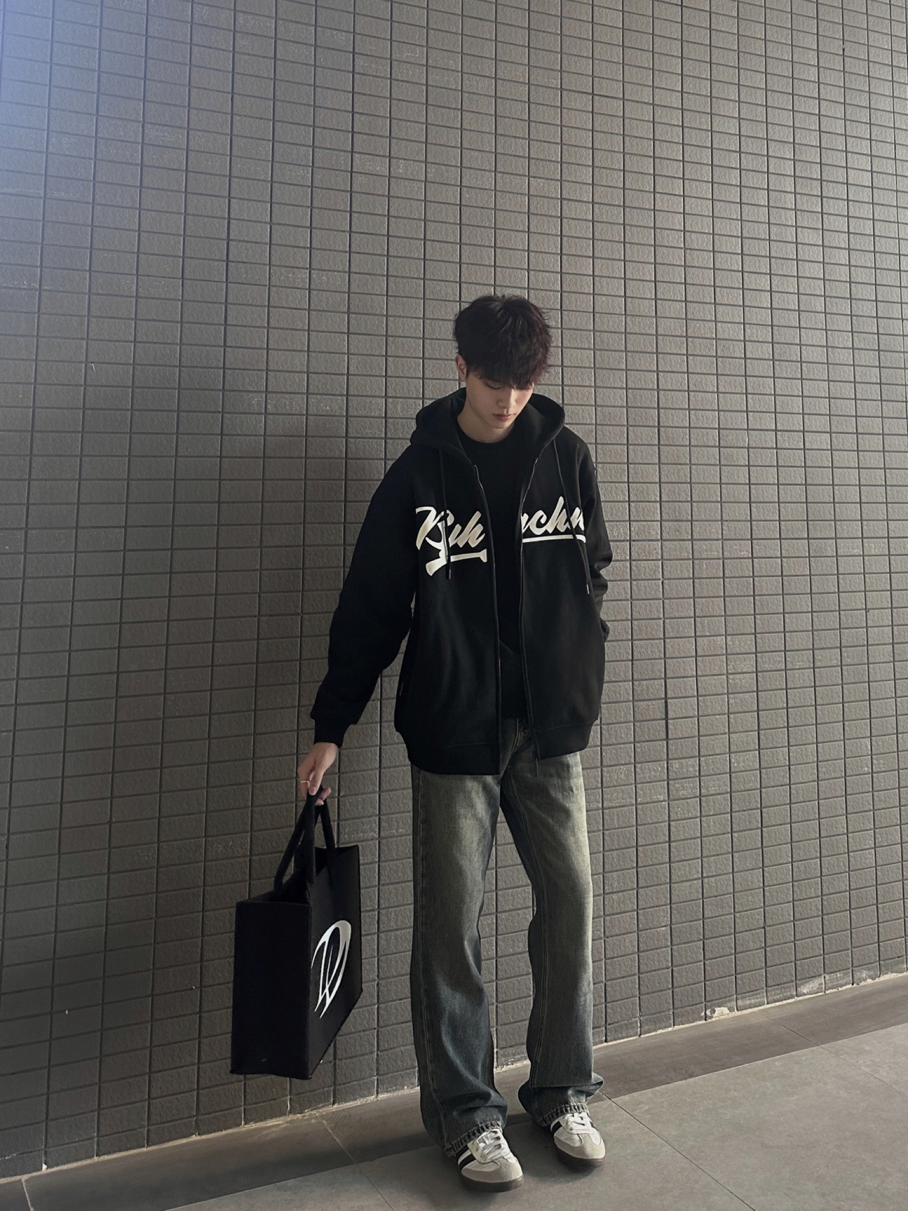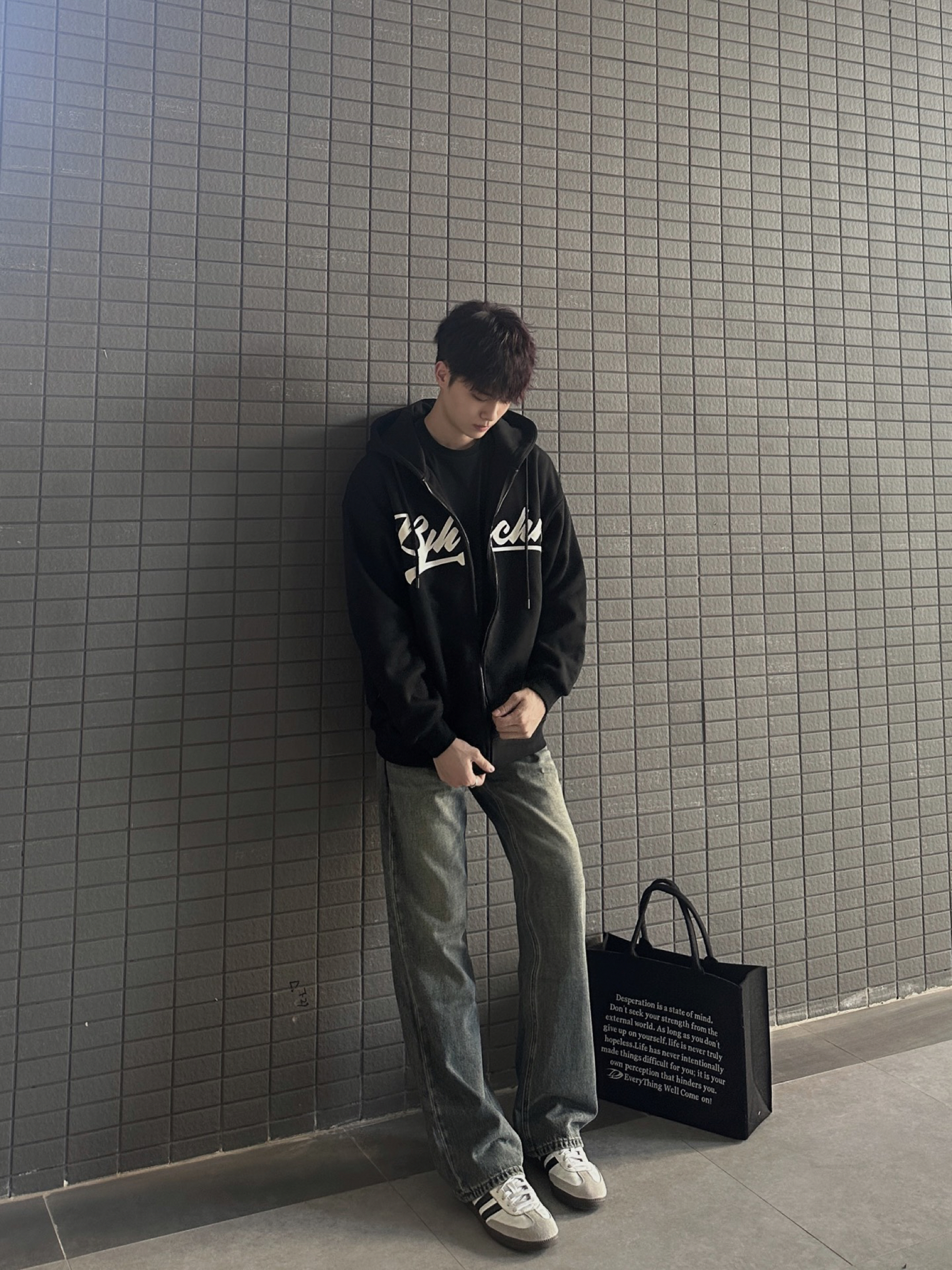天气降温 是时候准备一件薄外套啦💭 还没选好的友友们可以选黑色 百搭不挑人 像我身上这件BJHG开衫外套就很不错~ 复古手绘Logo刺绣🪡质感十足 水洗不易脱落💦 下身搭配一条蓝色牛仔裤很有少年感喔~ 相信我 男大学生秋季这么穿就对啦🙋🏻♂️