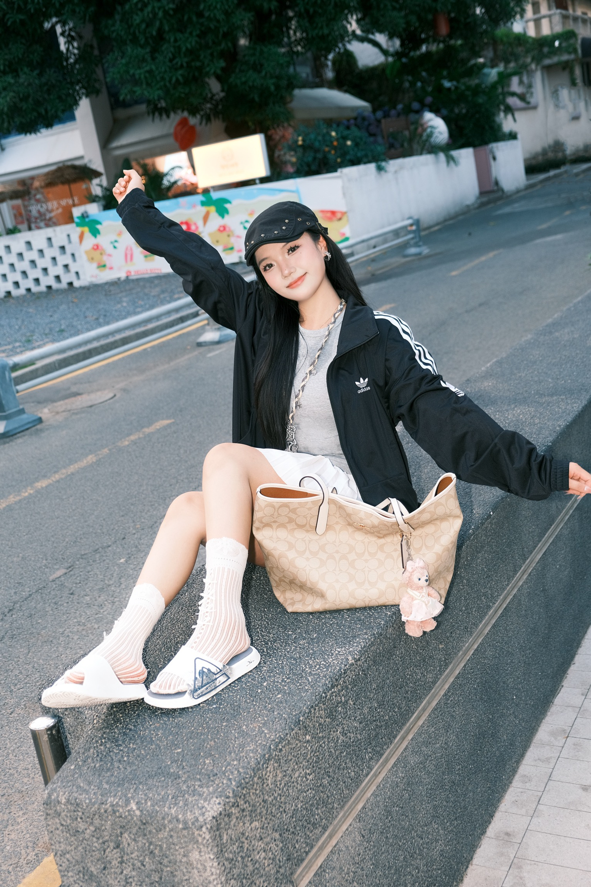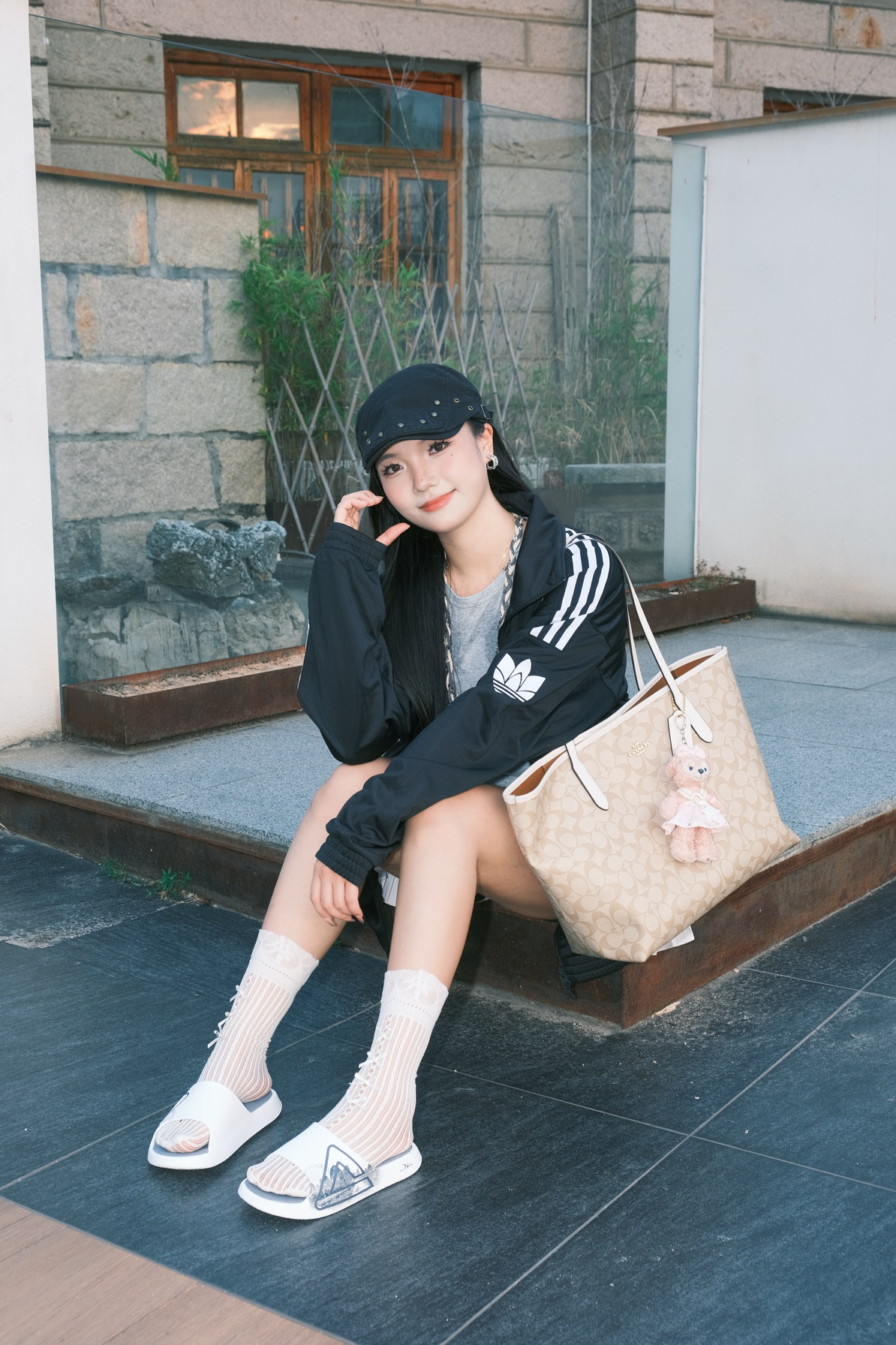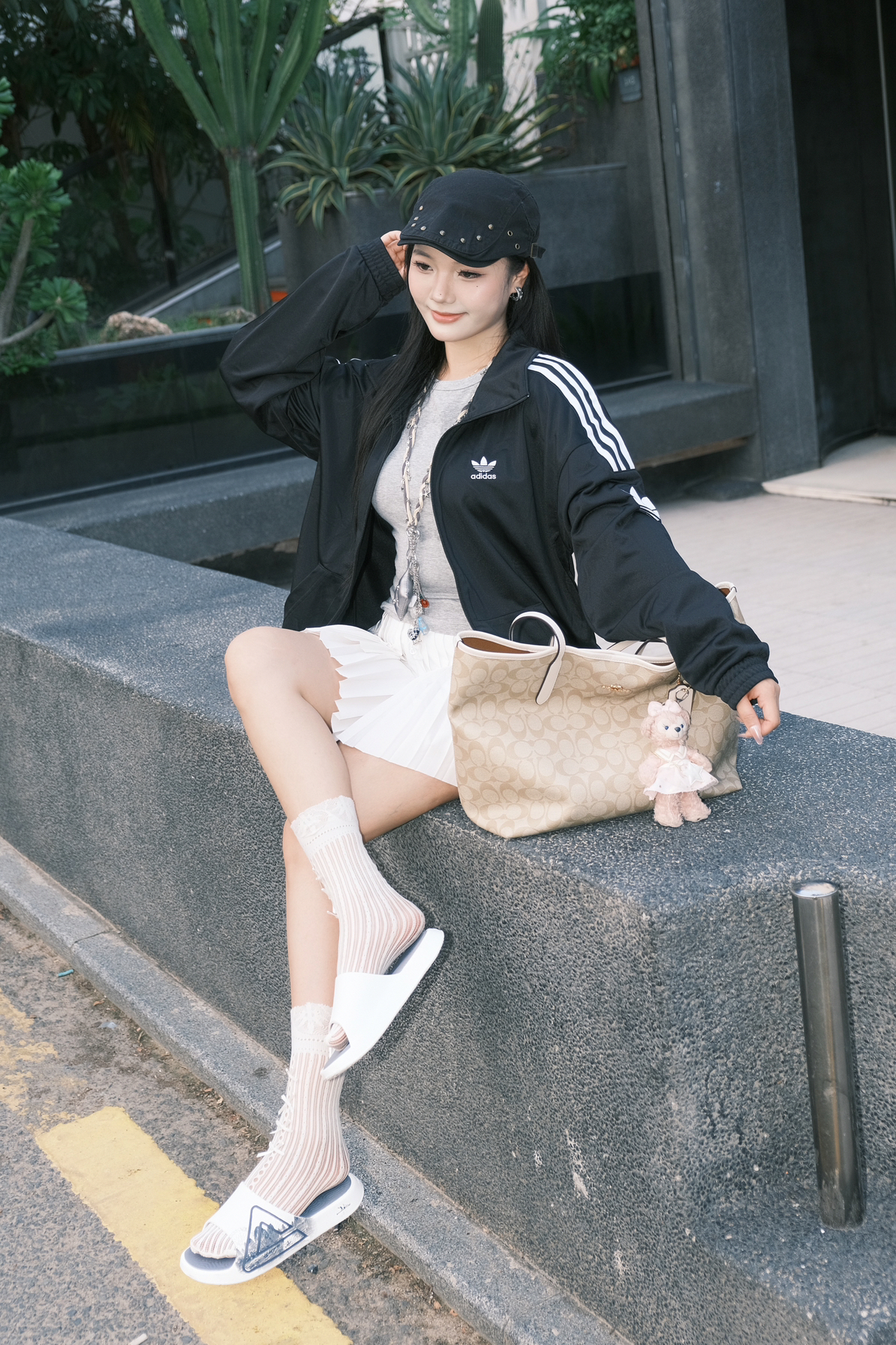 哈喽👋🏻今天我的穿搭主打一个自在~ 🖤我的上衣搭了件休闲的黑色外套,下面配条白色小裙子,简单又清爽~ 🖤重点来啦!我穿了双带点设计感的白色拖鞋,还搭了双蕾丝袜子,我觉得这样既保留了拖鞋的随性,又多了些温柔的小细节,走在路上都觉得自在又好看~ 🖤再拎上个大大的包包,装点日常小物件,出门超方便~整体这一套,我自己感觉舒适又有风格,很适合日常出街~