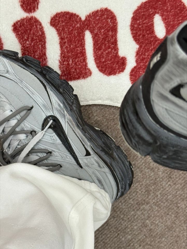 是耐克的跑步鞋呀 有被惊喜到黑灰配色经典百搭 上脚包裹和透气也不错 走路软弹舒适 日常搭配休闲运动裤 通勤或跑步穿都可以哦
