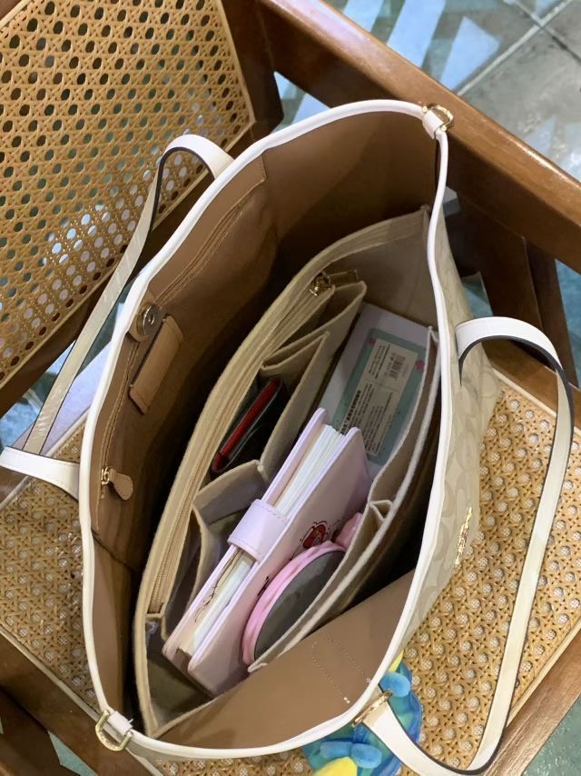 本篇笔记关联了Coach City Tote 33系列 大号 大容量PVC老花敞口撞色涂层帆布配皮按扣开合托特单肩手提包 米色粉笔白 等商品,为用户提供真实的使用体验和购买参考。