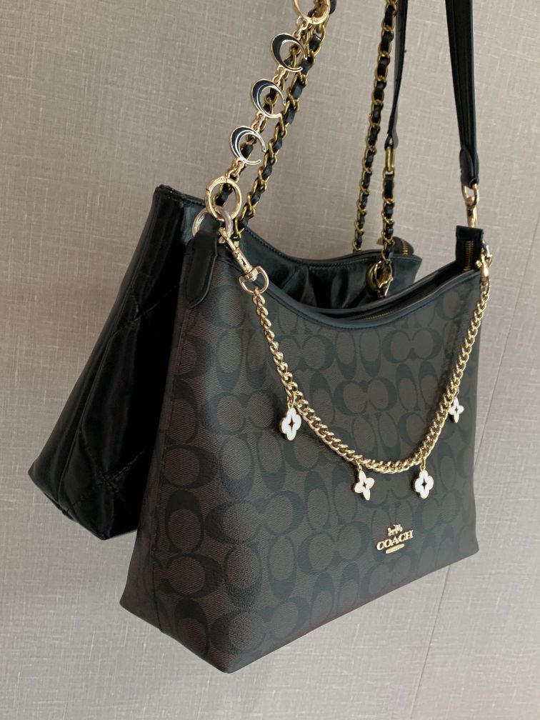本篇笔记关联了Coach Laurel 31 大号 品牌徽标通勤大容量可拆卸肩带涂层帆布料拼皮革流浪包腋下包斜挎手提单肩包 黑色等商品,为用户提供真实的使用体验和购买参考。