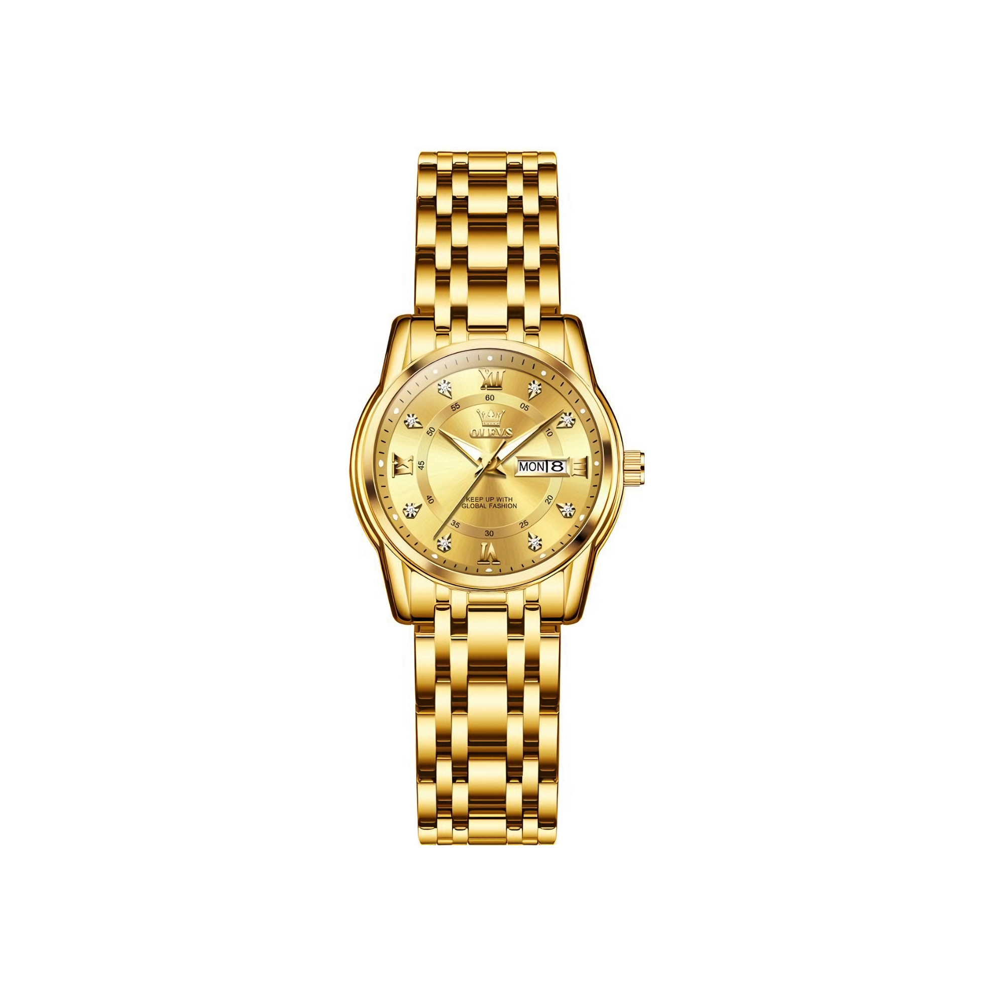 本篇笔记关联了OLEVS/欧利时 玩酷系列 经典时尚小巧钢带镶钻双日历夜光防水电子石英男女同款手表 钢带全金 女款等商品,为用户提供真实的使用体验和购买参考。