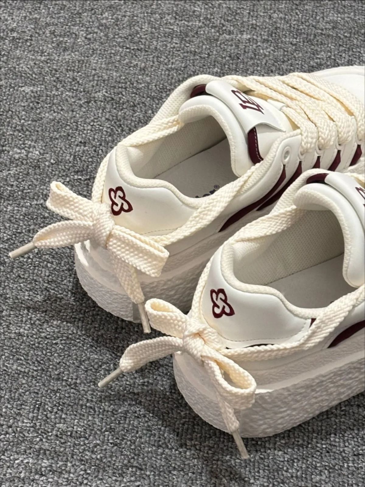 好喜欢我的红豆爆米花 蛮百搭红白配色 上脚很轻诶 爆米花底舒服的勒 不闷脚 感觉一年四季都能穿 搭配我的可口可乐耳机 少年感不就来了