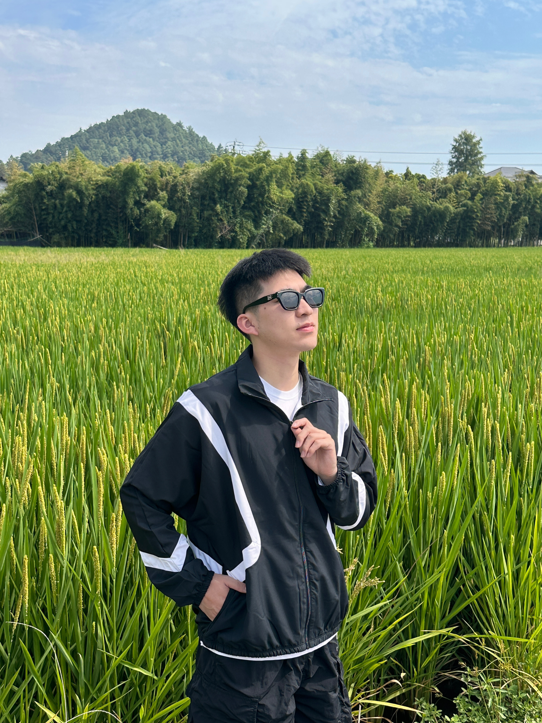 nike长袖立领外套 黑色李昀锐同款 上身很好看 里面材质很透气 黑色款式 加上里面内搭一件白t 很好看 下半身搭了一条黑色中裤 整体又休闲 又运动!!!