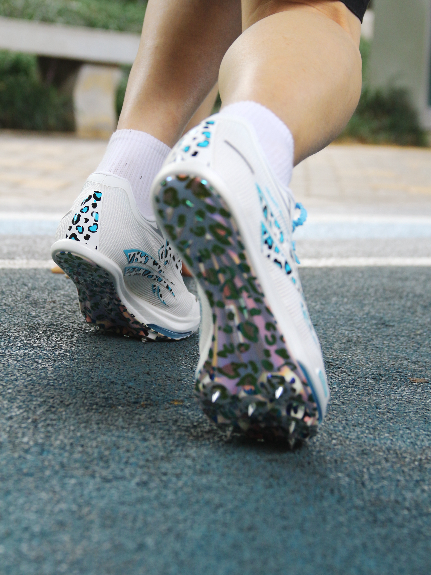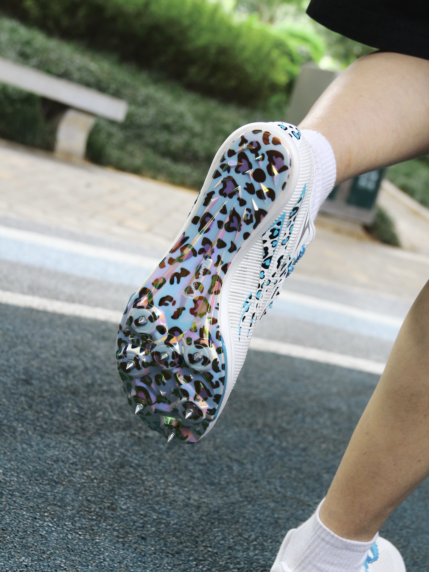把跑道变成个人秀场 没想到钉鞋也能这么野 大赛PB密码藏在鞋底㊙️ - 白蓝撞色加上电镀细节 颜值暴击💥钉鞋界的视觉炸弹 电镀豹纹设计的大底 抓地同时自带反光特效✨ 📈三大核心要素提升速度 有个体积是同类2倍的超大气垫 V1100的10层军工碳板⬆️硬度是普通碳板3倍 另外NASA级中底做到轻量化 同厂Adidas工艺☝🏻获得国际田联认证 这么一双男女同款👫 且颜值性能双在线的钉鞋 直接锁死🔒让速...