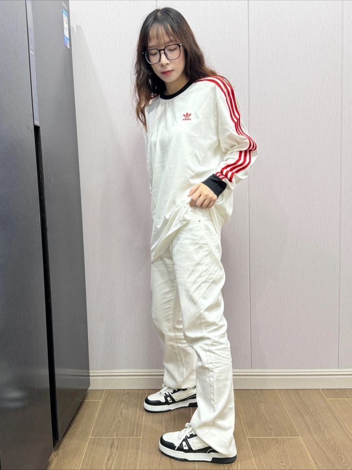 是我喜欢的简单的感觉 红白T恤搭配白色牛仔裤 这样穿是真的帅哦 这个牛仔裤的版型还不错 很有美式vibe风格 我觉得出门穿着还挺好看的,穿搭小白可以来抄作业了