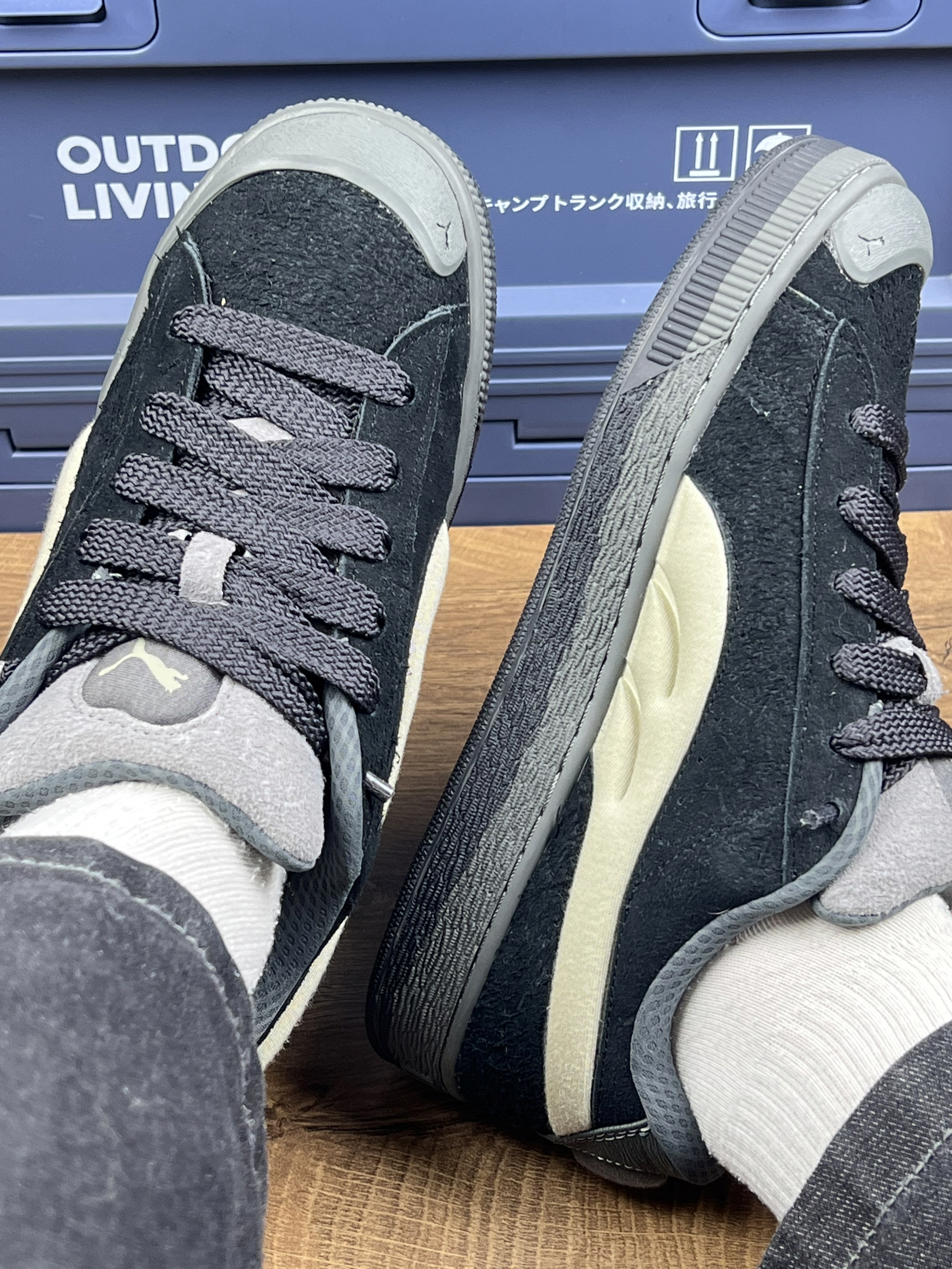 这双彪马鞋,外观上黑灰米白的搭配挺有质感,麂皮材质摸起来也还算细腻👟。 穿了有段时间,说说真实感受。它的脚感谈不上多惊艳,就是普通休闲鞋的那种脚感,长时间走路的话,脚底会有点乏。尺码方面得留意,我平时穿其他鞋的码数,穿这双得选小半码,不然会有点空。 还有个小缺点,麂皮材质虽好看,但不太耐脏,稍微沾点灰或者不小心蹭一下,痕迹就挺明显的,打理起来得费点心思。 不过日常随便穿穿,搭配休闲装出...