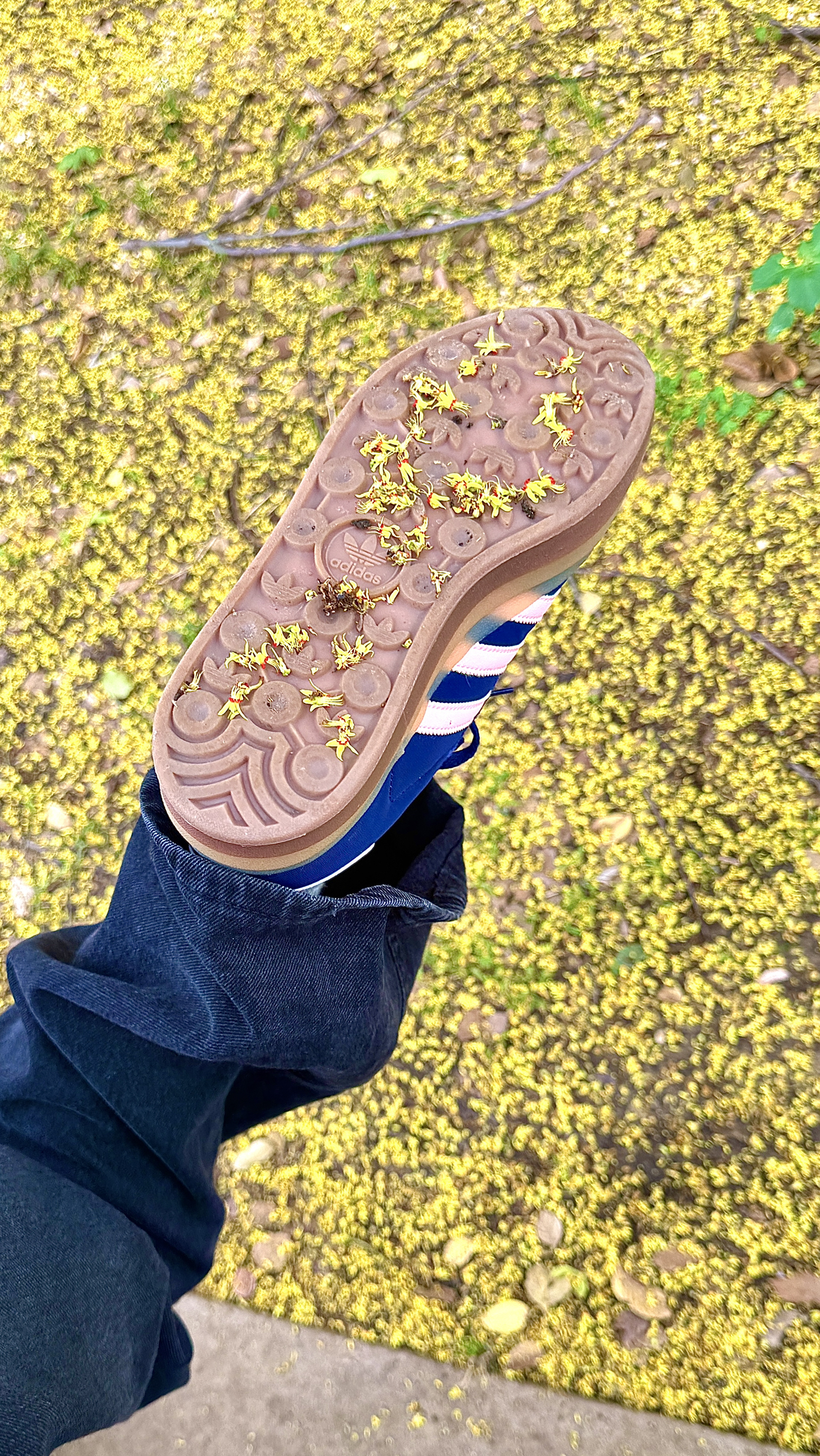 最近德训鞋超级火,这款鞋底是棕色的厚胶,有增高的效果,藏蓝色颜色绚丽又不张扬,日常通勤都是很好的选择,着急适合女大学生!搭配裙子牛仔裤阔腿裤休闲又有个性#百搭休闲宝斯藏德训鞋 adidas originals