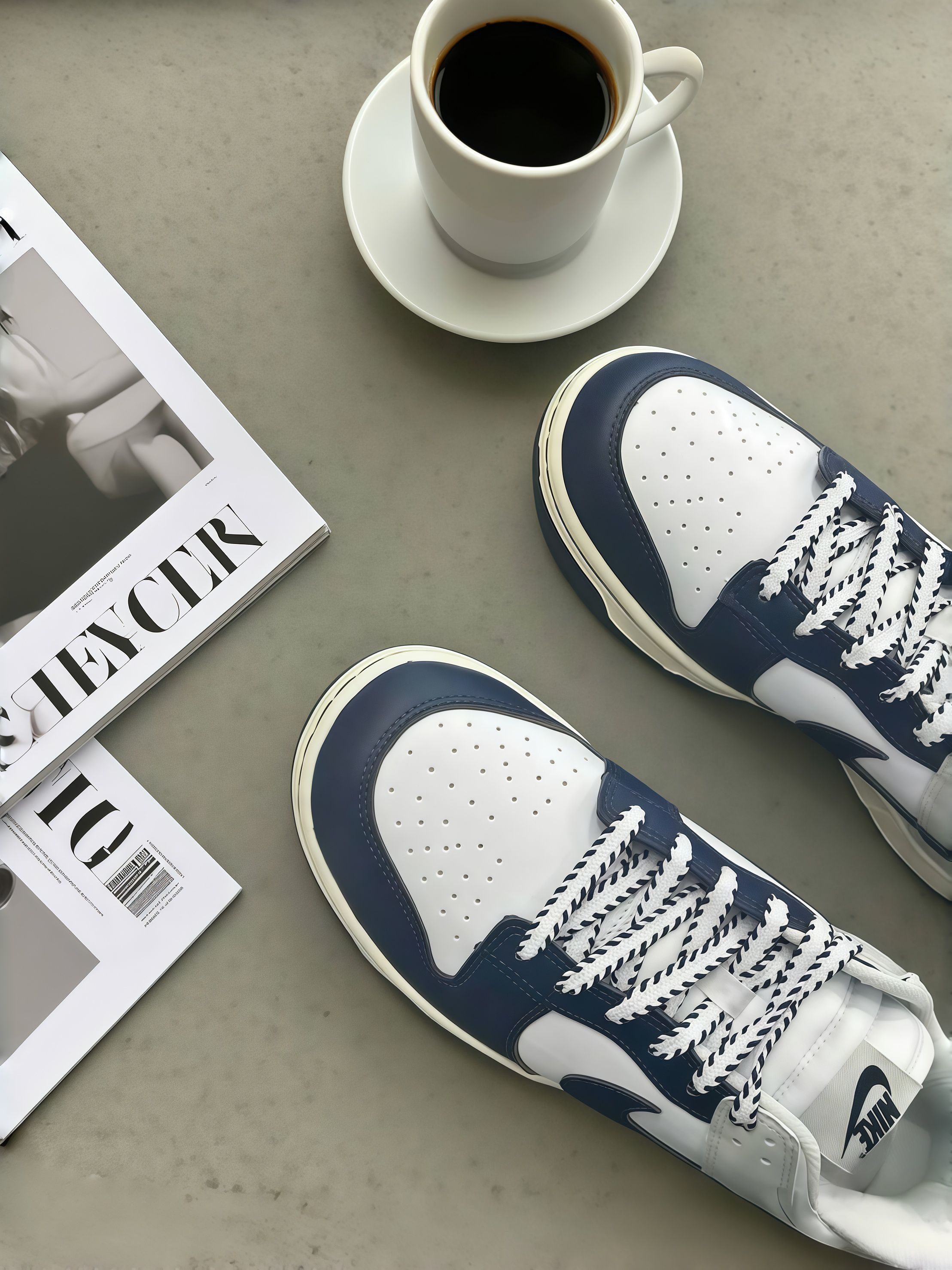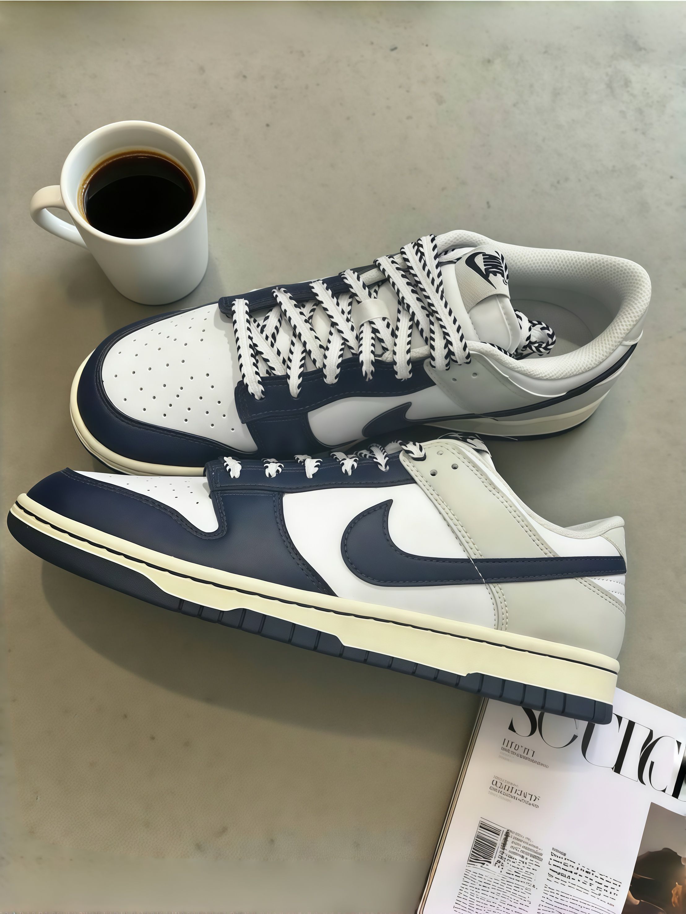 【🍺这双藏蓝Dunk,麻花鞋带好特别,和咖啡杂志搭起来好有氛围~🍷】,由用户 爱嗦粉的米女 分享,来自江西。这是一篇来自识货社区的真实用户分享笔记。