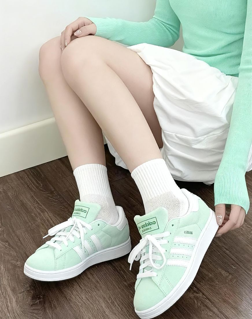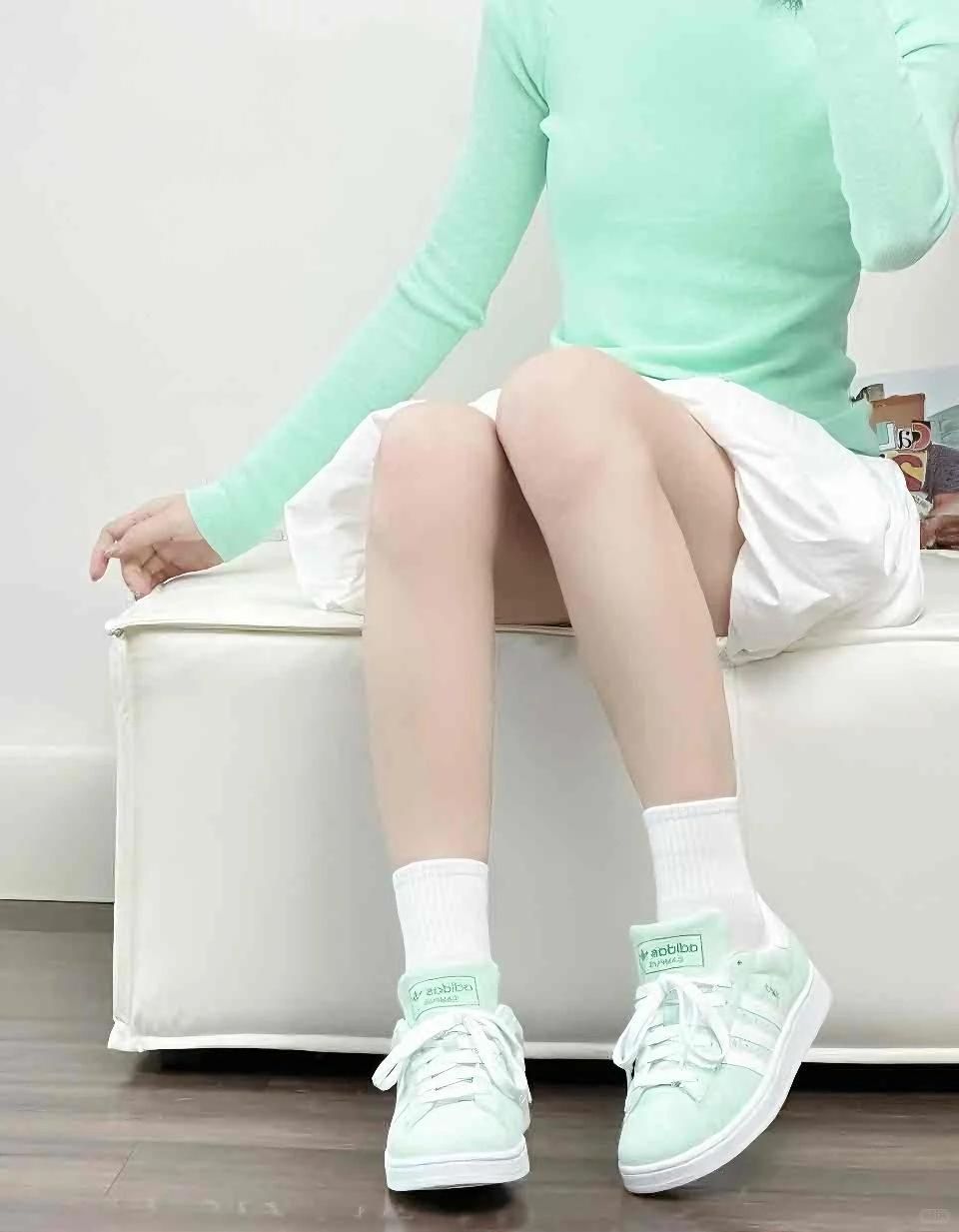🌿这双薄荷绿的阿迪达斯也太戳我了!绒面质感高级又特别,白绿搭配清新到犯规,春夏穿它出街,感觉空气都变甜了~