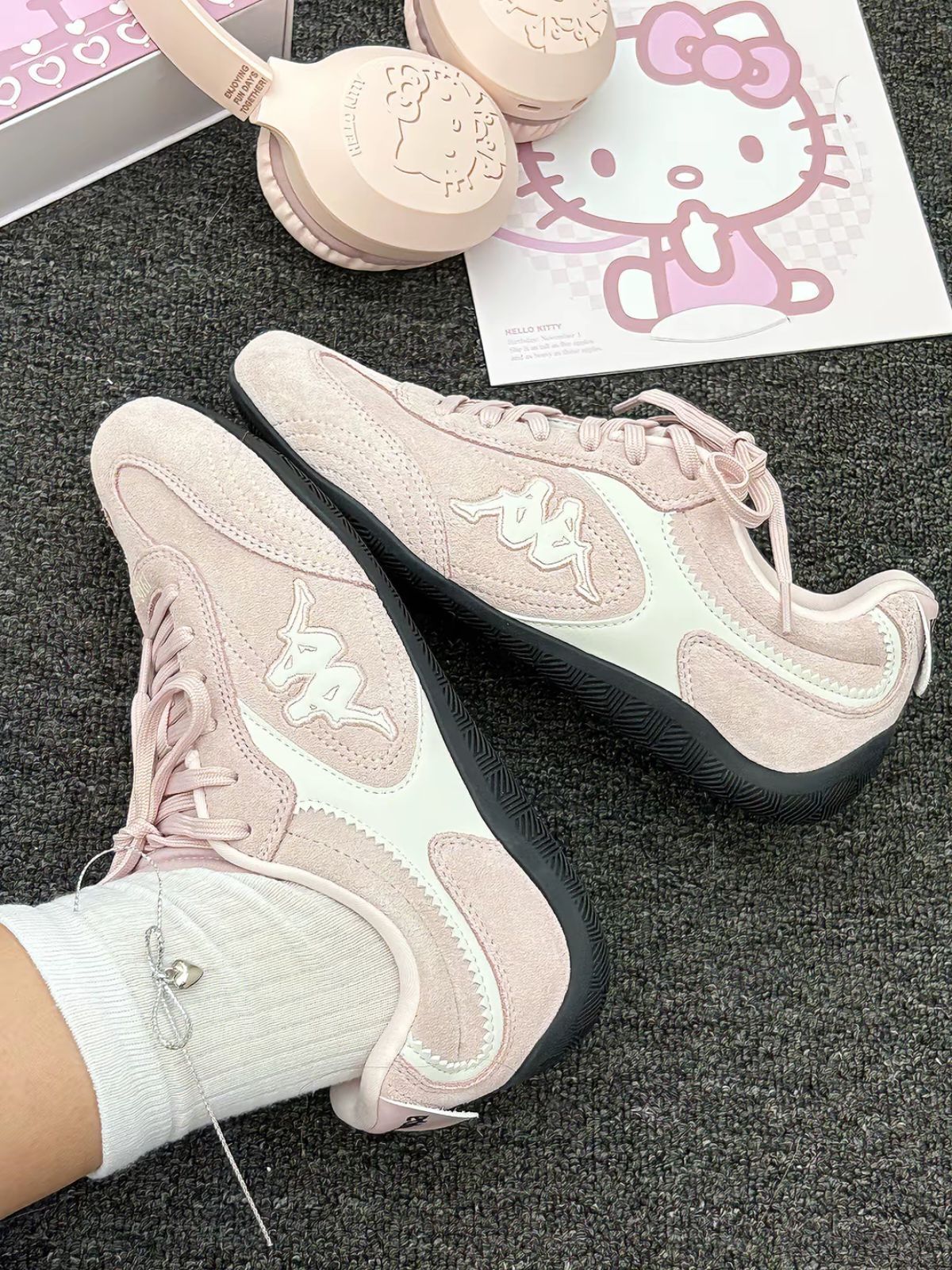 发现Kappa介双赛车鞋又乖又韩系 穿出门透气性 舒适度都还不错 最近也蛮流行的甜酷风的 上脚软fufu的很舒服 浅粉色也蛮好搭配衣服的