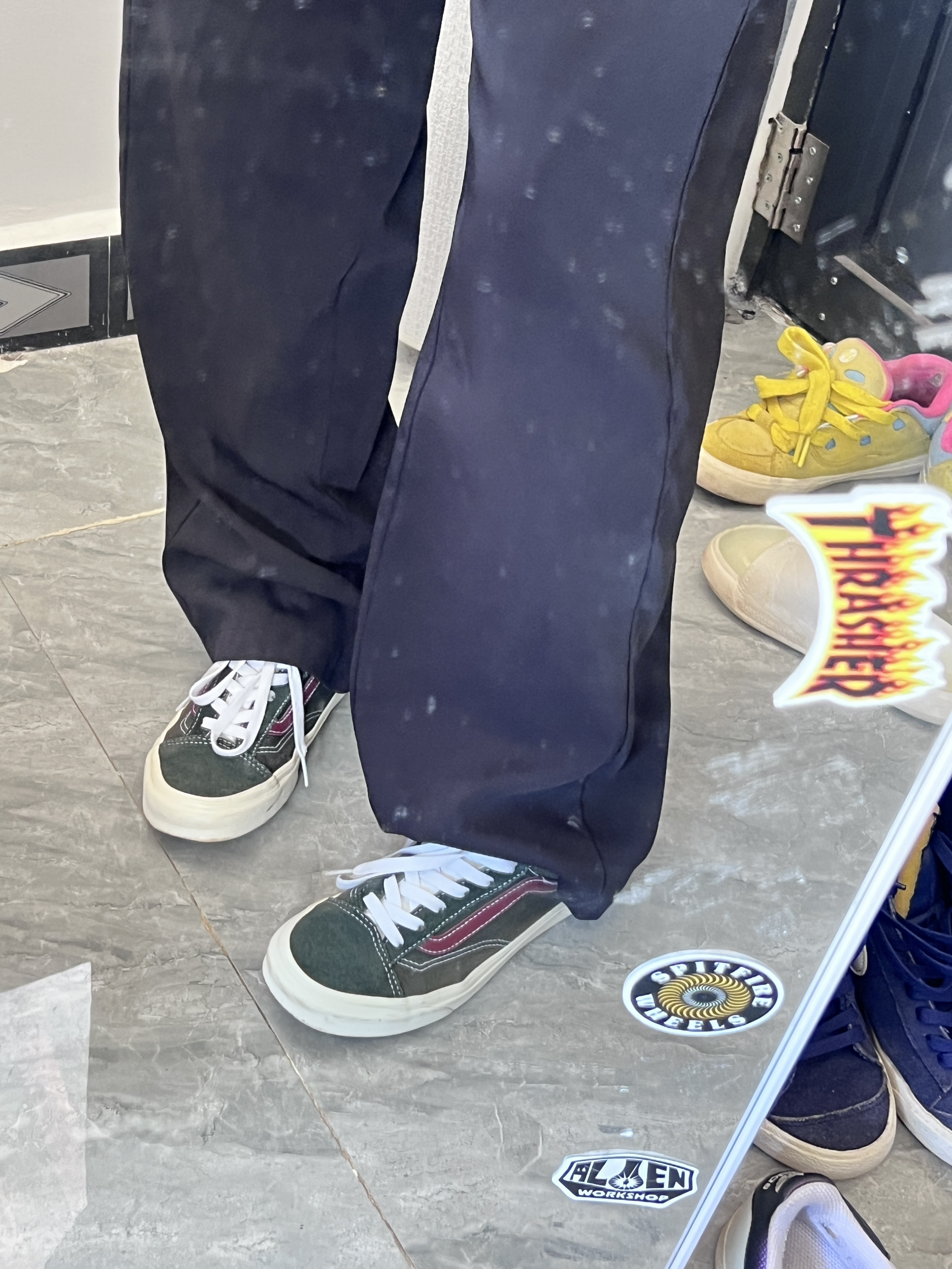 墨绿色的万斯鞋子搭配衣服超级好看 走多了也不累脚 休闲风适配哦
