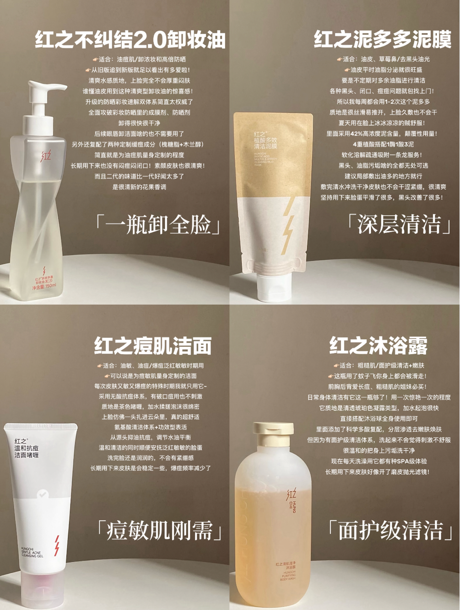 红之做肌肤清洁产品还是太权威了! 简直就是降维打击的程度! 想给全天下油皮安利这4样!素颜皮肤爆嫩爆干净油皮人生清洁已定型! 作为一个清洁大户,这些年用过的脸部、身体清洁产品真的不要太多 但真正做到兼顾温和肤感跟清洁力的其实真的不多,油皮真的反复踩雷过好多次⋯ 但今天要分享的“清洁专家”红之 它真的从出道开始就致力把“温和清洁”这件小事做 到极致§ 做出来的产品就是大牌的使用感平民的价格今天就要分...