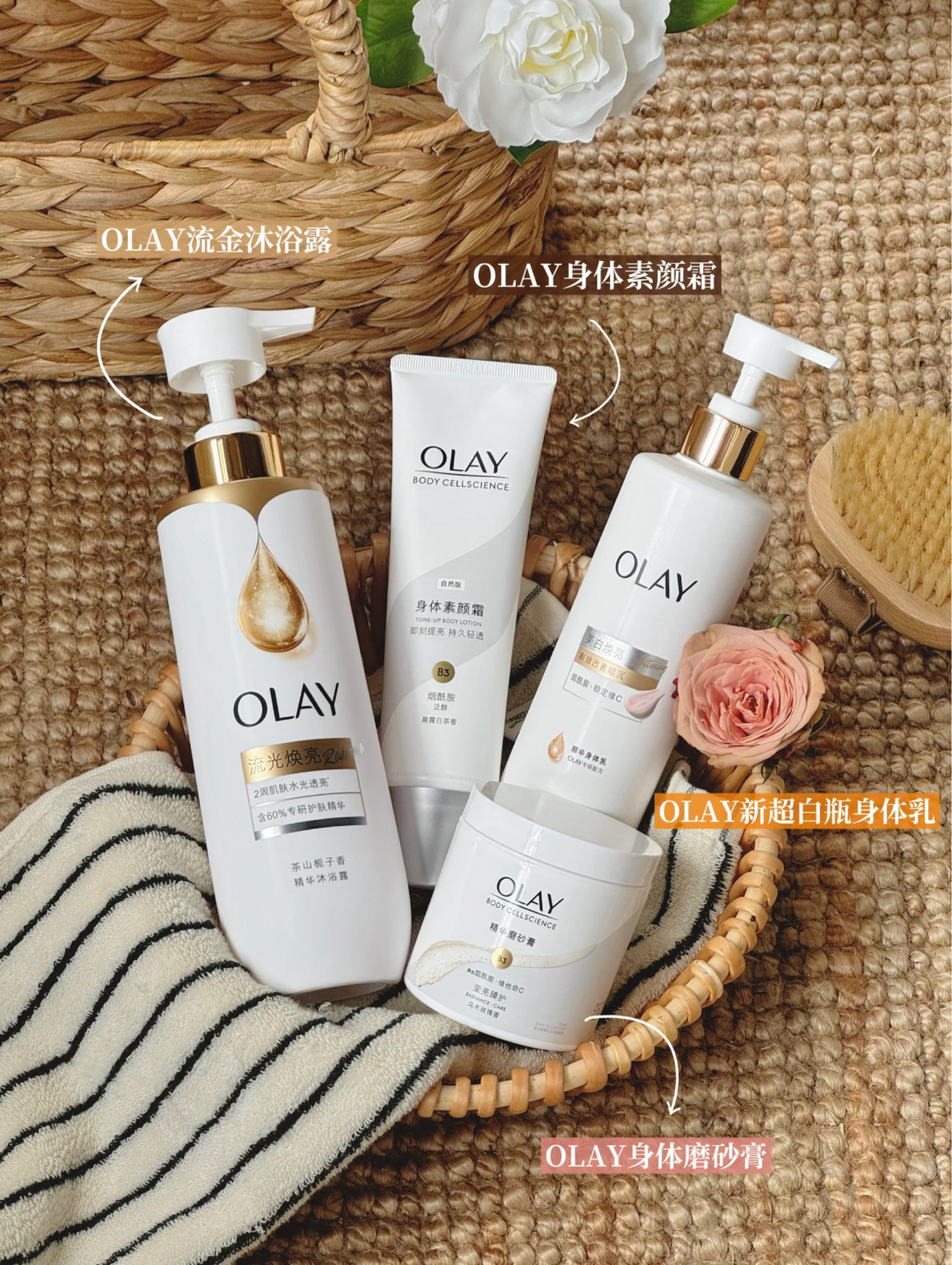 之前总觉得身体护理是件“麻烦事” 洗的是战斗澡!直到前段时间穿了吊带裙出门拍照脸和身体的色差,拍照局部修图都要半天! 才发党自己身上糙的没边了,连关节都黑黢黢的忍不了一点!当天立马回家做起了身体美白的功课看了好久越看越纠结!最后还是决定一步到位直接把OLAY身体护理四件套一锅端了! 小投入的盲入使用坚持下来肉眼可见的效果!!! 从清洁到抛光提亮都安排的明明白白的速抄作业 • OLAY新超白瓶身体乳...