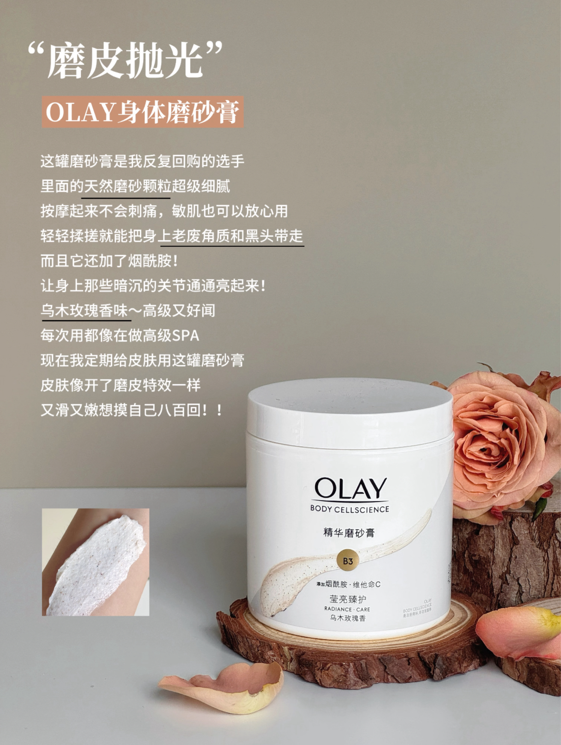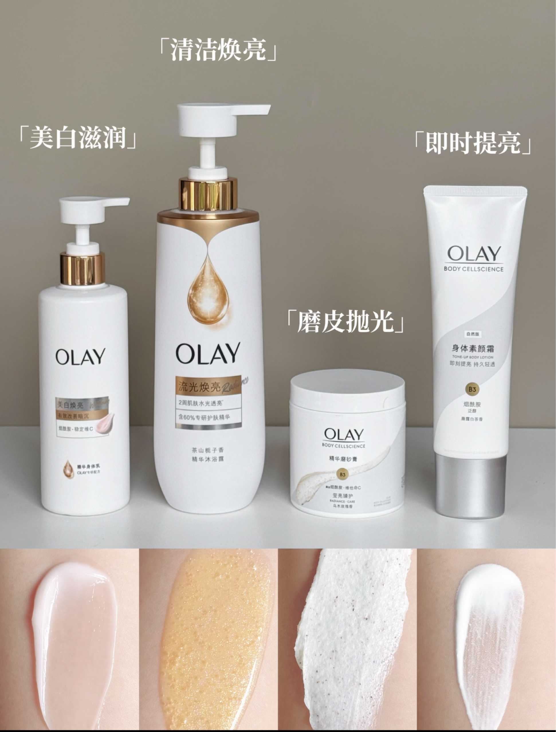 本篇笔记关联了Olay/玉兰油 烟酰胺白茶香身体素颜霜 秋冬提亮焕白滋润 自然版、Olay/玉兰油 去角质磨砂养肤超亮身体钻光磨砂膏 焕亮肌肤 温和 莹亮二合一 乌木玫瑰香 莹亮臻护、Olay/玉兰油 流金瓶果酸鎏金沐浴露 水光透亮嫩肤柔滑持久留香 茶山栀子等商品,为用户提供真实的使用体验和购买参考。