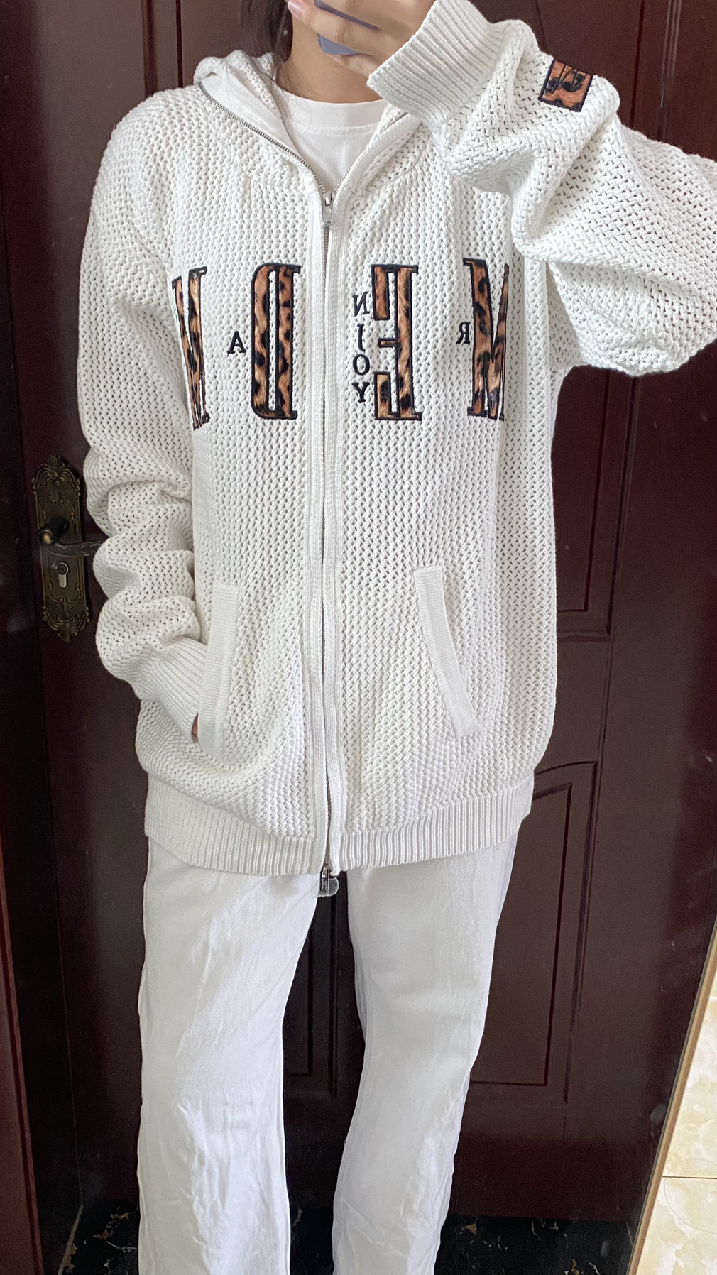 洞洞毛衣版型真的不会漏风嘛 但这款衣服的logo图文是豹纹颜色我很喜欢 面料:毛衣质地 版型: oversize风格 缺点:个人觉得小女生穿会沉一些 因为他是毛衣质地所以穿在身上会沉一些外兜放手机也会易变形虽然沉但整体很好看我还可以接受自我买的是xI码会有点大建议170的宝宝们买L码