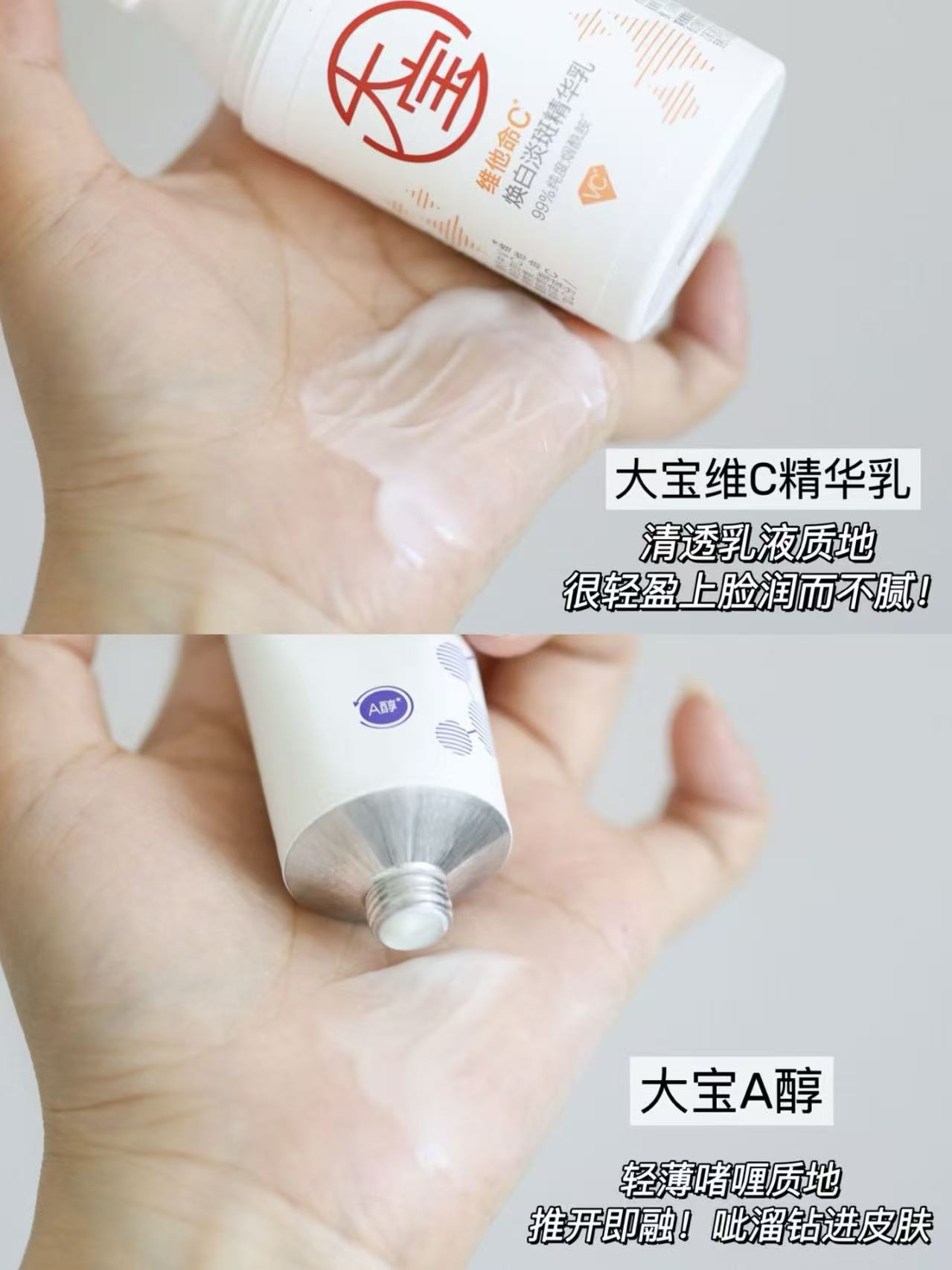 本篇笔记关联了大宝 维他命护肤套装【A醇+VC乳】美白紧致淡纹细润嫩肤焕白淡斑 A醇嫩肤乳60ml+VC精华乳50ml等商品,为用户提供真实的使用体验和购买参考。