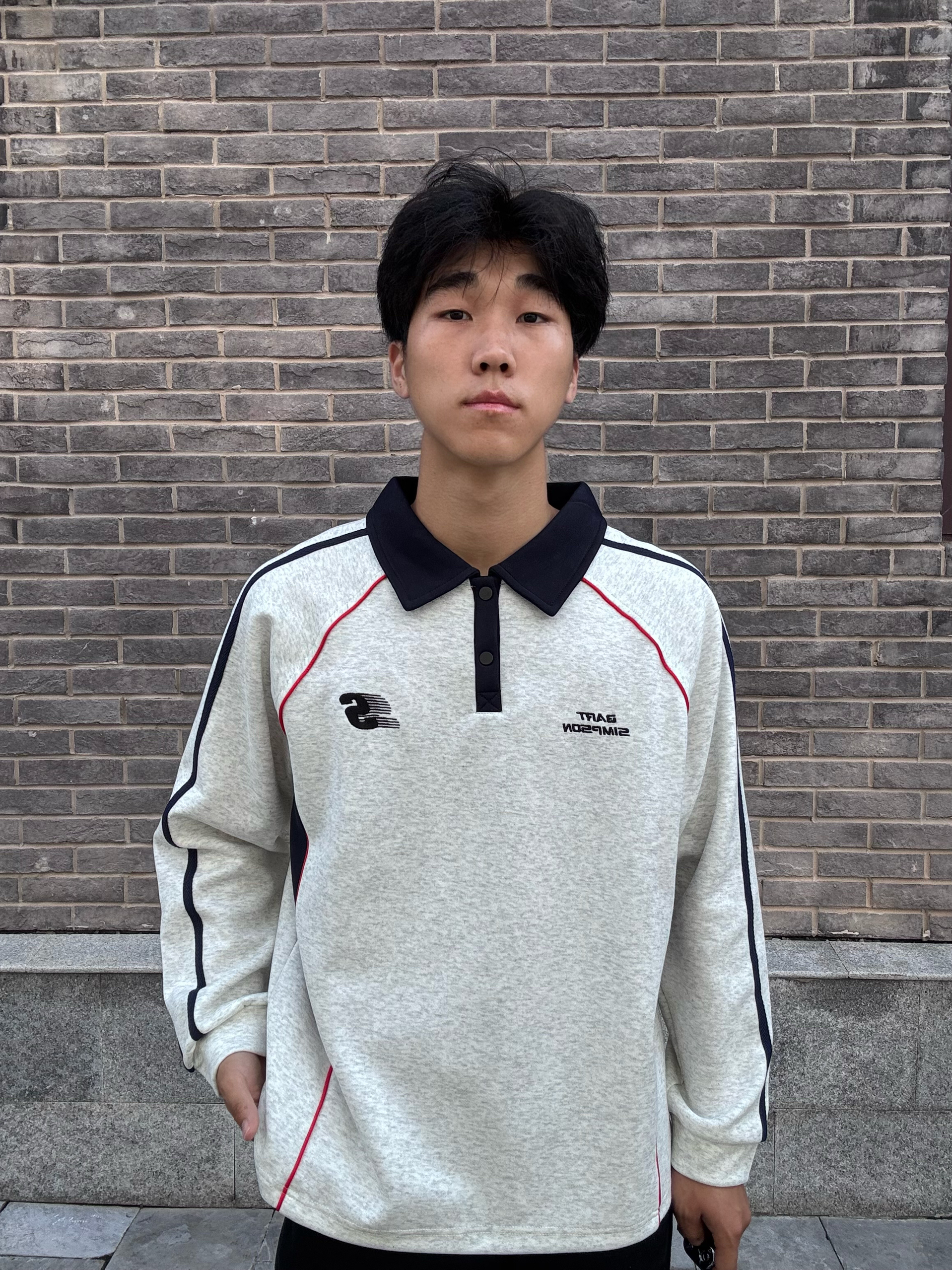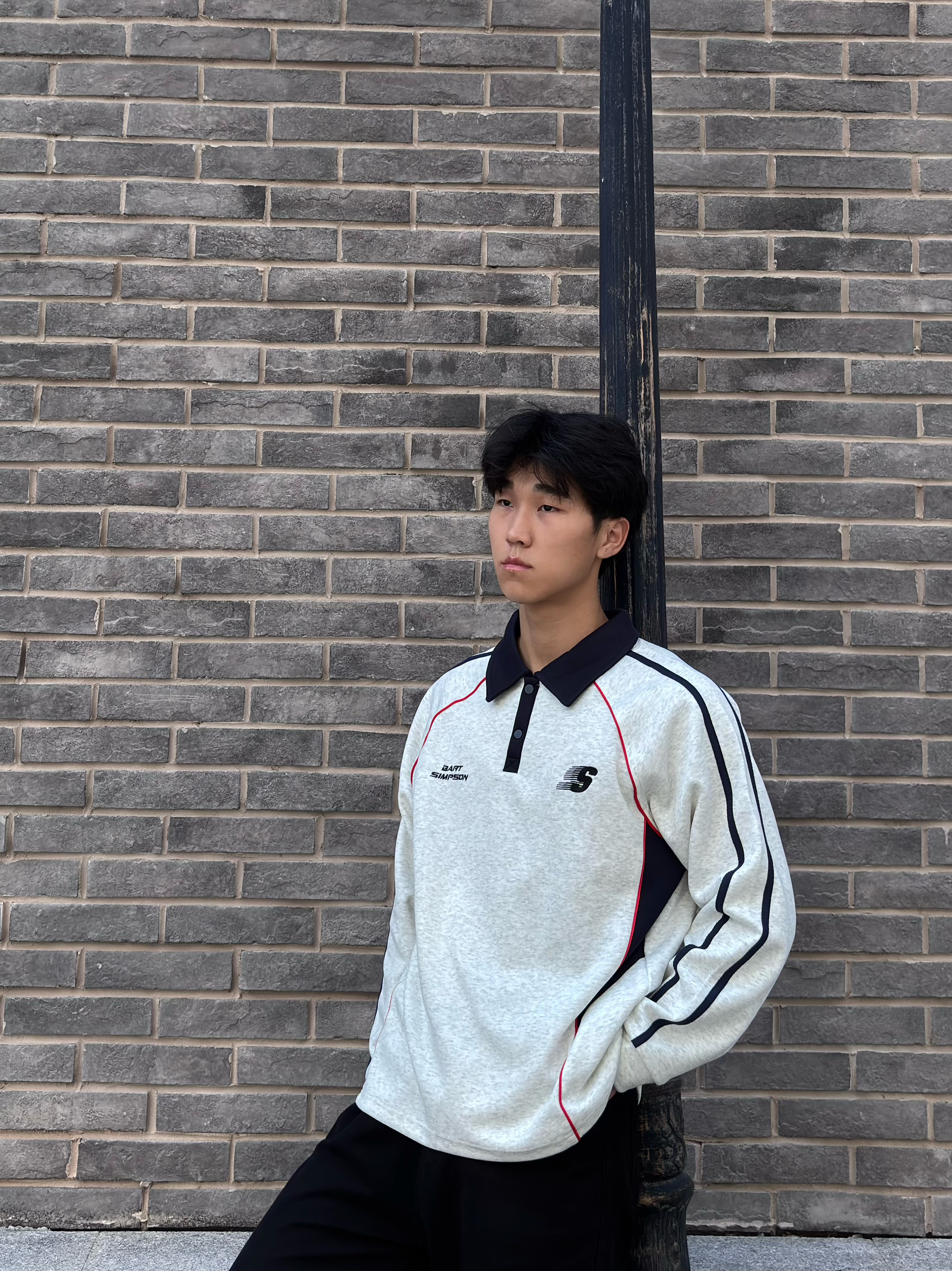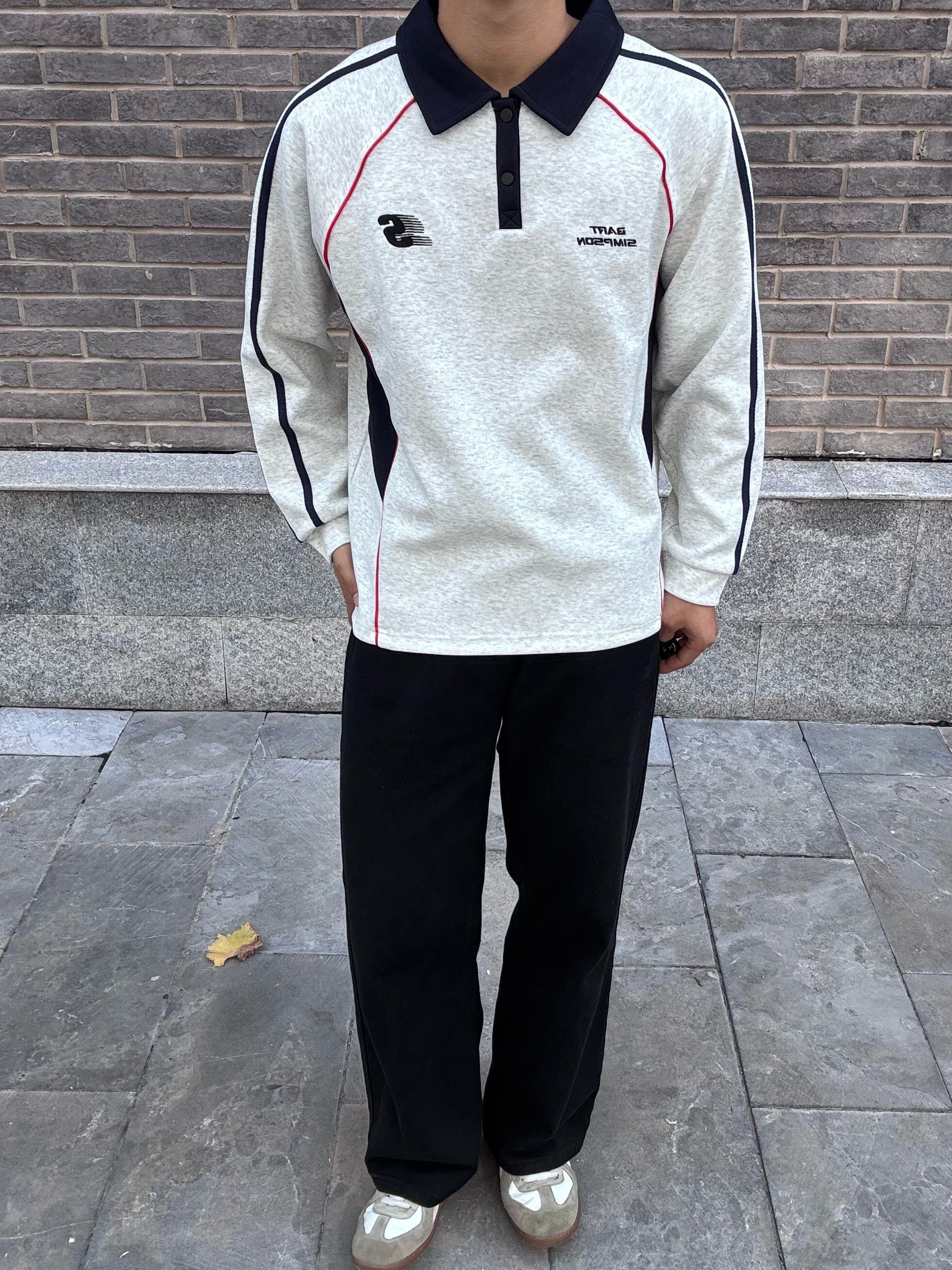 The Simpsons/辛普森一家 的长袖Polo衫 外观设计偏复古运动风,细节满分 整体是浅灰色调,很有复古那味儿 领口是经典的polo领,黑色的领子和衣服主体形成撞色,特别耐看 侧边和肩部的黑红线条装饰,一下子就把运动感拉满了,不会显得单调 还有胸前和背后的小标志,精致又不浮夸,低调中透着设计感,我个人真的很吃这种风格 面料摸起来是那种软软糯糯的质感,特别亲肤 贴身穿也很舒服,厚度也很合...