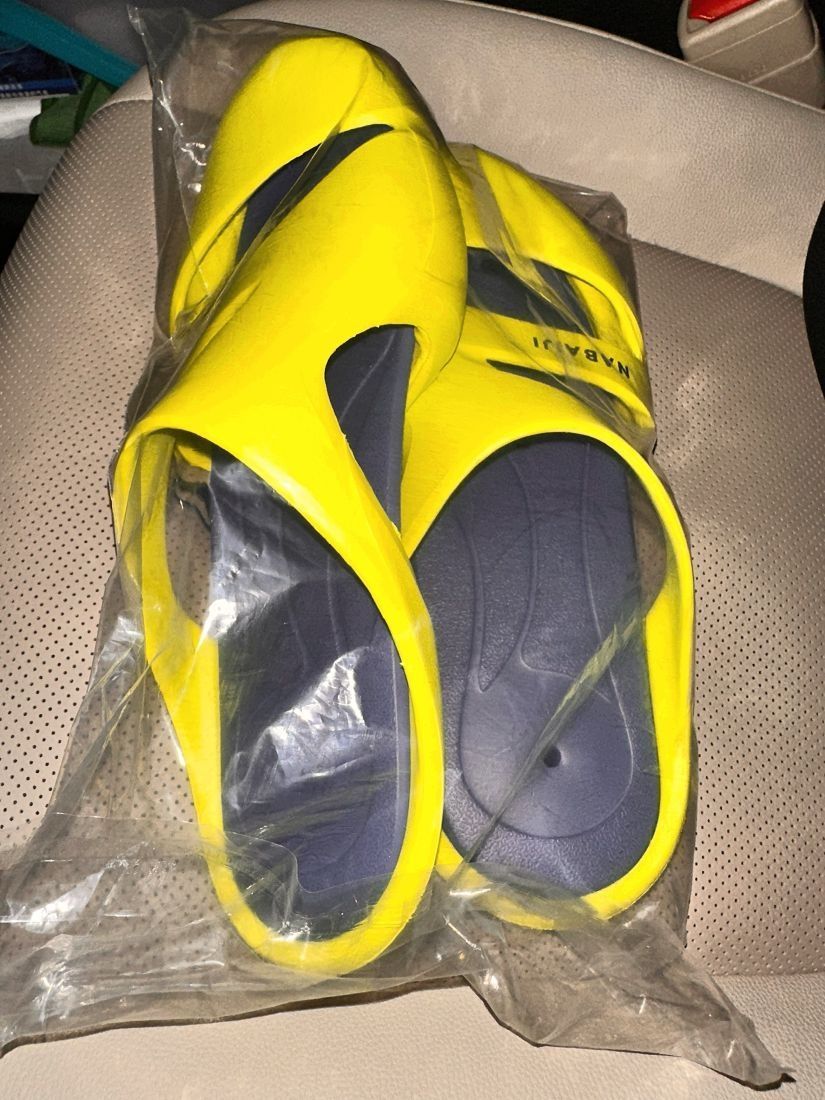 迪卡侬这个拖鞋是我这个夏天的第三双通勤拖鞋啦,亮黄色的配色我很喜欢,黑色相比亮黄色显得不那么显眼哈哈哈,底子是比较薄款,穿着会比较舒服,但是相对来说没有那么舒适😇😇平常城市道路通勤可以穿,但是石头子多一点的道路就算了,总体来说还是值得推荐的,设计很大胆