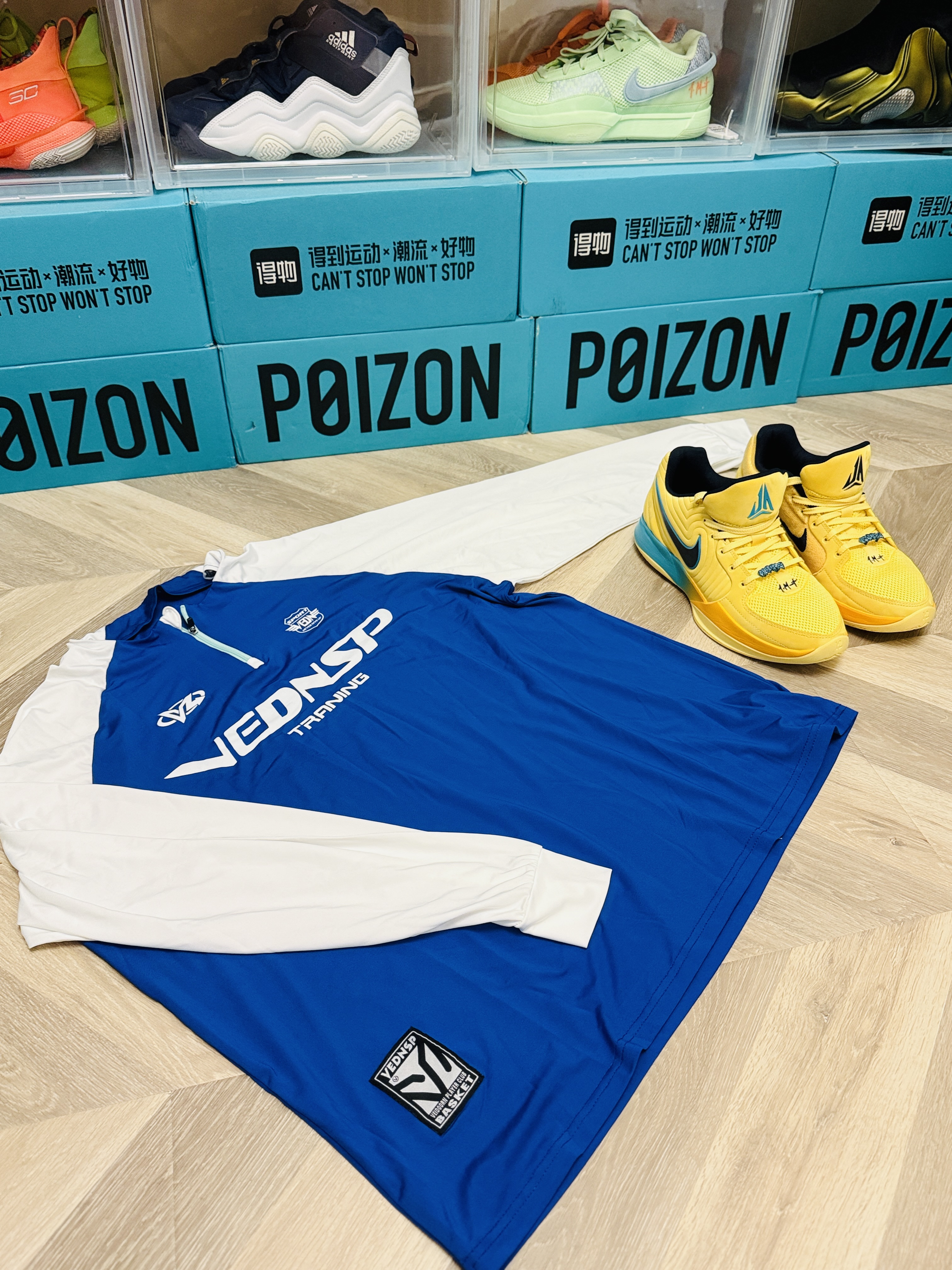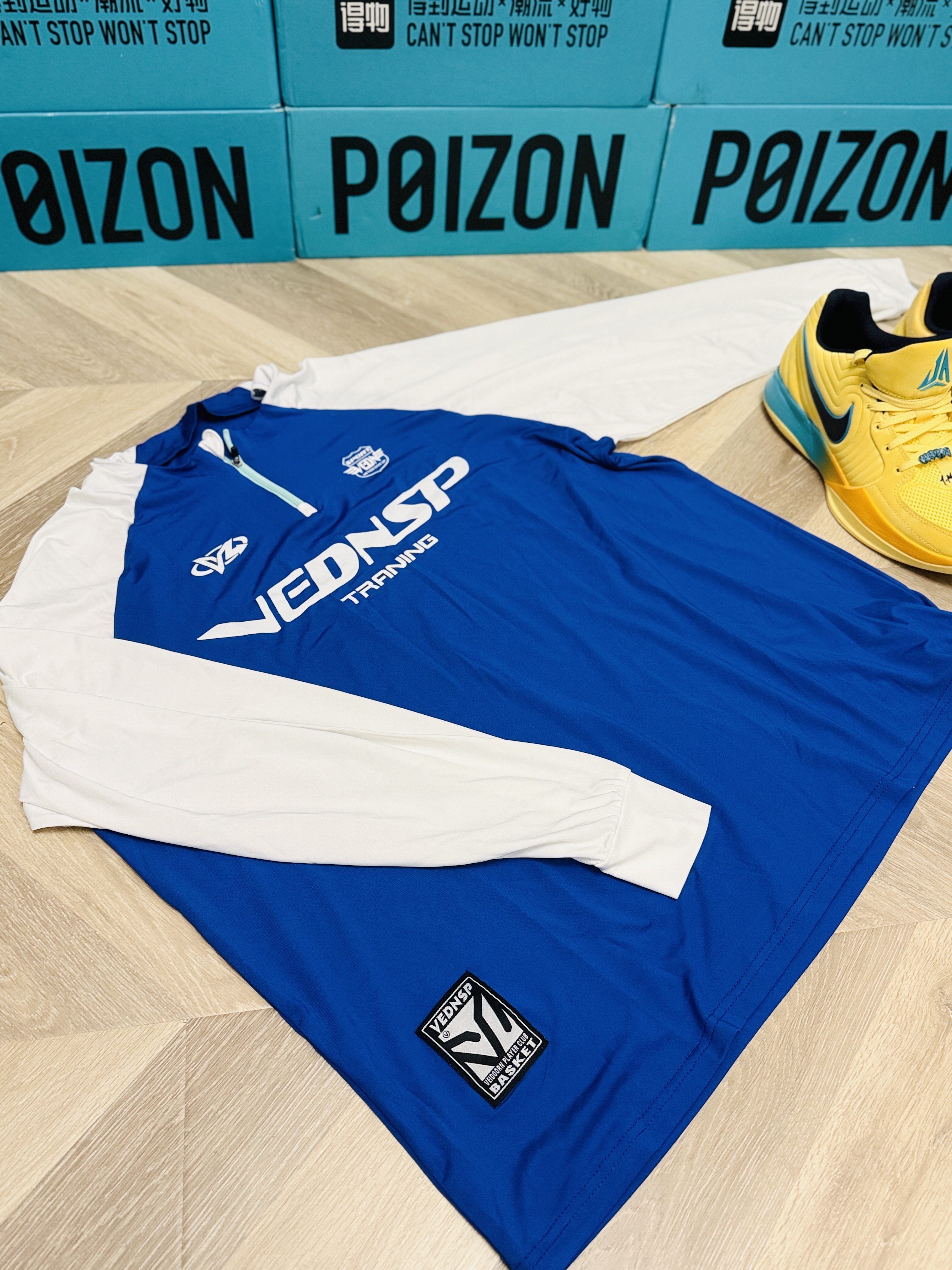 这件 #维动 VEIDOORN 淬火的投篮服非常的帅气,白蓝相间的配色,身上是蓝色,袖子是白色,印花也不会觉着闷热。而且。领子的位置还有一个拉锁,我们打球热了还可以拉开。穿着很有型,我媳妇儿都觉得挺帅@维动VEIDOORN #开学季球鞋指南 #show鞋创意大赏 #球鞋真心话 #新鞋零时差 #我的主场