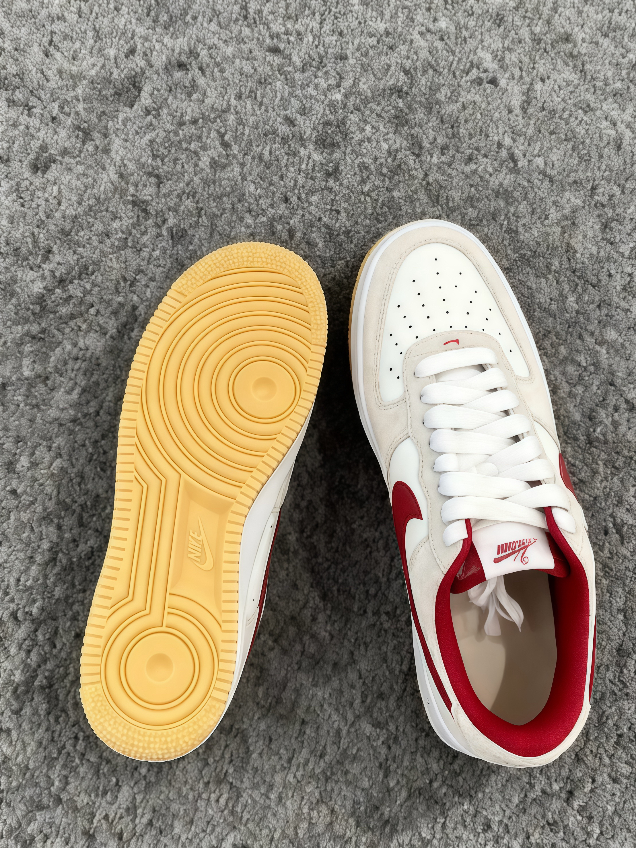 Nike Air Force 1新配色太绝了!米白配红色,经典又亮眼,质感也很在线也非常百搭 不管裤子裙子都会很好看 会好阳光的