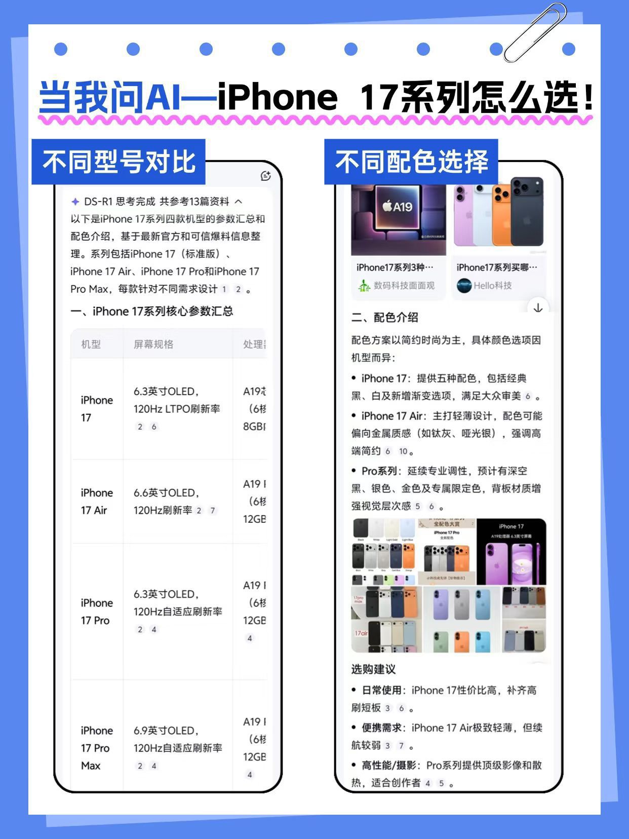 选机实用福利全安排👇 ✅ 性能适配:追剧刷课选 A18 芯片够流畅,原神满帧必入 A19 Pro+12GB 运存 ✅ 影像方案:旅游拍景选 Pro 三摄 5 倍光变,日常自拍标准版双摄够用,Air 单摄适合极简党 ✅ 续航匹配:学生党 4100mAh 标准版够一天,户外直播必选 Pro Max 5000mAh 超大电池 ⚠️ 换机党必试!