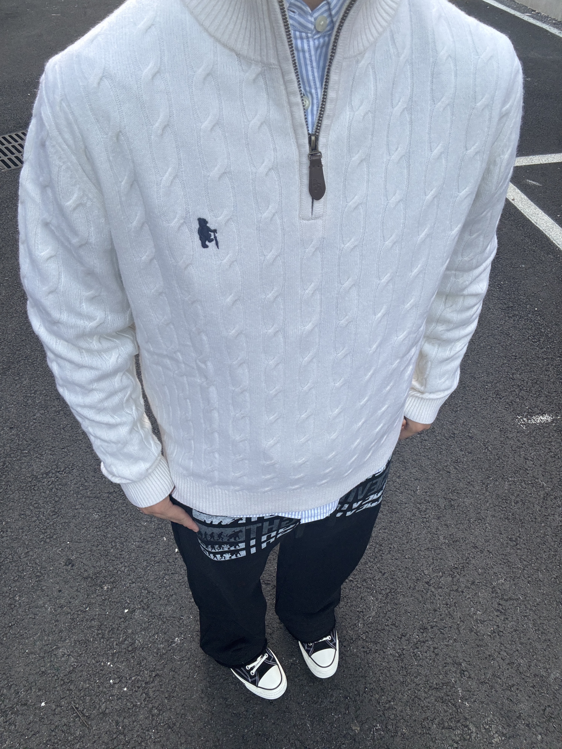 今天穿的是 Teenie Weenie Men 这款老钱风格的针织毛衣真的很帅 版型设计方面很顶,很显身材 针线的设计也很精致 透气性也很好 上身之后就会感觉很舒服 我身高180体重80kg穿xl码 同时搭配黑色裤子也很出片~