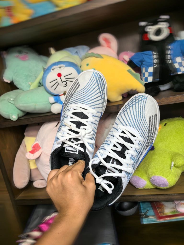 📦 拆箱: 祖传彪马鞋盒+清朝防尘纸包裹!打开瞬间直接红温——太拉胯了!!! 👁 细节: 鞋面线条式编织感设计,关键部位强化支撑!前掌弯折点正常,鞋带孔6组常规,中底抗扭支撑不错:稳,就一个字! ⚡ 材料 : 中底profoam LITE缓震!材料弹性强,缓震够用!鞋底分区纹路深到能「吃地」,抓地力直接锁死地板! 🦶 上脚: 前掌包裹感略微紧致!前掌发力区域反馈灵敏,起跳落地后跟吸收震...