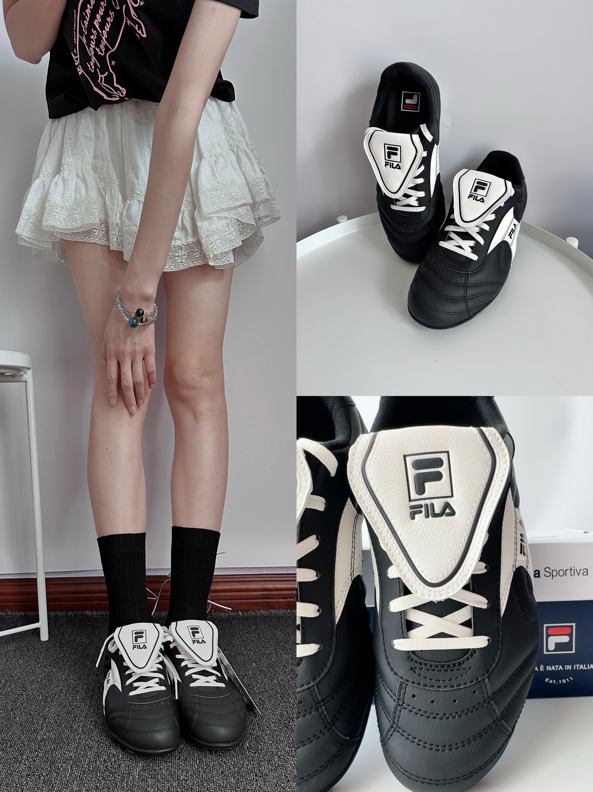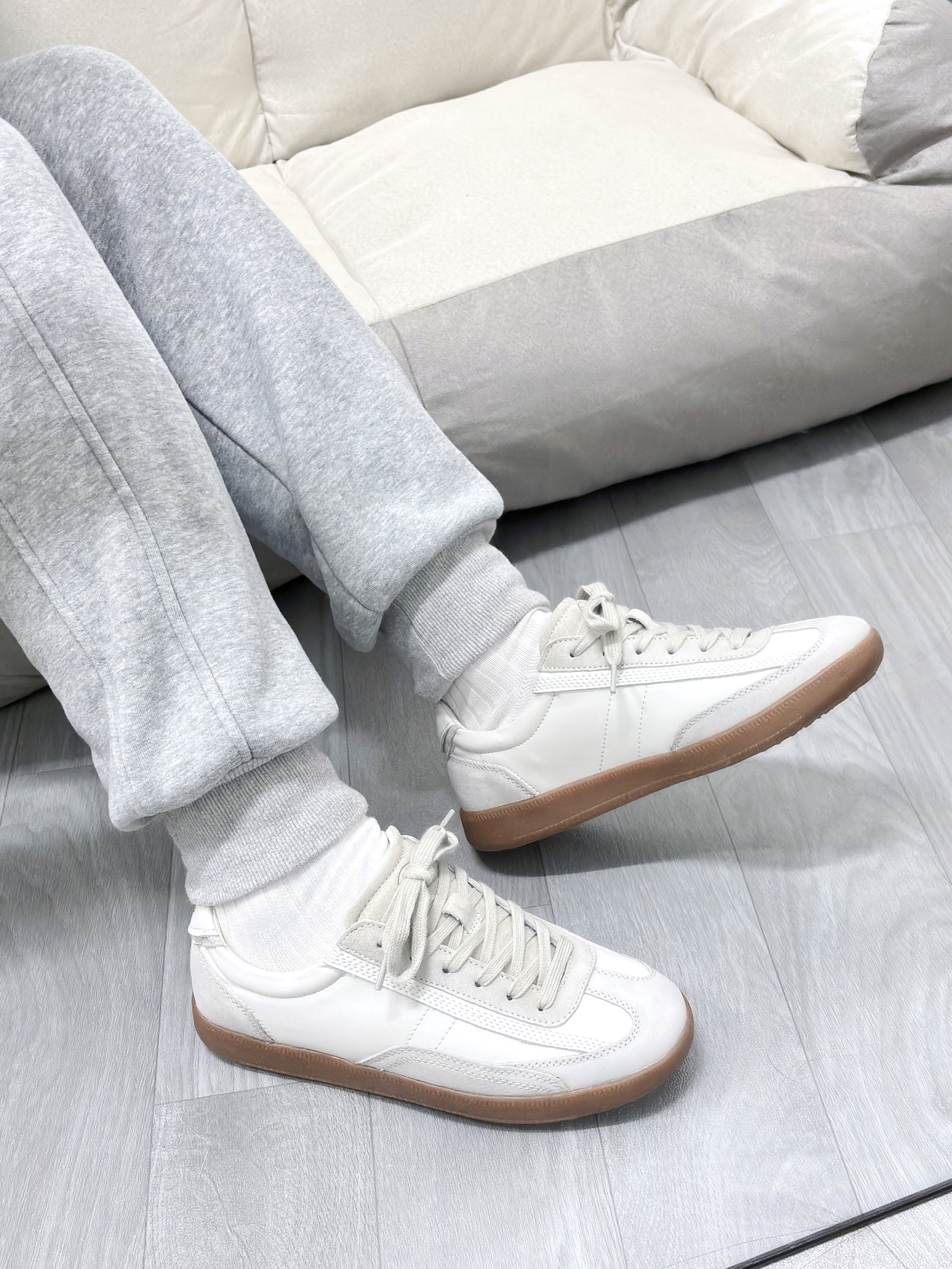 米白+浅棕的配色,复古感直接拉满🤩 鞋身皮质和麂皮拼接,质感在线,细节处还有金色品牌标识点缀,精致又高级~ 生胶大底,脚感舒适,日常通勤、出街都很适配,轻松打造复古休闲风🎞️ 搭配牛仔裤、运动裤都超好看,复古女孩闭眼冲!
