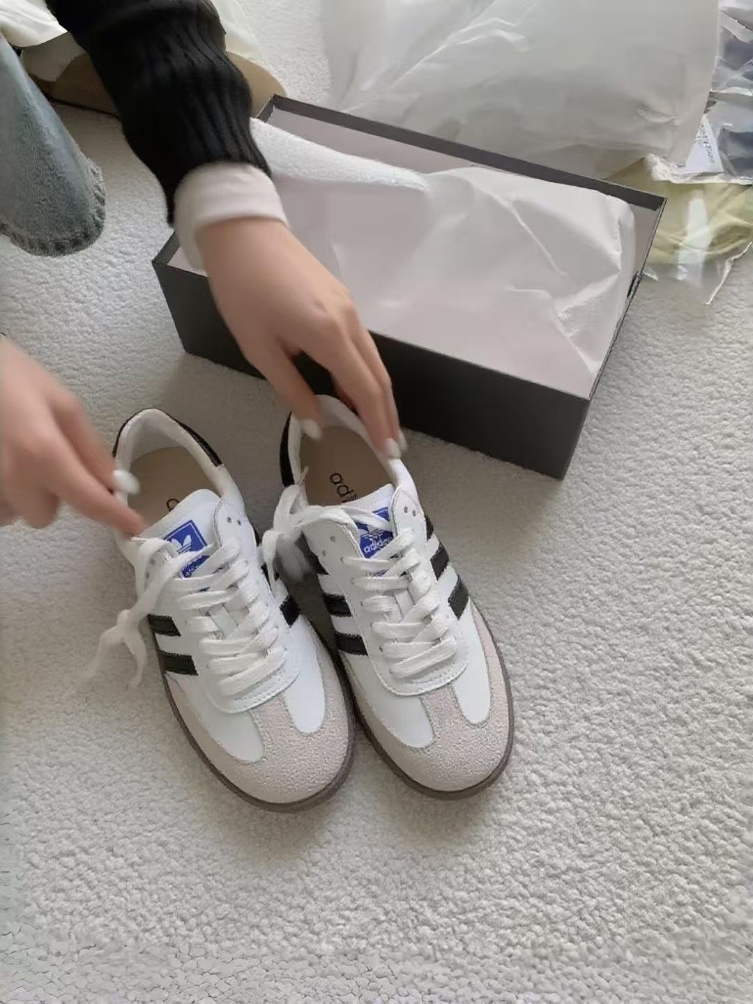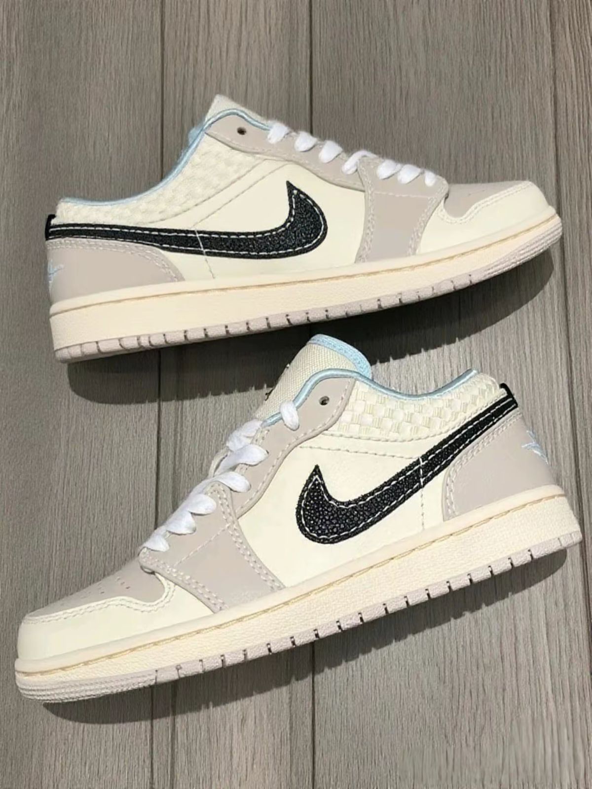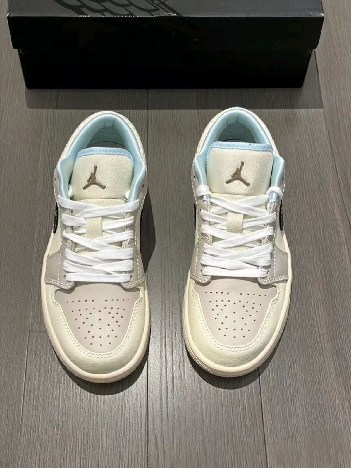 刚到手这双AJ的时候,第一反应是“哇,这配色还挺清新” 。浅米色搭配淡蓝色内衬,看着就很舒服,鞋盒也很有质感。 颜值真的能打[吃瓜_blue],日常搭配衣服很百搭,不管是牛仔裤还是运动裤,甚至配个小裙子,都能搭出不一样的感觉。上脚之后,舒适度也不错,鞋底有一定的柔软度。 但是浅色鞋面特别容易脏,稍微踩一脚或者蹭到点东西,就会有痕迹,打理起来得小心翼翼的。而且感觉透气性一般,夏天穿的话,脚容易闷汗,...
