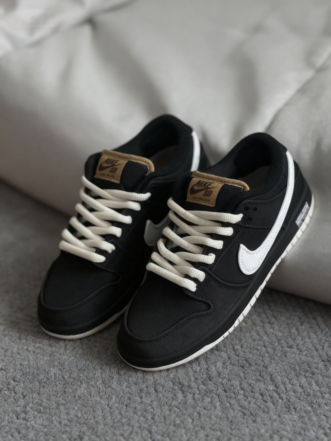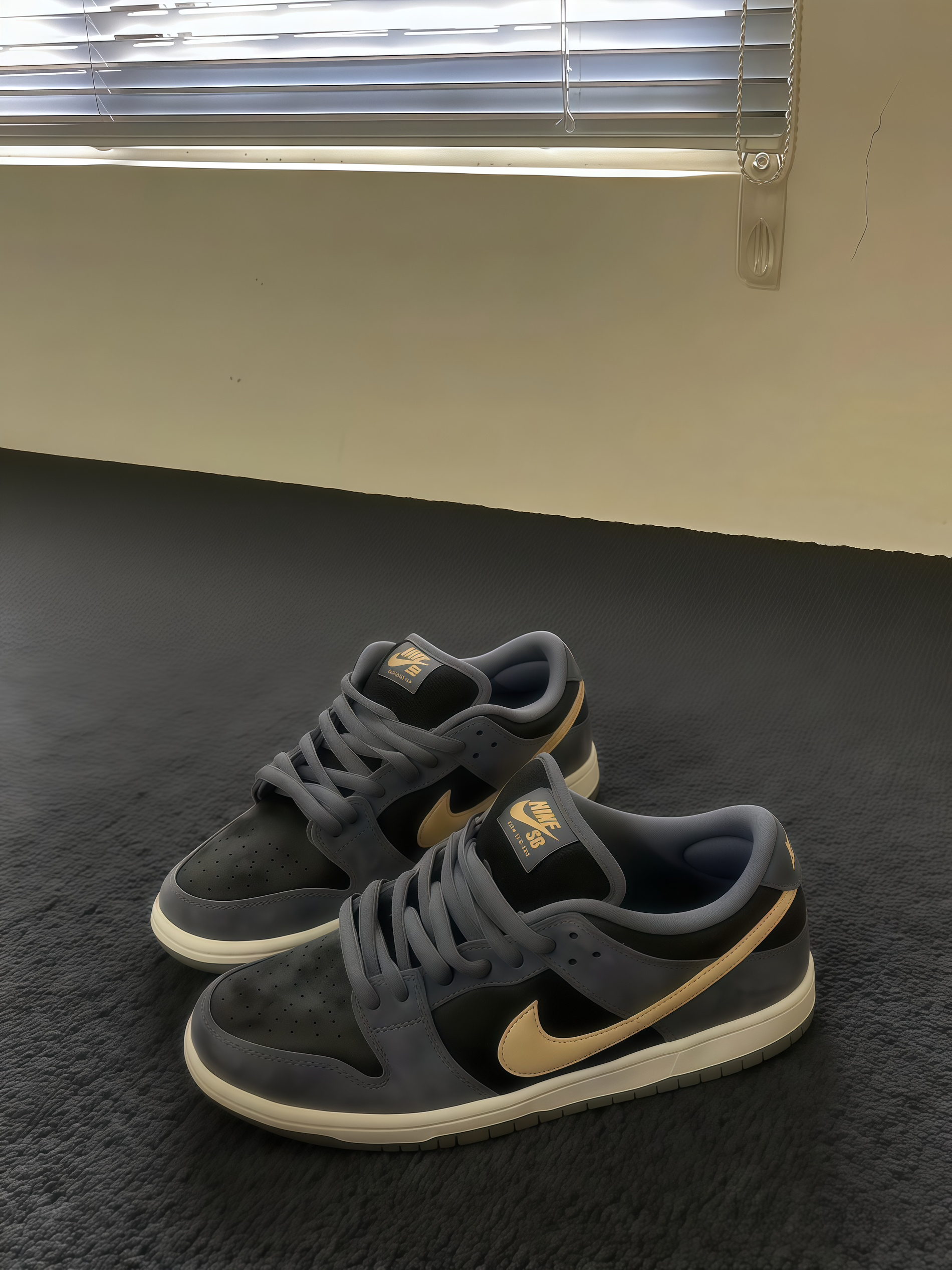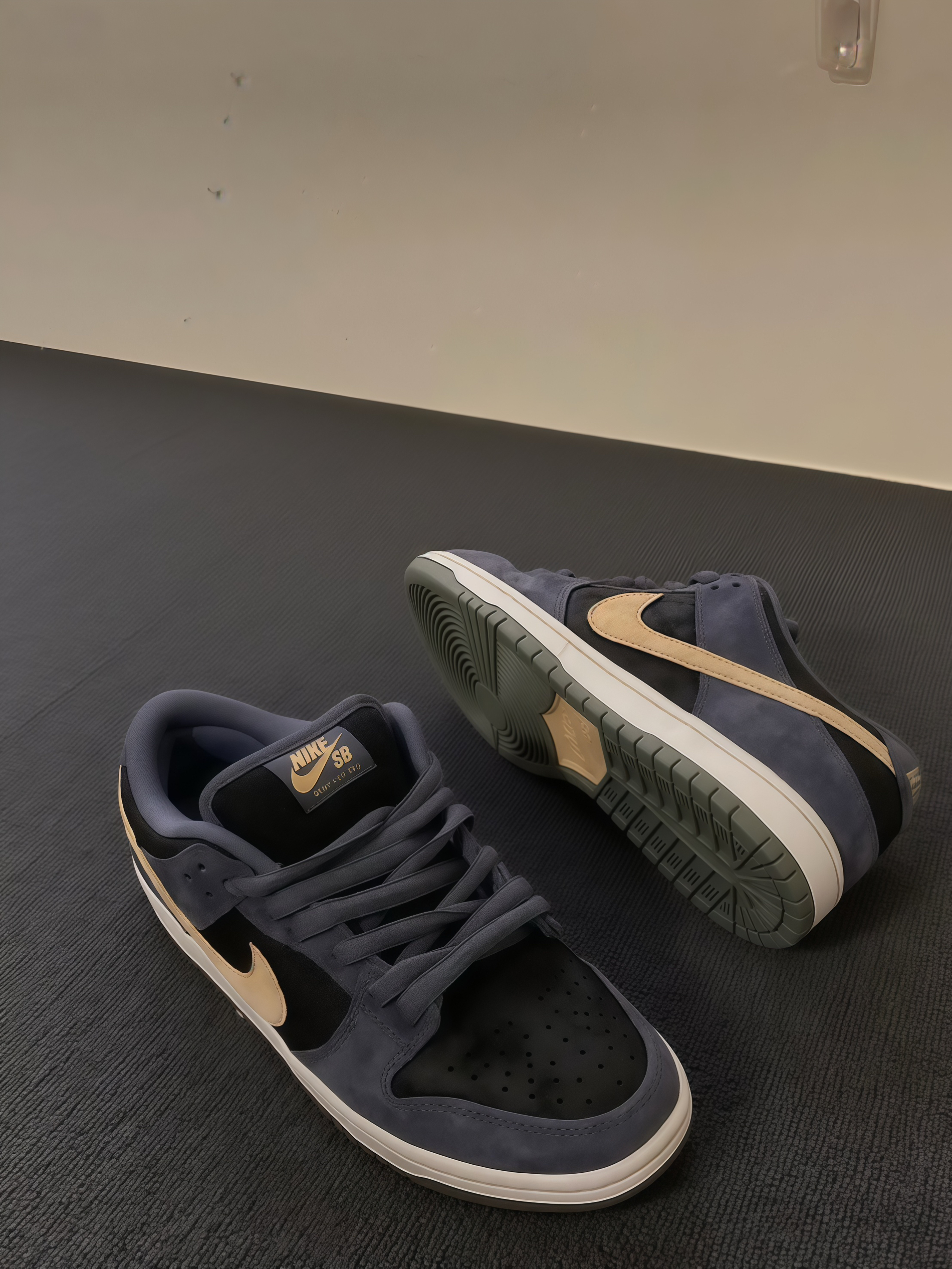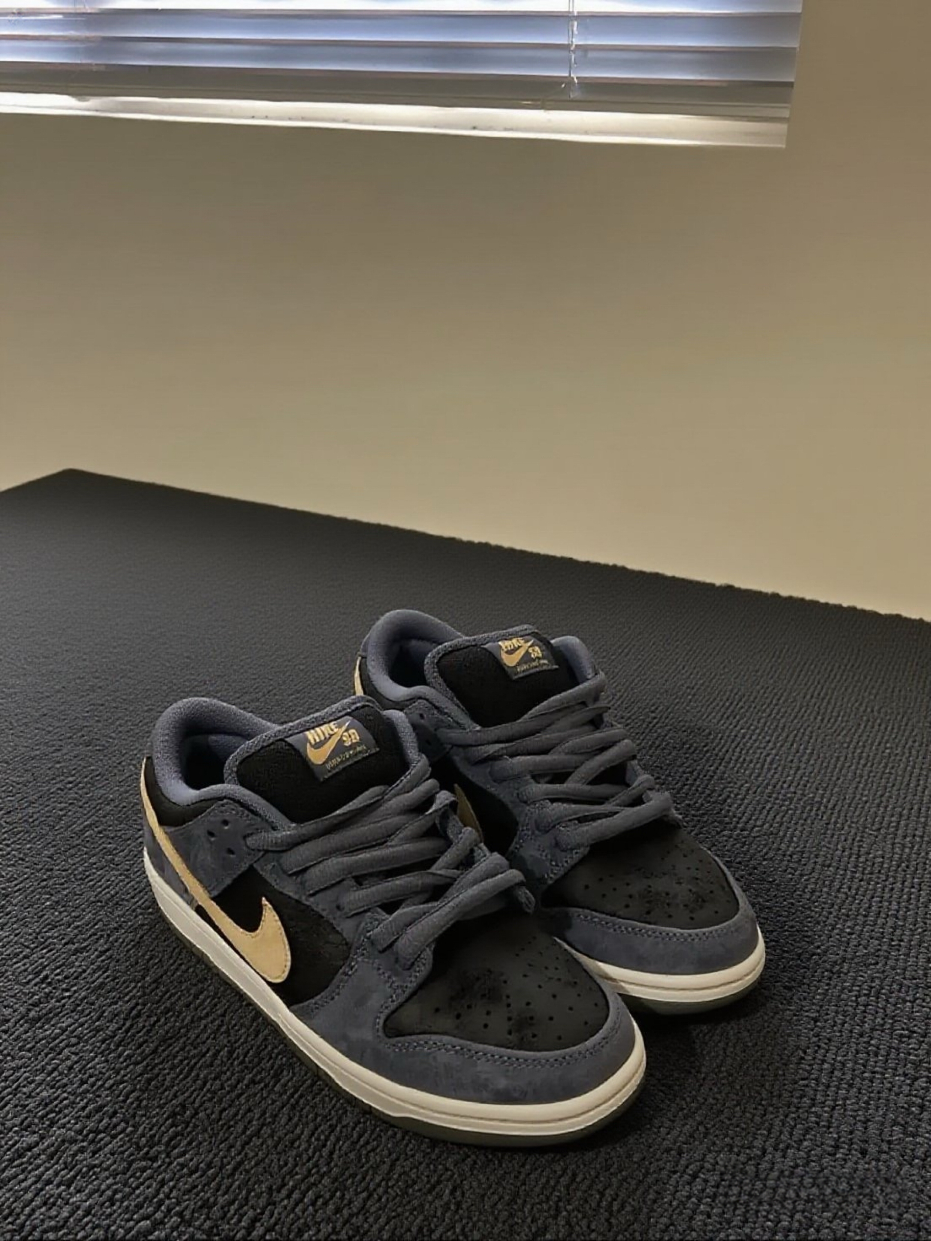 这双Nike SB Dunk,这配色真的长在我审美点上!深灰、黑色搭配浅棕Swoosh,复古又有质感。拿到手就迫不及待试穿,脚感很舒适,包裹性不错,走路时能感受到鞋底的缓震,长时间行走也不会累。而且搭配起来超省心,不管是休闲裤还是牛仔裤,都能轻松搭配出好看的造型。现在看着这双鞋就很开心,感觉是近期入手最满意的单品之一,已经开始期待穿着它出门啦~